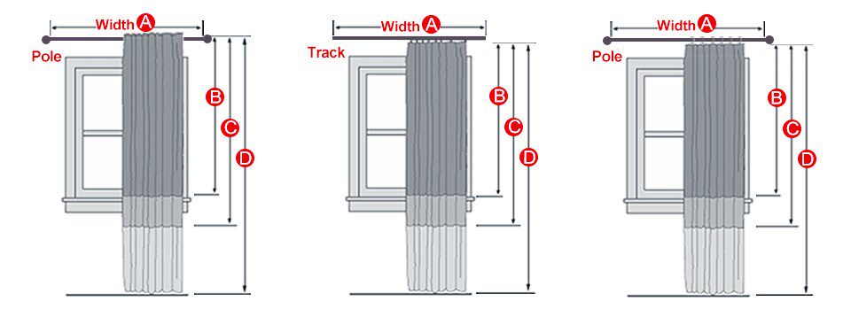 2.Curtains length= B/ C/ D(up to your window height).