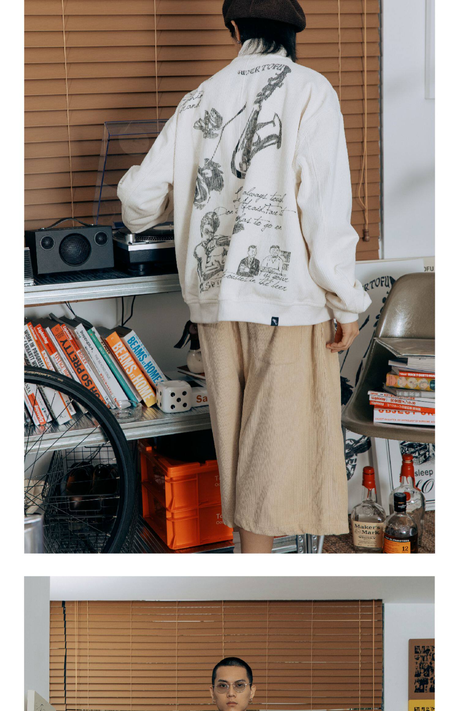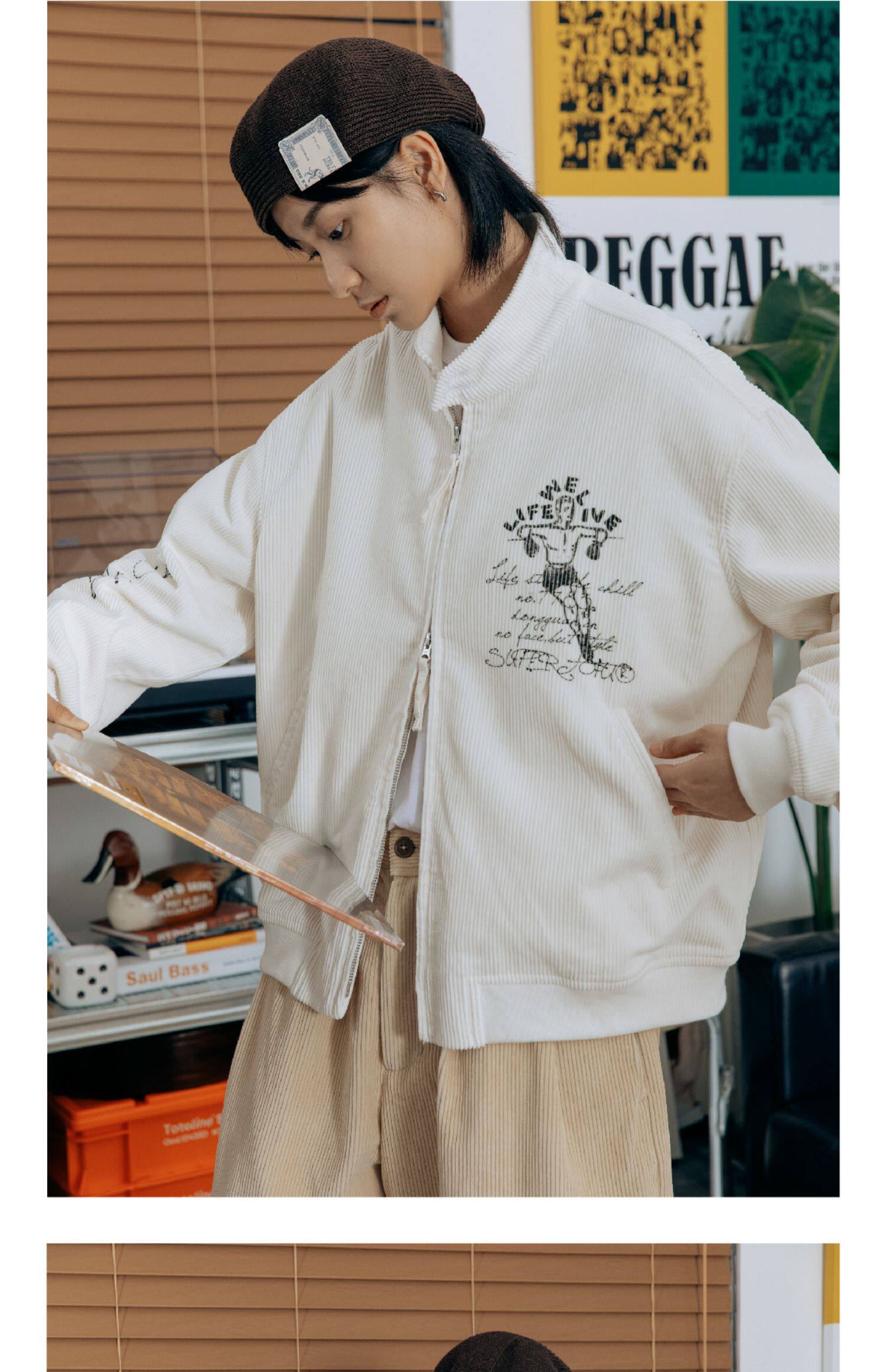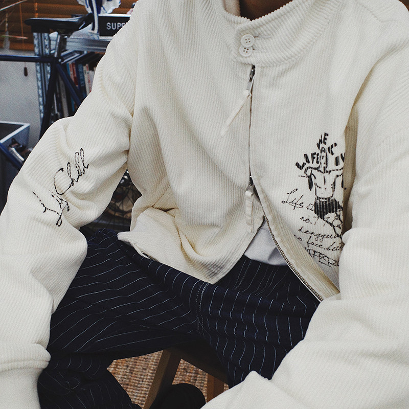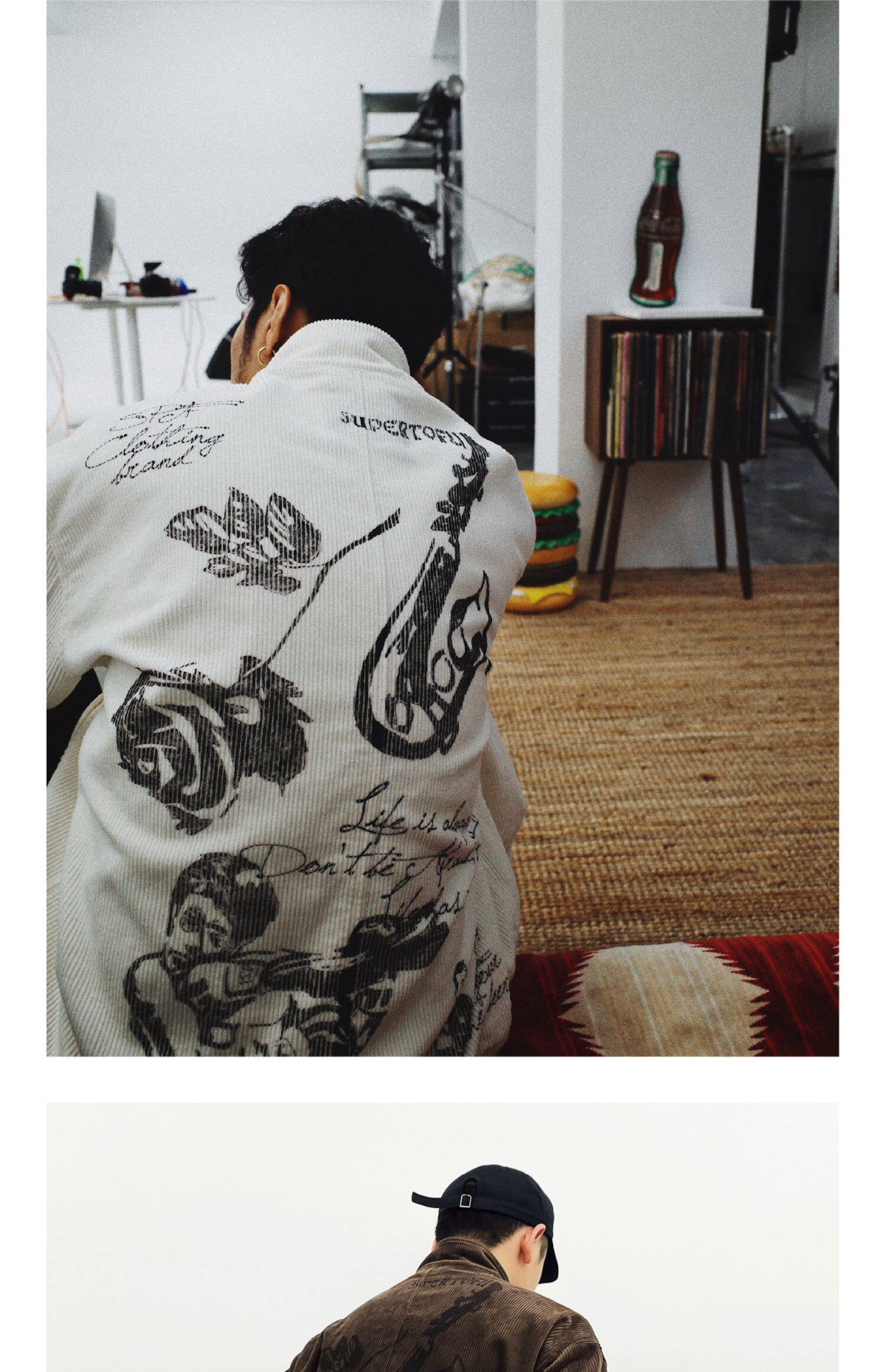 SUPERTOFU Вельветовая куртка с молнией, ручная роспись, принт
