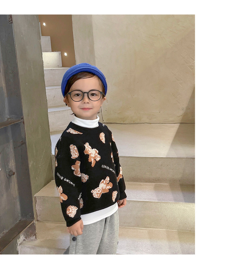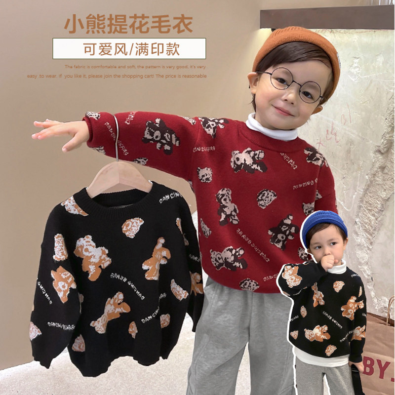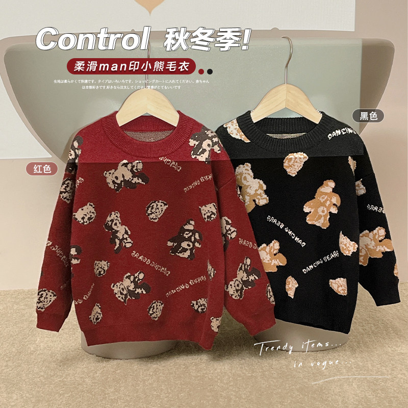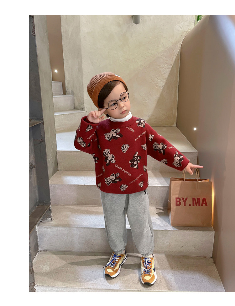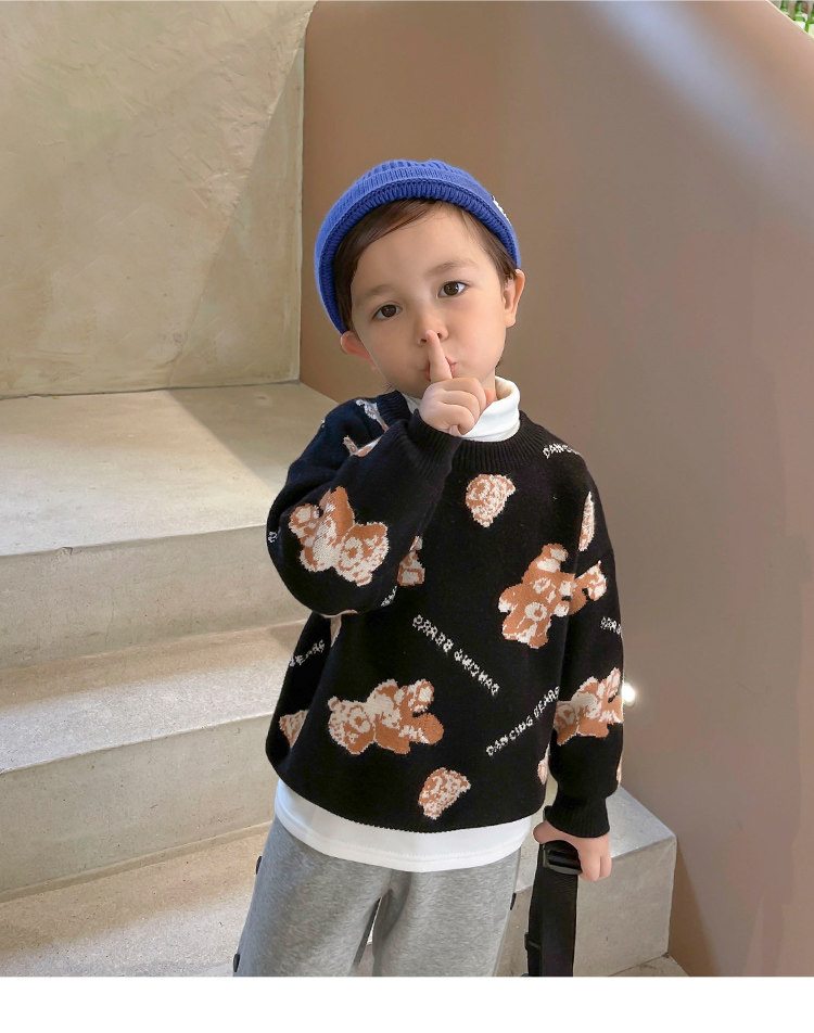 Свитер для мальчиков, осенний демисезонный детский трикотажный пуховик, с медвежатами, детская одежда, в западном стиле