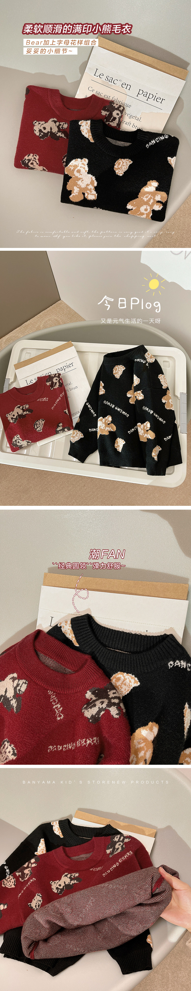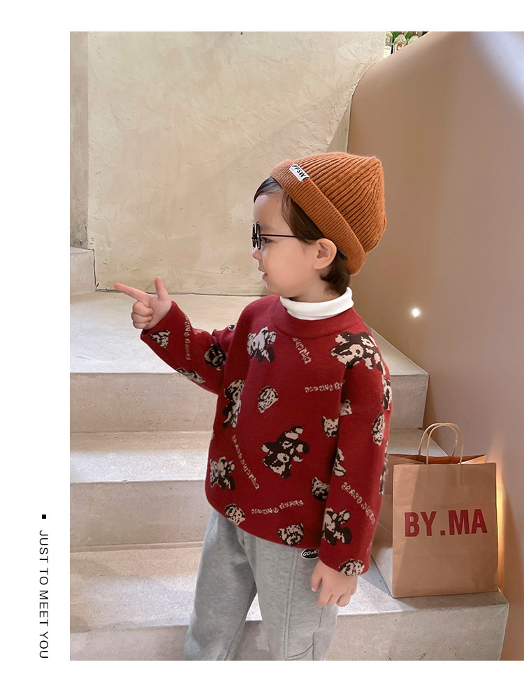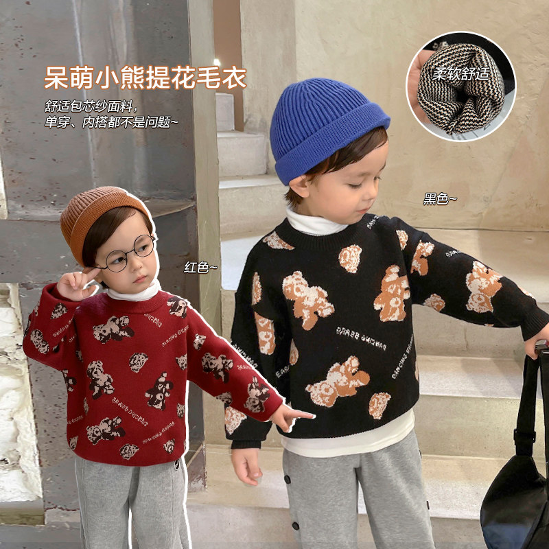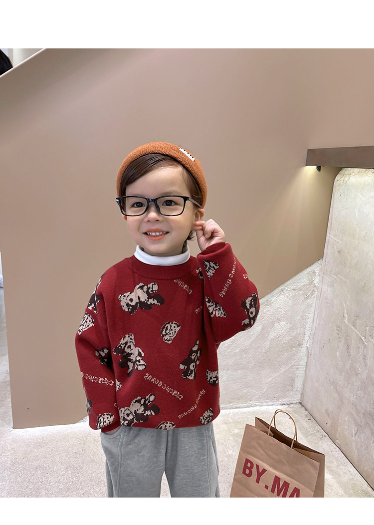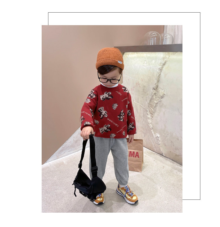 Свитер для мальчиков, осенний демисезонный детский трикотажный пуховик, с медвежатами, детская одежда, в западном стиле