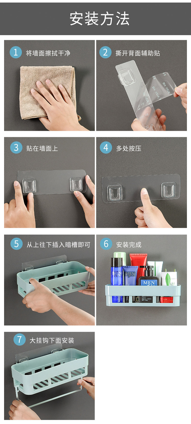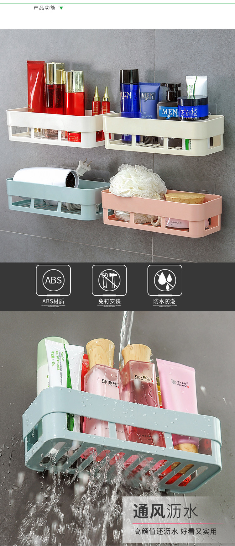 Настенная полка для ванной комнаты, настенная полка для ванной комнаты, без перфоратора, настенная полка для хранения на присоске, настенная полка для хранения в ванной комнате