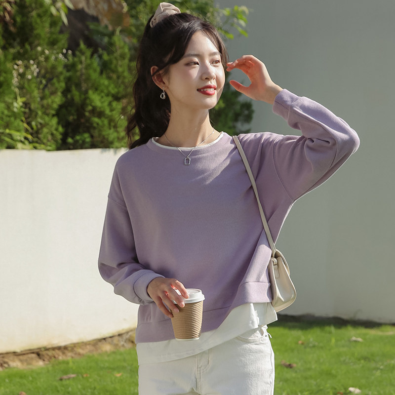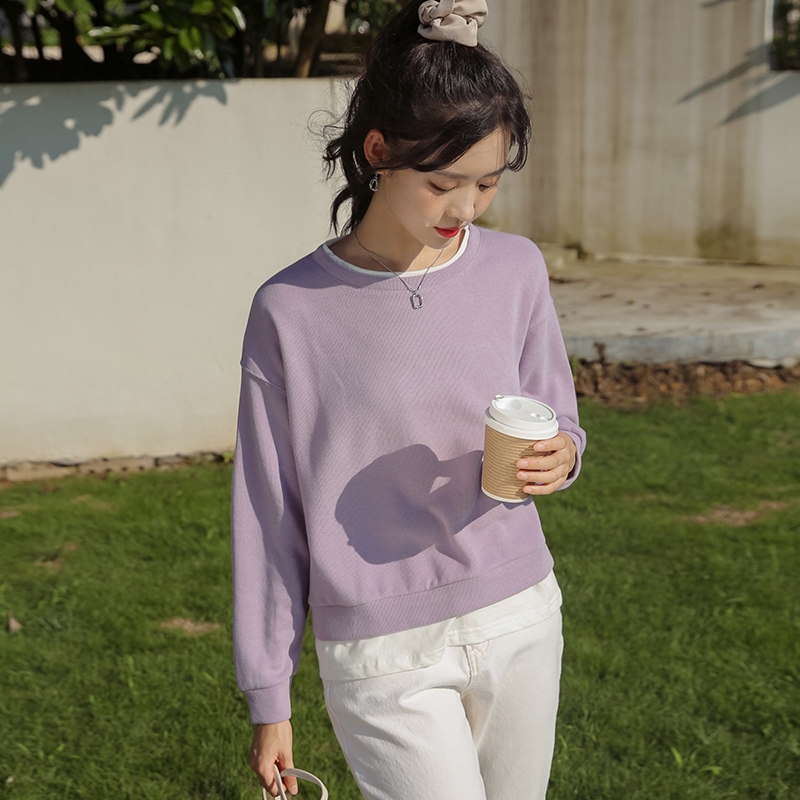 Весенний комплект, сиреневая толстовка, лонгслив с круглым воротником, бархатные свежие нарукавники, оверсайз