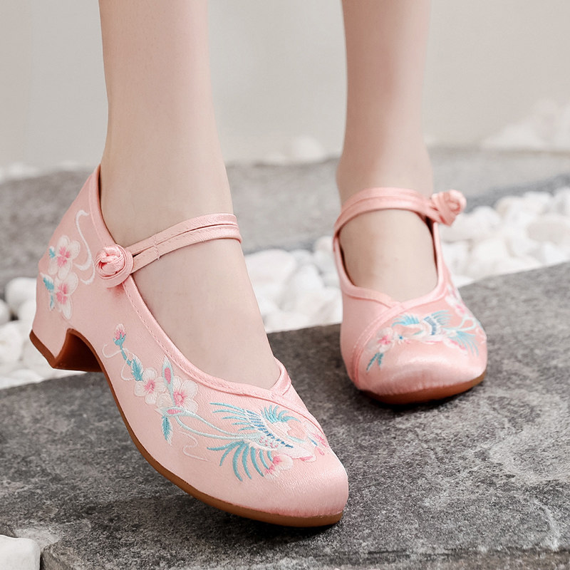 Zhongda Girls 'New Guofeng Hanfu Shoes Low Heels National Style Emeltemery Shoes Single обувь танцевальная обувь китайское стиль