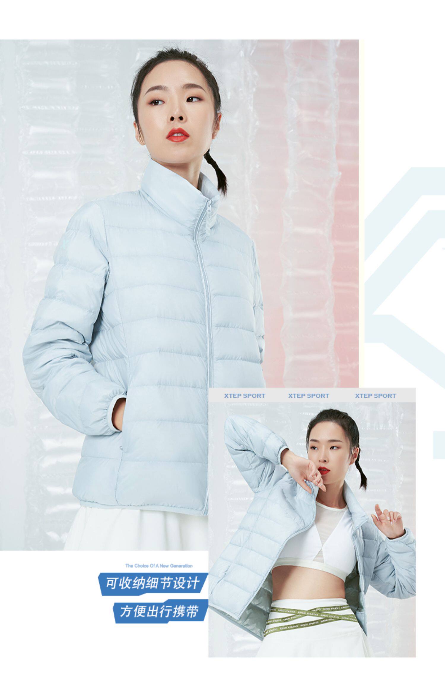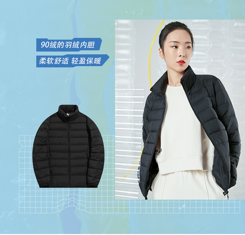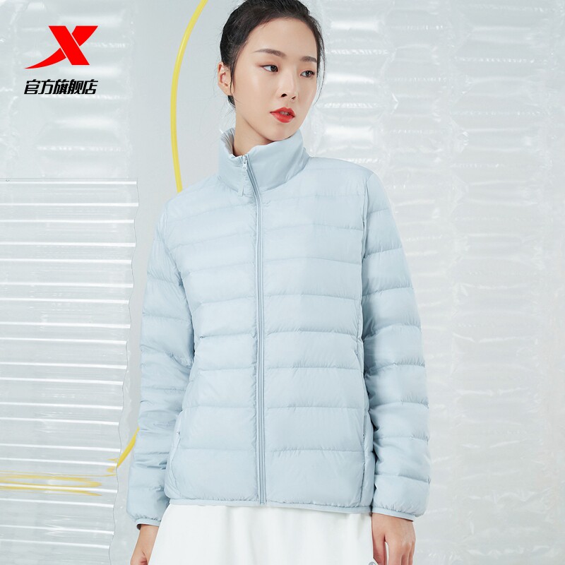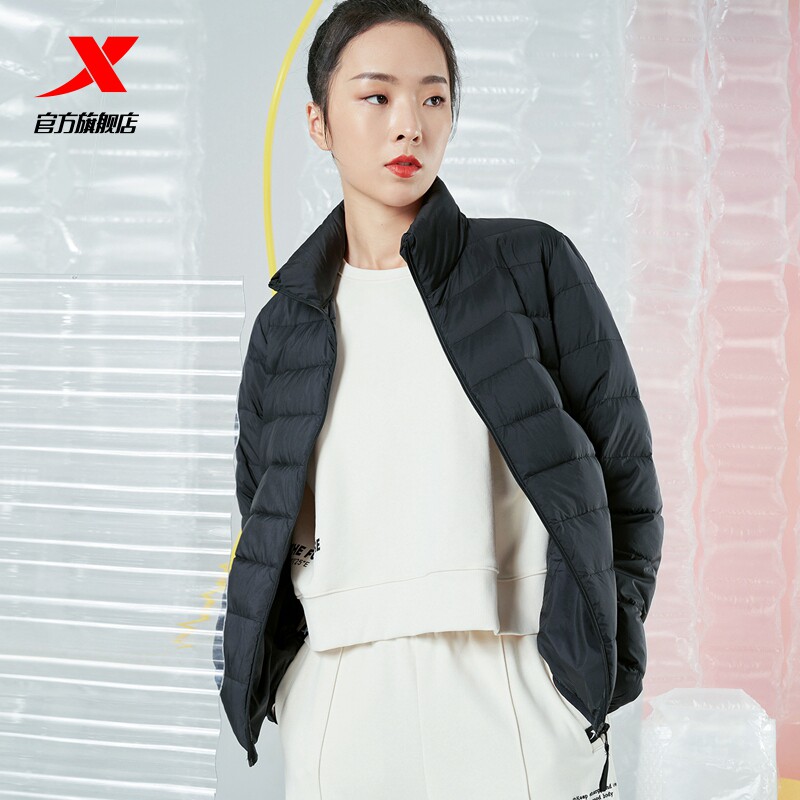 Xtep, легкий и тонкий спортивный зимний короткий пуховик, бархатный удерживающий тепло кардиган для отдыха, куртка, свободный крой, утиный пух