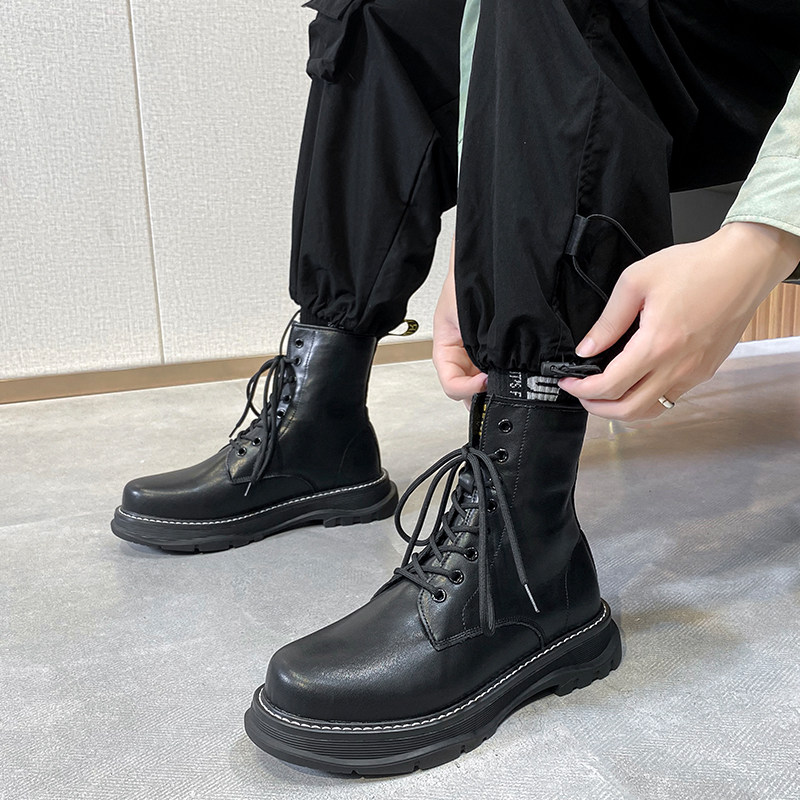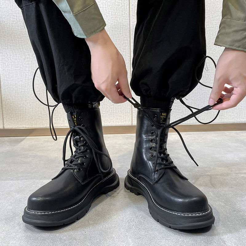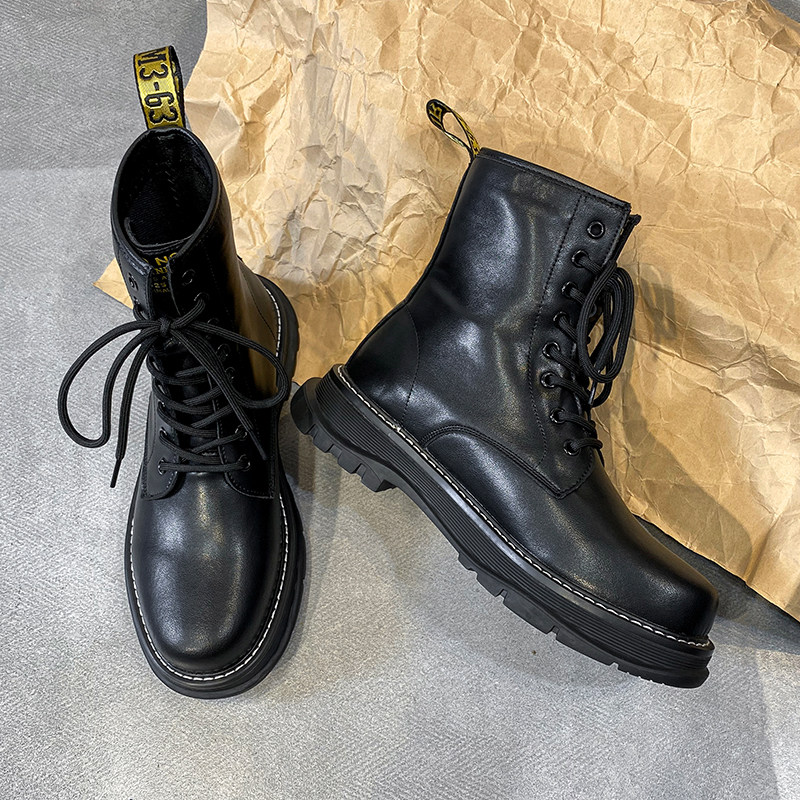 Martens, черные трендовые универсальные высокие сапоги в английском стиле на платформе, ботинки, в британском стиле, из натуральной кожи