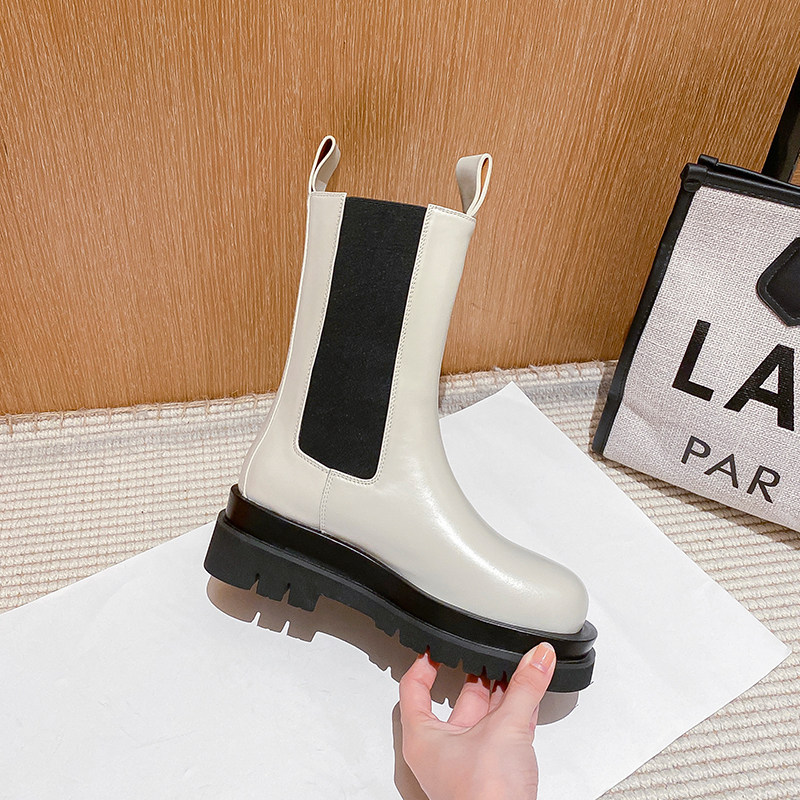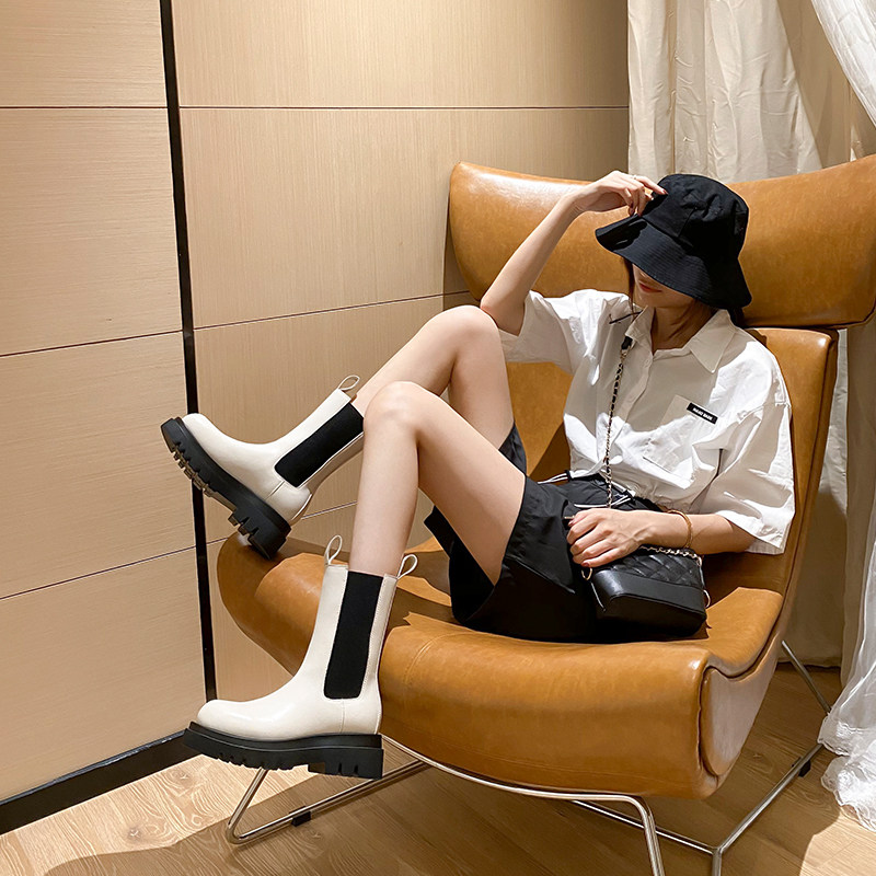 Martens, белые челси, утепленные высокие короткие сапоги на платформе, коллекция 2023, средней длины, подходит для подростков