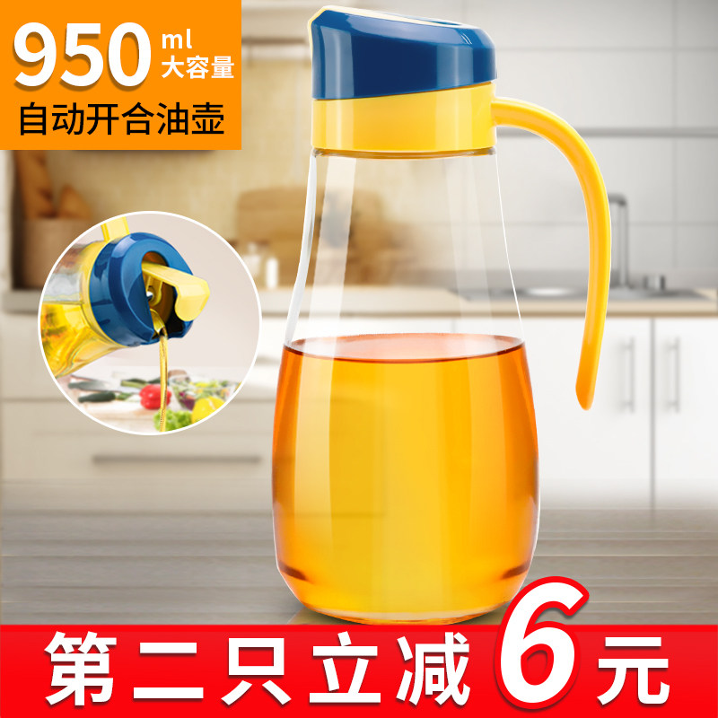 Автоматическое открытие и закрытие стеклянного масляного горшечного масла домашний кухонный масляный горшок с большим соевым соевым соевым соусом.