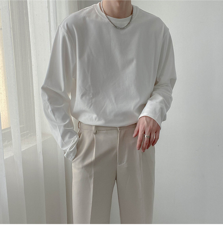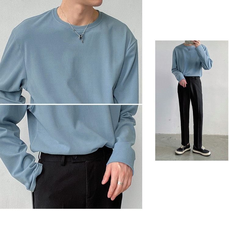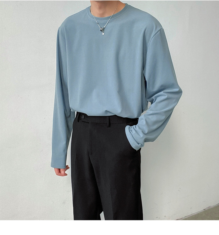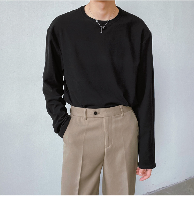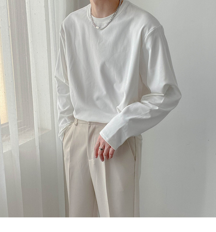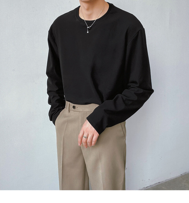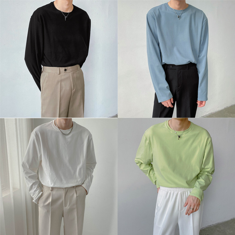 Демисезонный базовый приятный телу трендовый лонгслив, футболка с круглым воротником, в корейском стиле