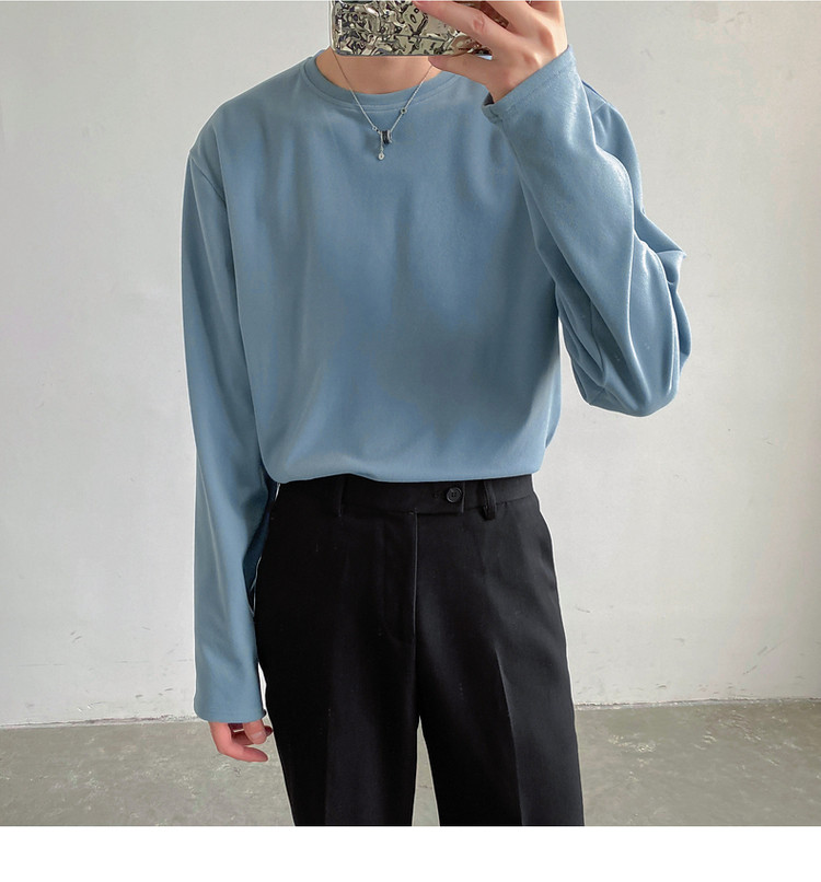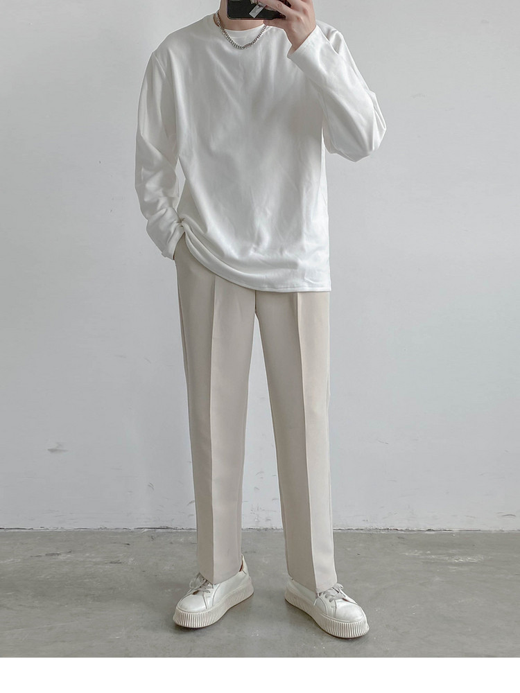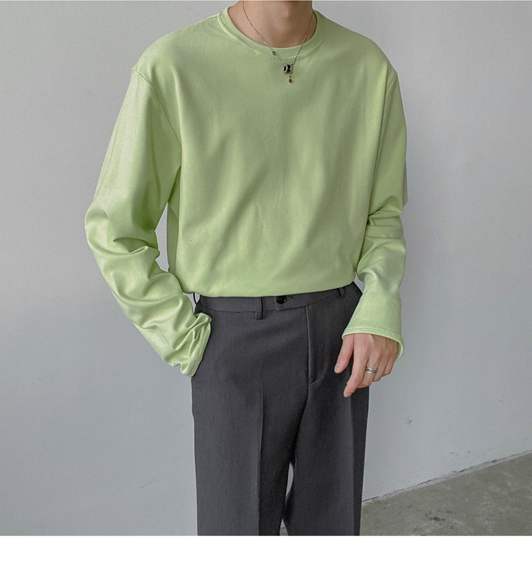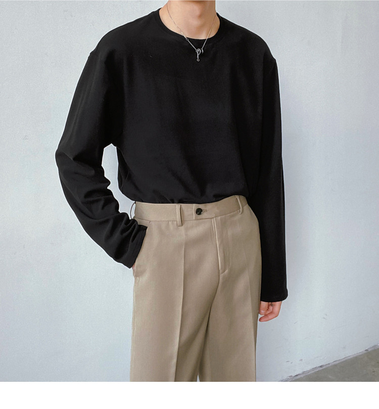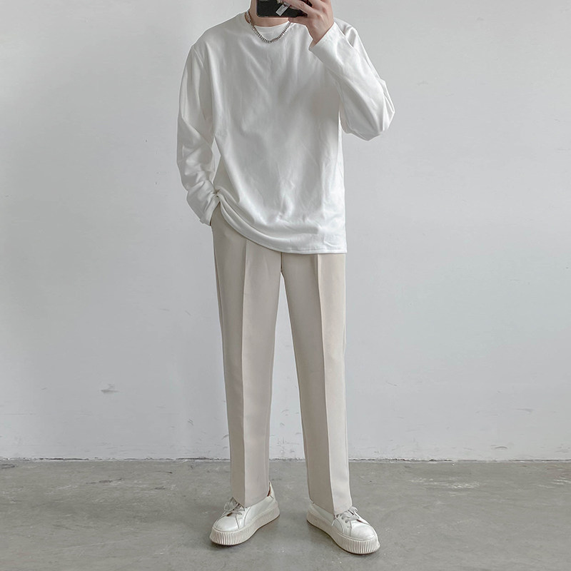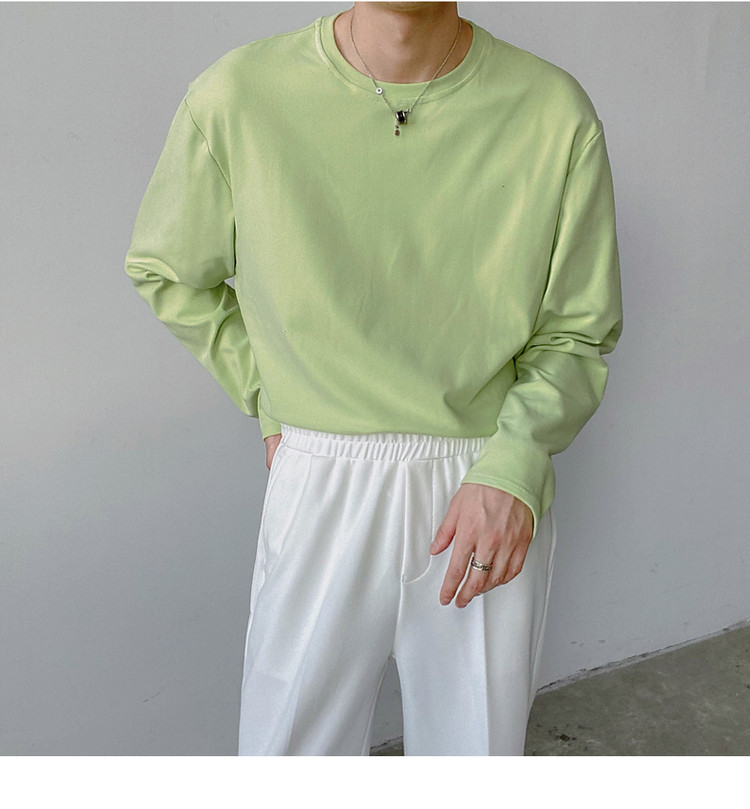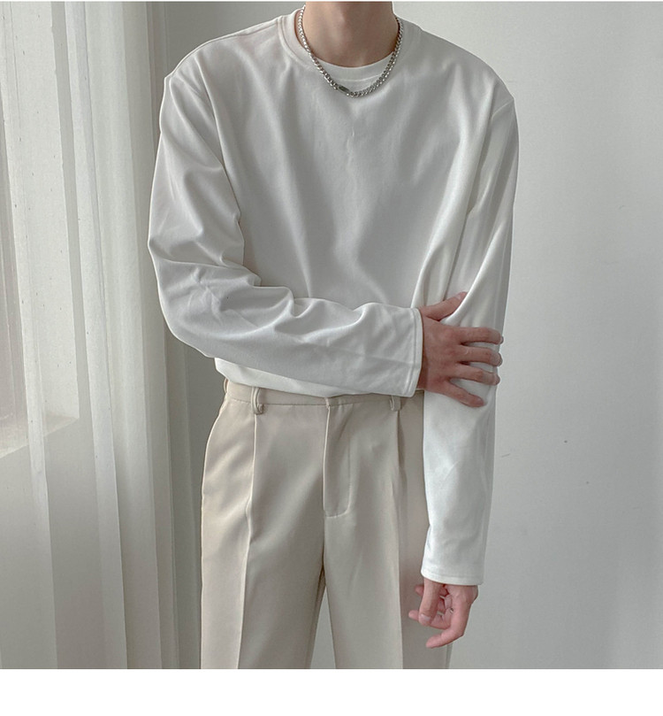 Демисезонный базовый приятный телу трендовый лонгслив, футболка с круглым воротником, в корейском стиле