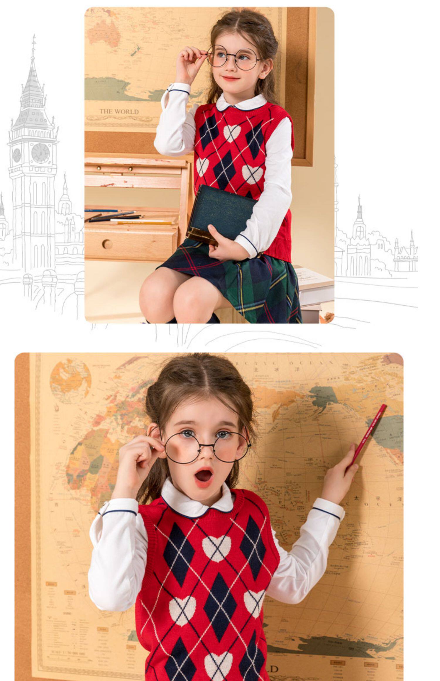 Айви -хаус Чанчун Тенгто Детский костюм Девочки для девочек осень и зимний стиль в стиле колледжа.