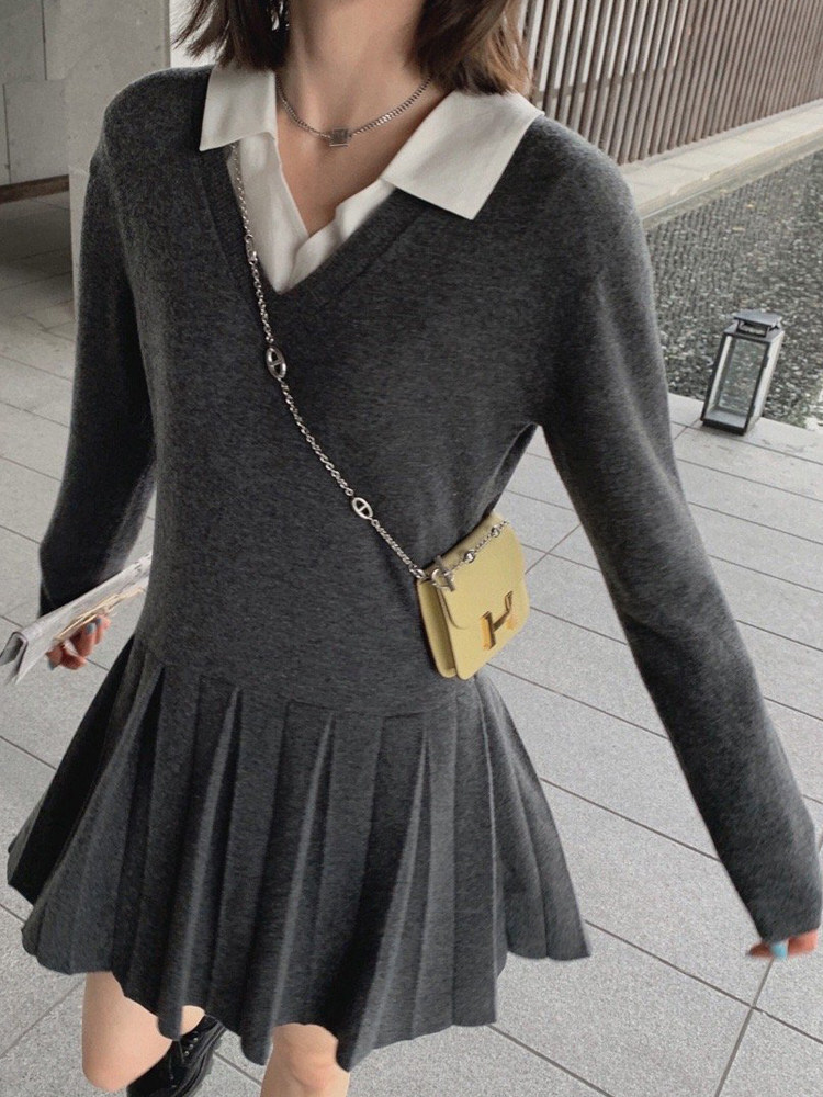 Осеннее платье, корсет, юбка, V-образный вырез, 2021 года, городской стиль, в корейском стиле