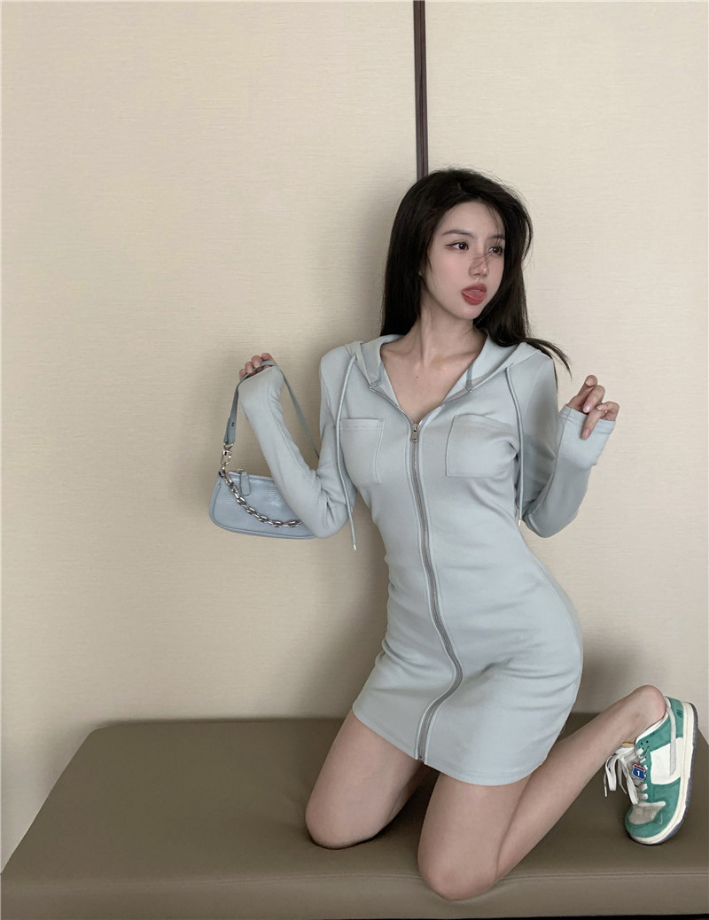 Трикотажная толстовка, платье, корсет, осенний лонгслив с молнией с капюшоном, осенняя базовая мини-юбка, с акцентом на бедрах, в обтяжку