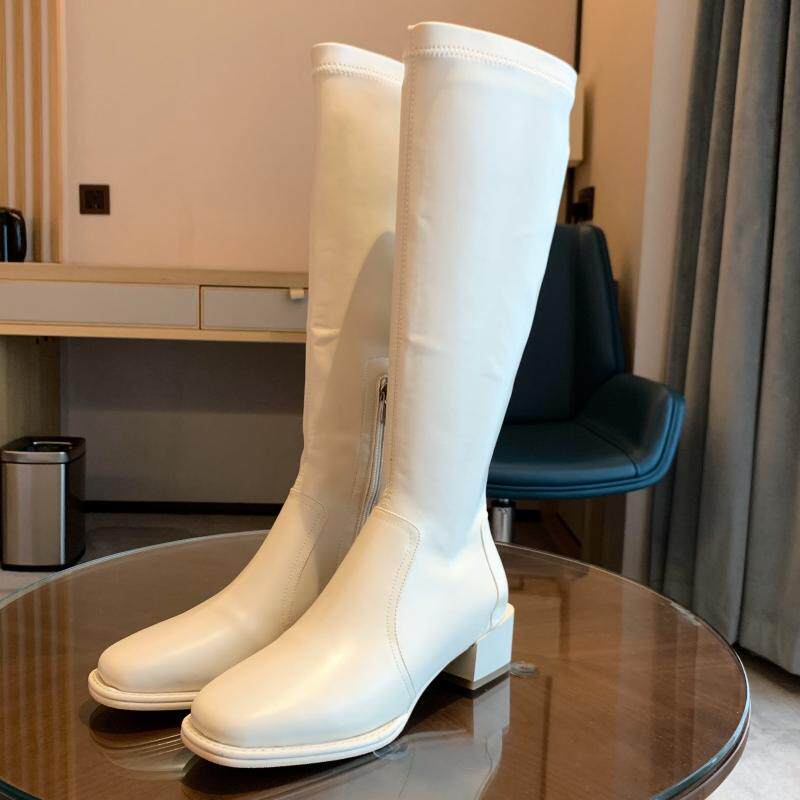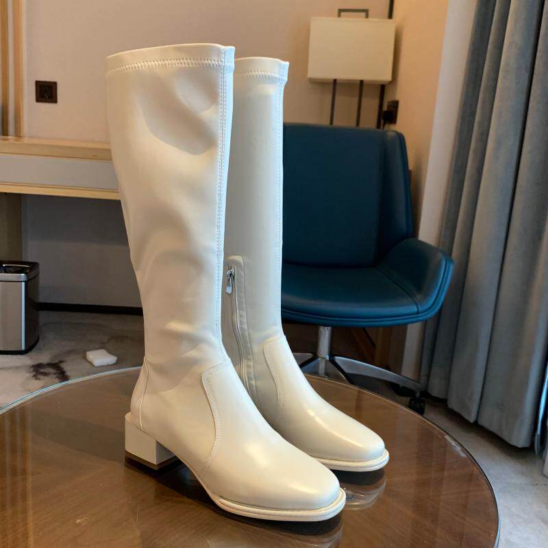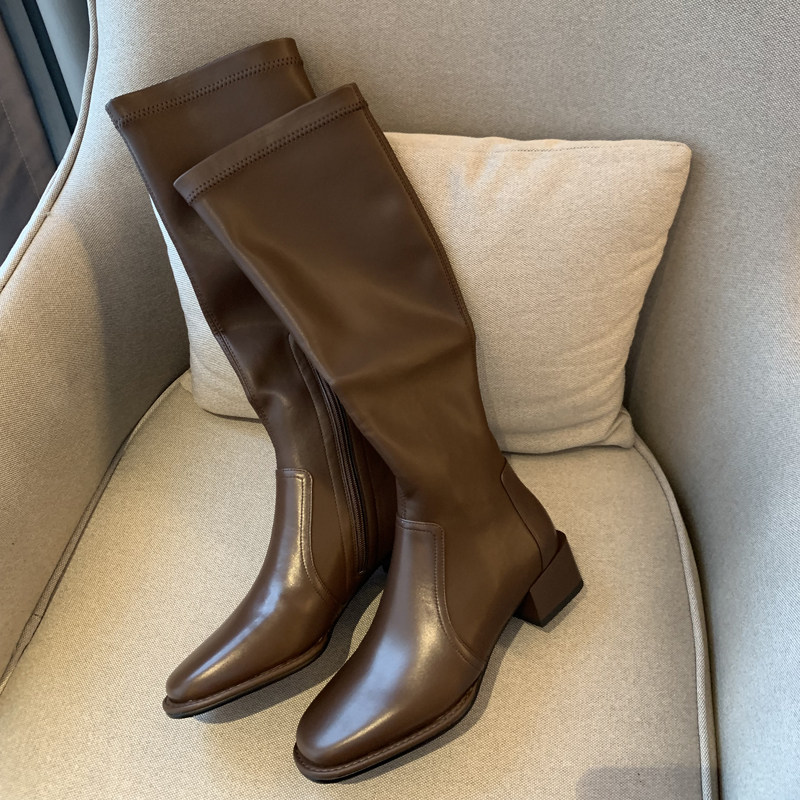 Бежевые эластичные высокие сапоги, подходит для подростков