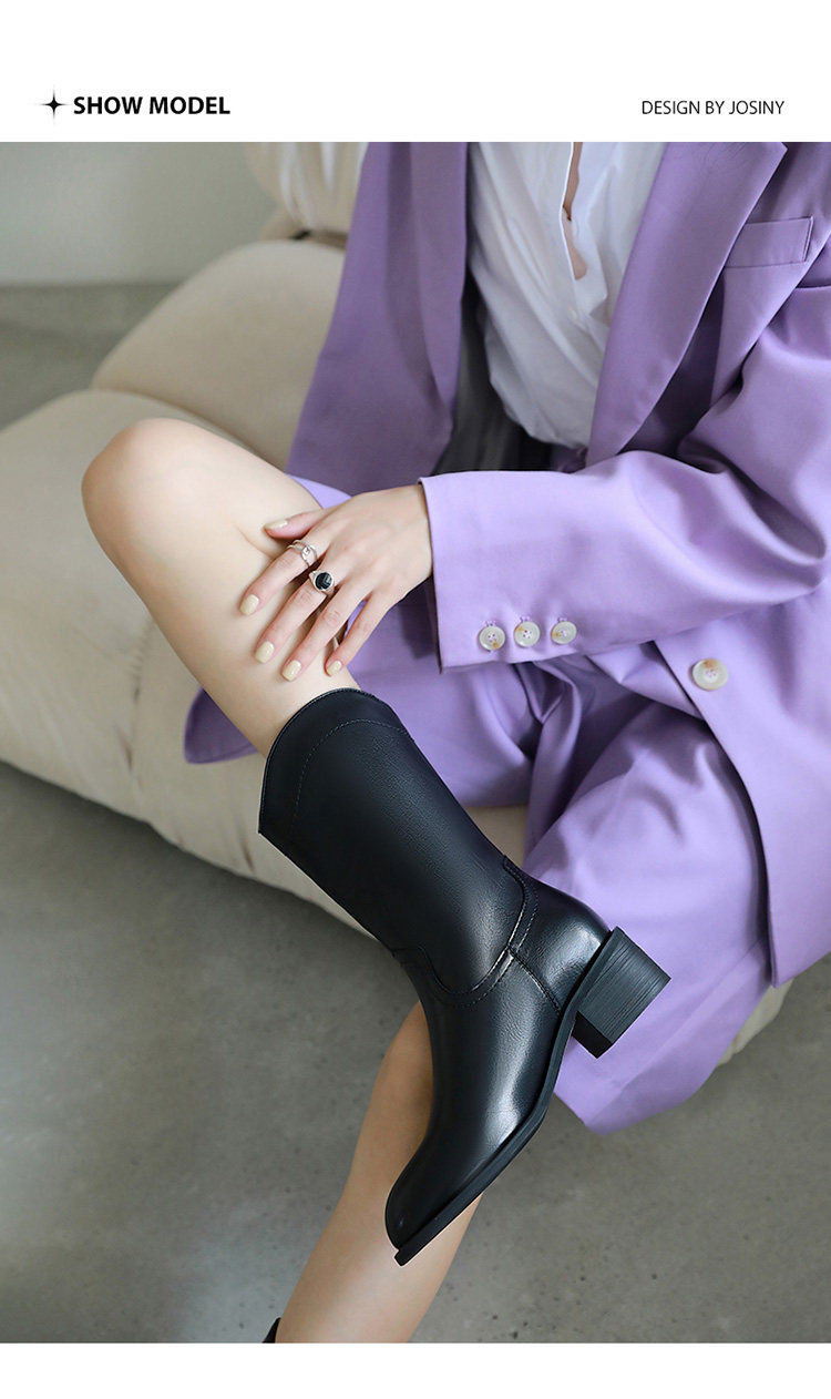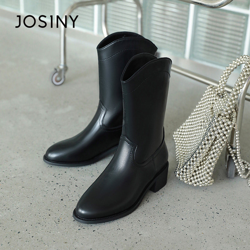 Зимние джинсовые высокие универсальные сапоги, коллекция 2021, средней длины