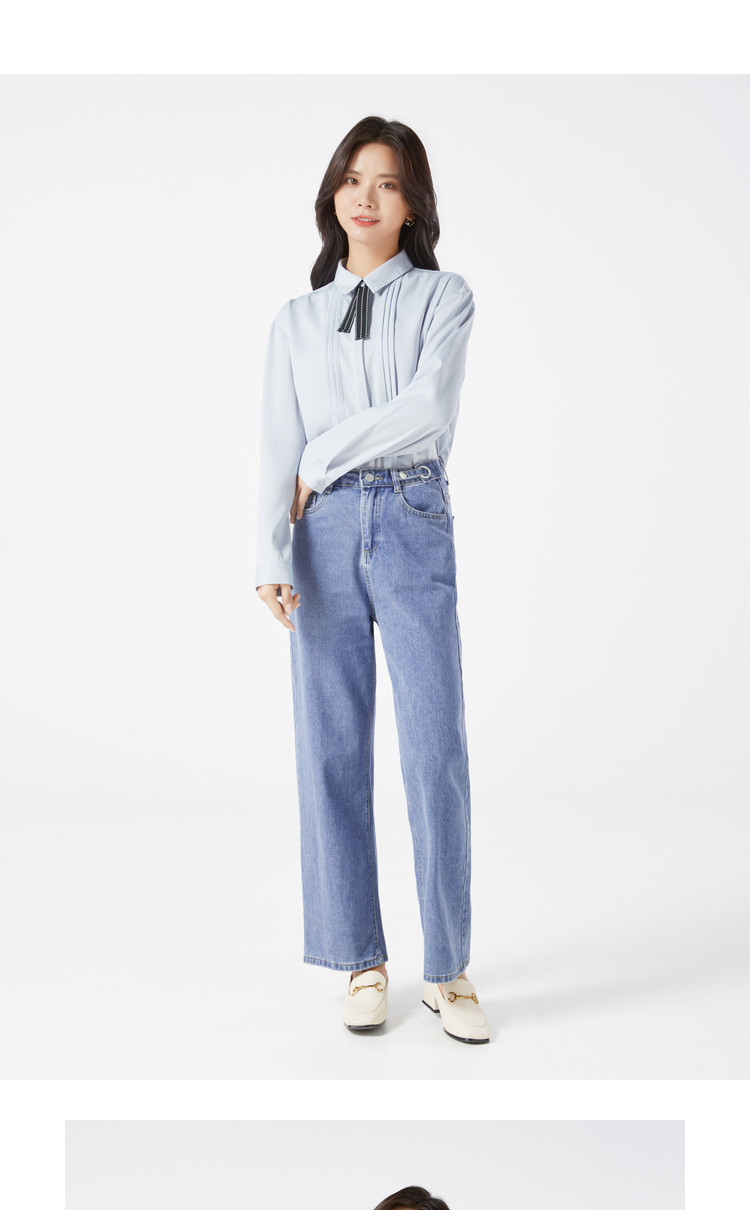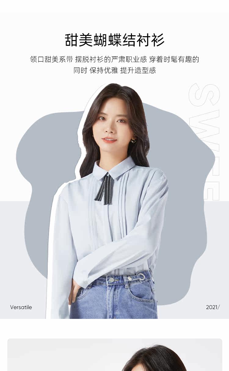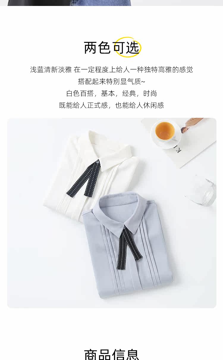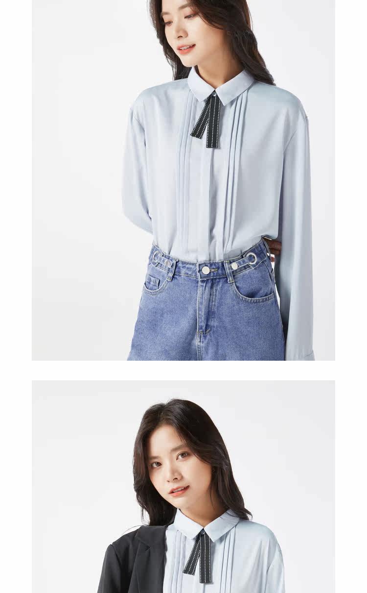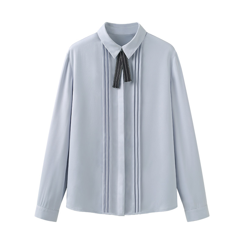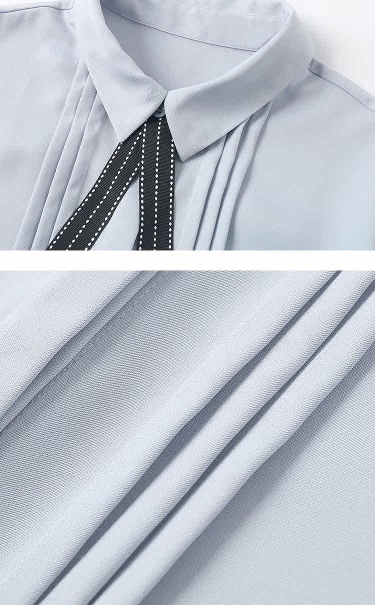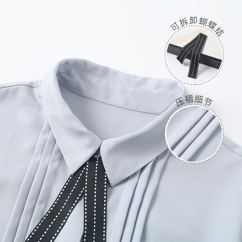 Галстук-бабочка, дизайнерская синяя шифоновая рубашка, осенняя, тренд сезона, оверсайз