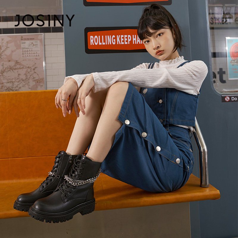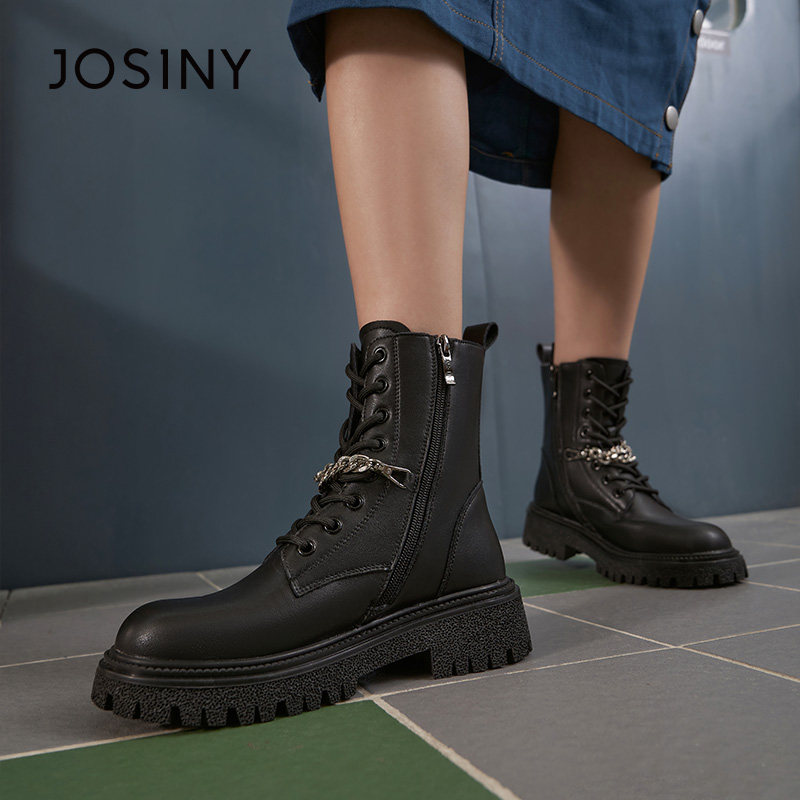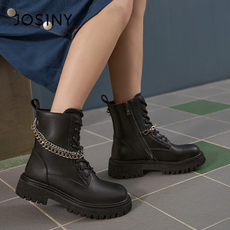 Martens, зимняя универсальная модная цепочка с молнией для отдыха, короткие сапоги, коллекция 2021, из натуральной кожи