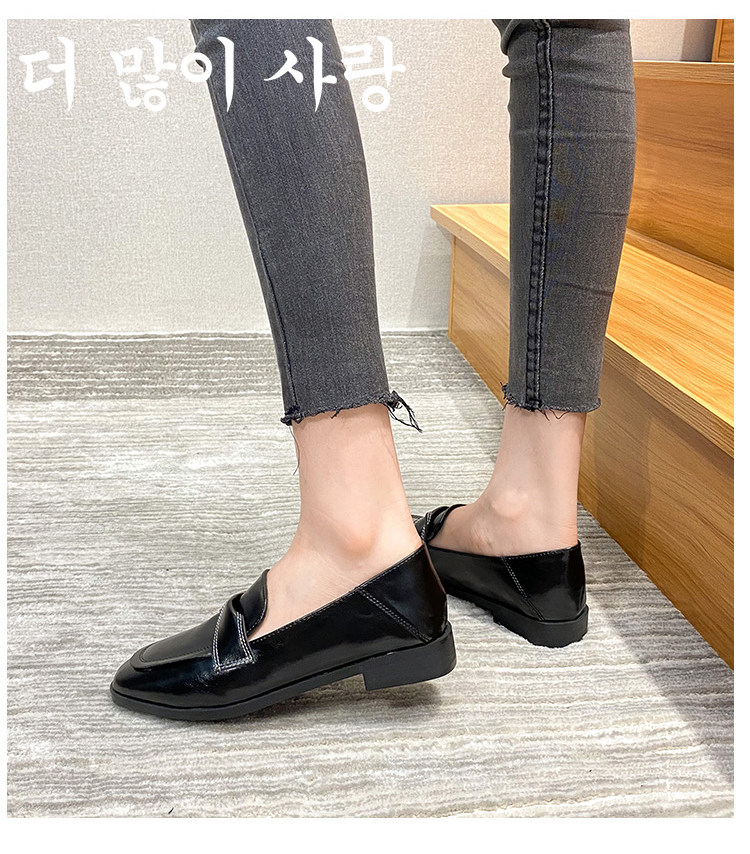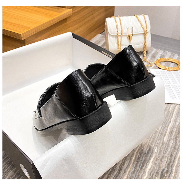 2025 Лето новая черная женская маленькая кожаная обувь британская плоская туфли JK Loafers крупные женские туфли 41 ~ 43