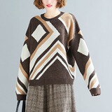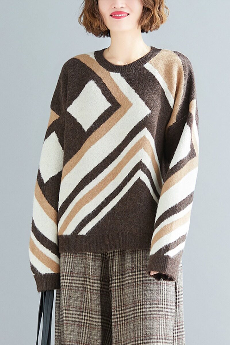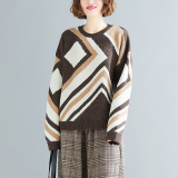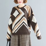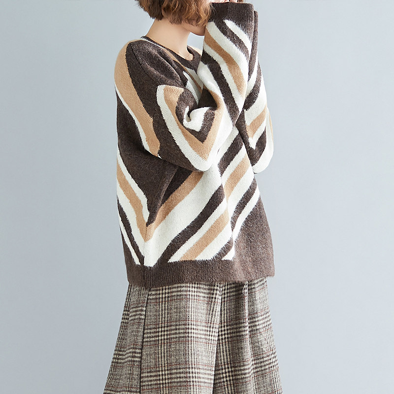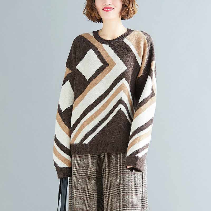 Свитер для отдыха, лонгслив с круглым воротником, нарукавники, большой размер, свободный крой, по фигуре