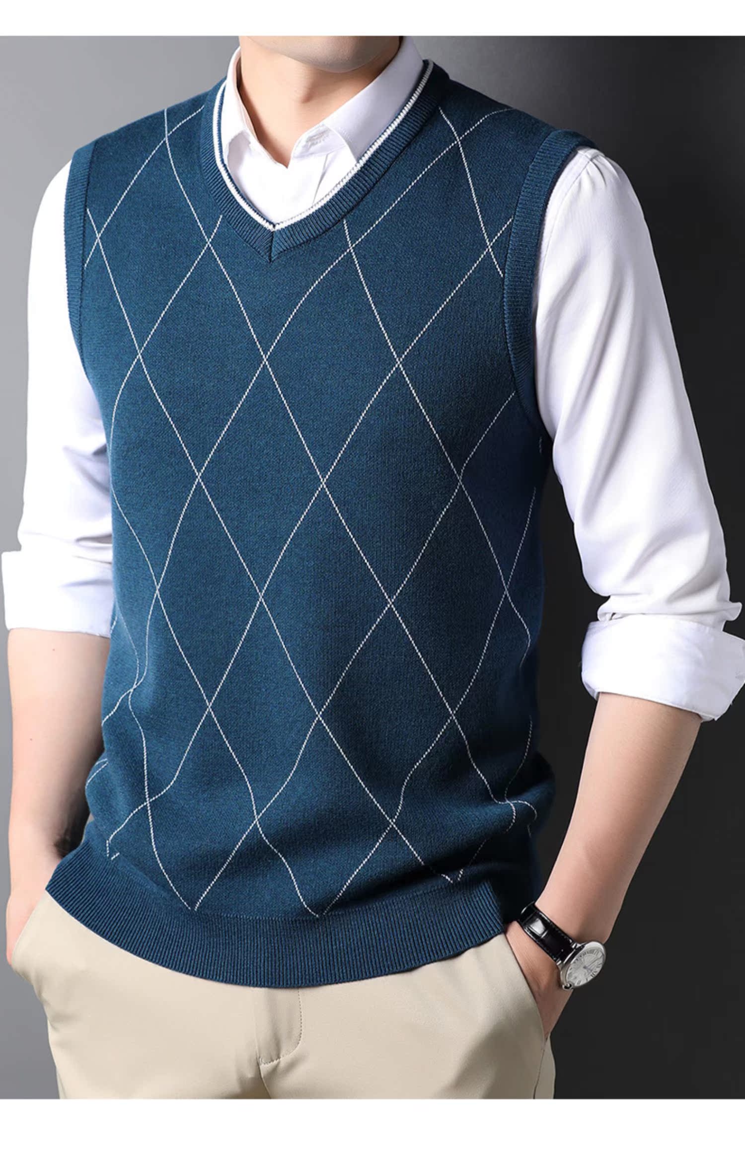 Шерстяной трикотажный свитер, демисезонный тонкий жилет без рукавов