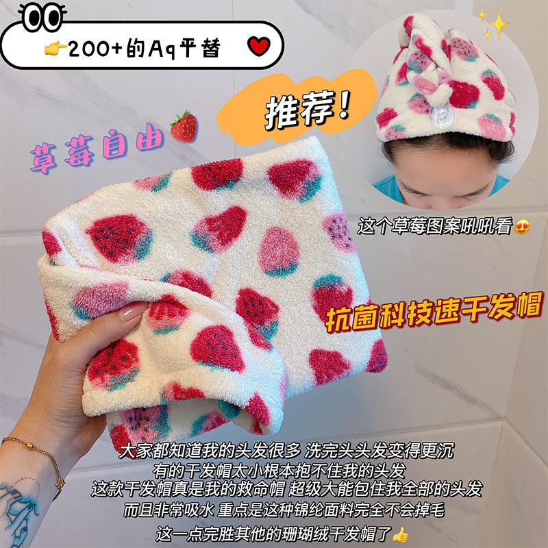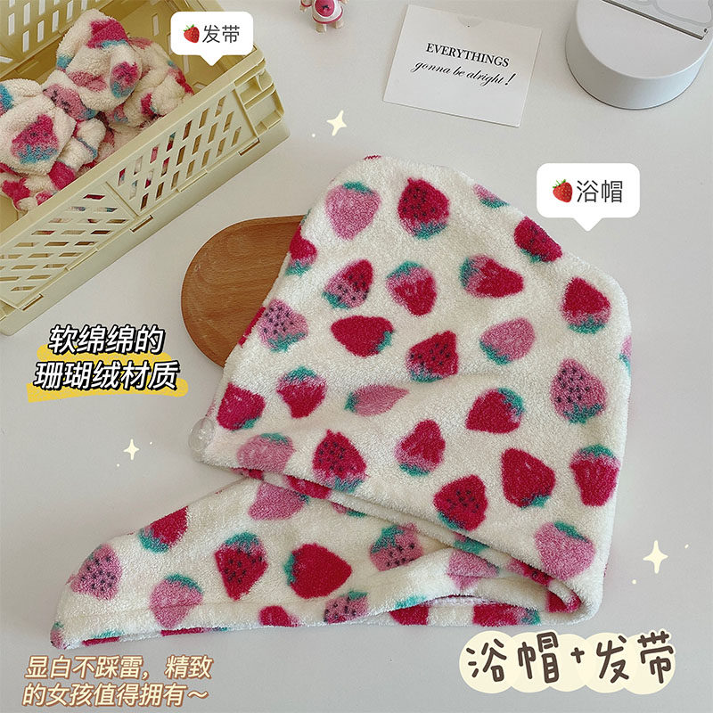 Клубника, полотенце для волос, быстросохнущий платок, милый комплект, хлопковая шапочка для душа, хорошо впитывает воду
