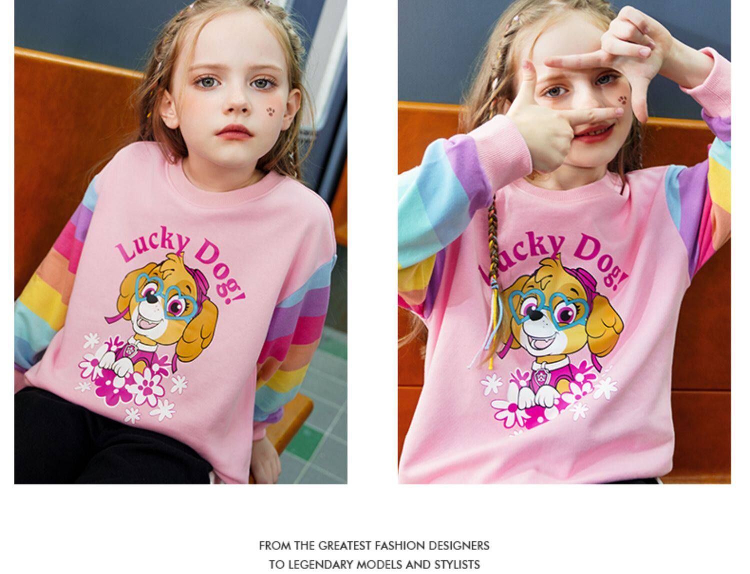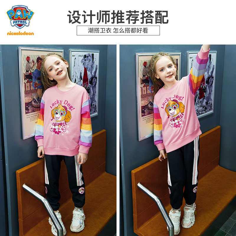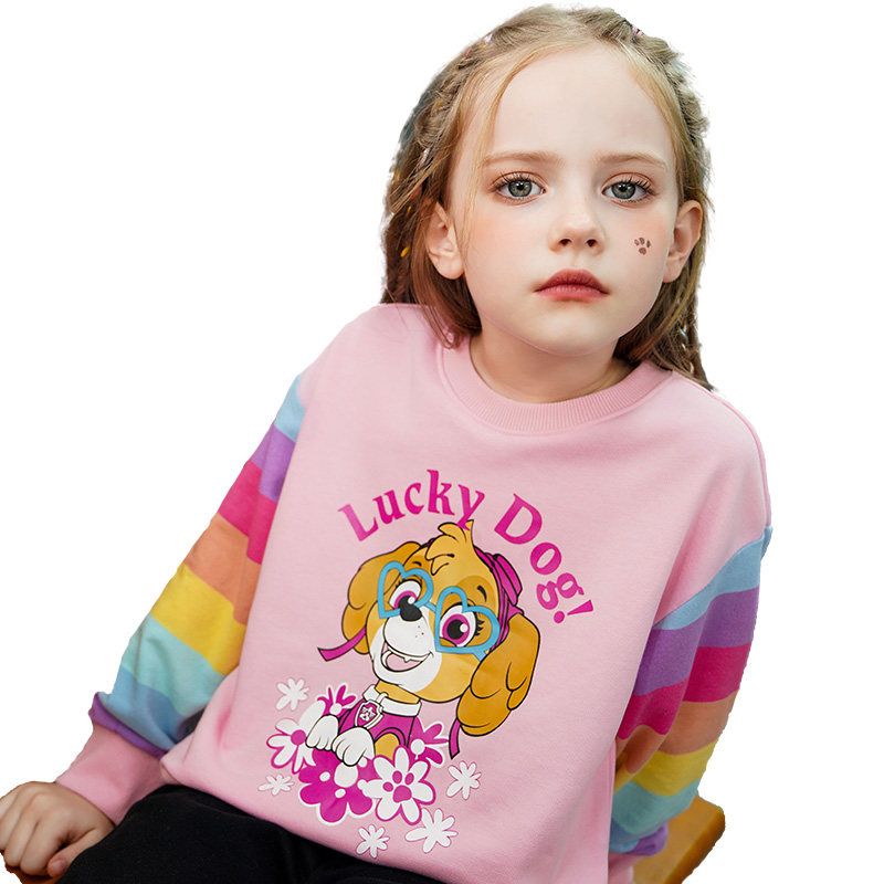 Осенняя толстовка, розовый радужный мультяшный лонгслив для девочек, коллекция 2021