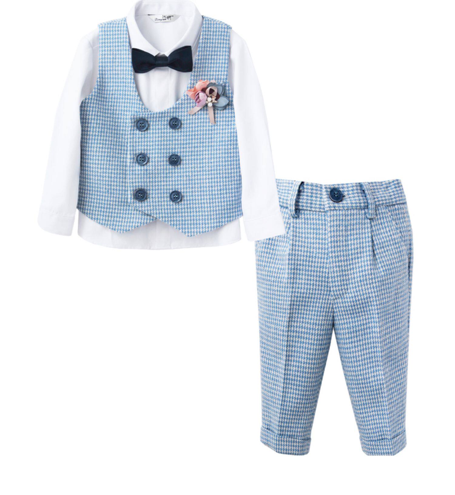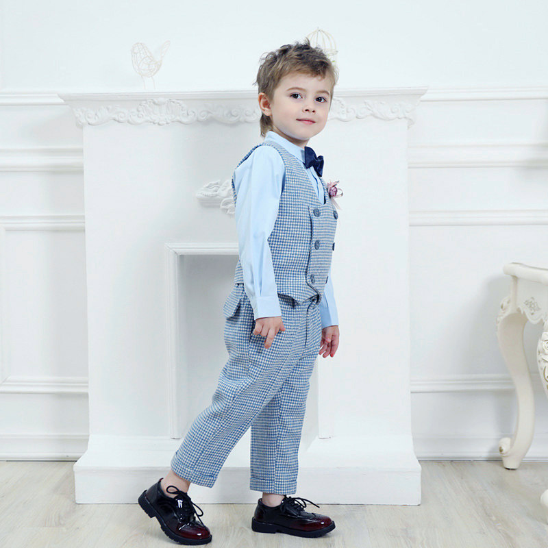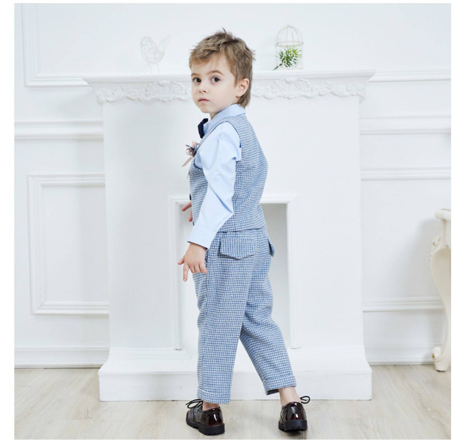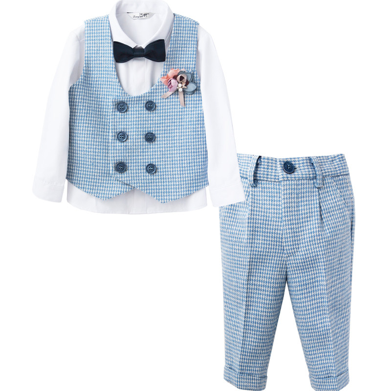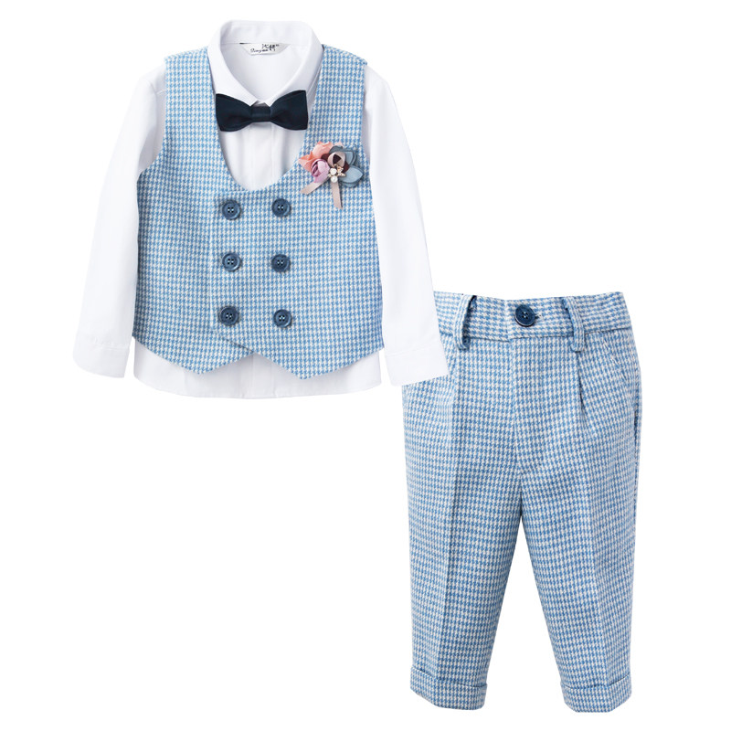 Осенний демисезонный синий цветной костюм для мальчиков, детский комплект, платье, в корейском стиле