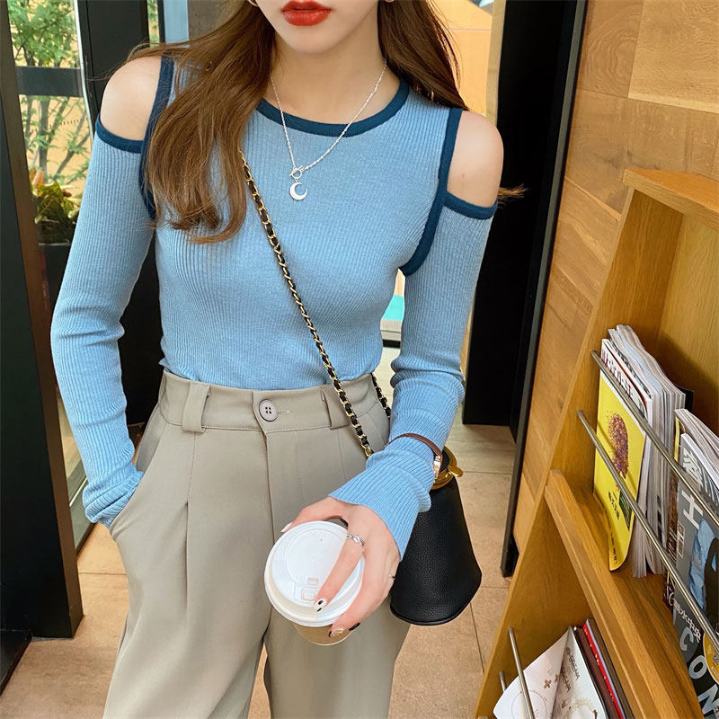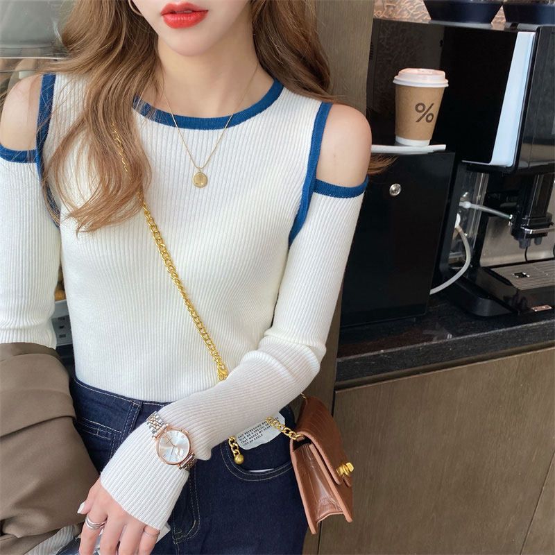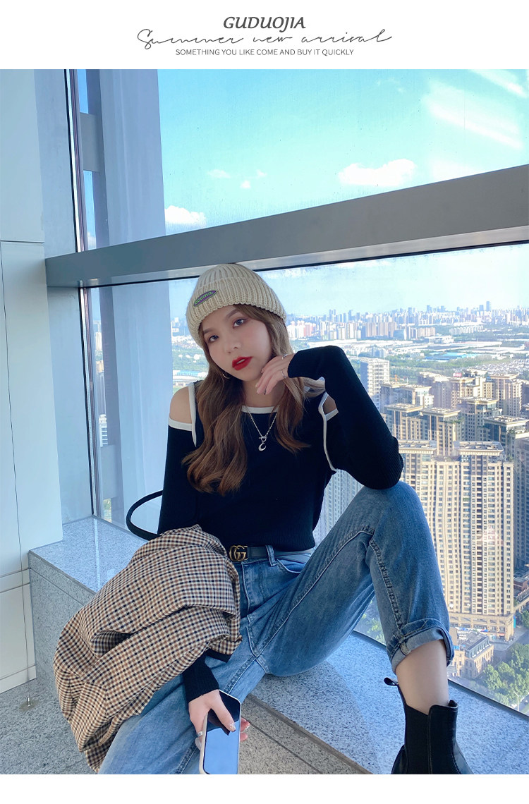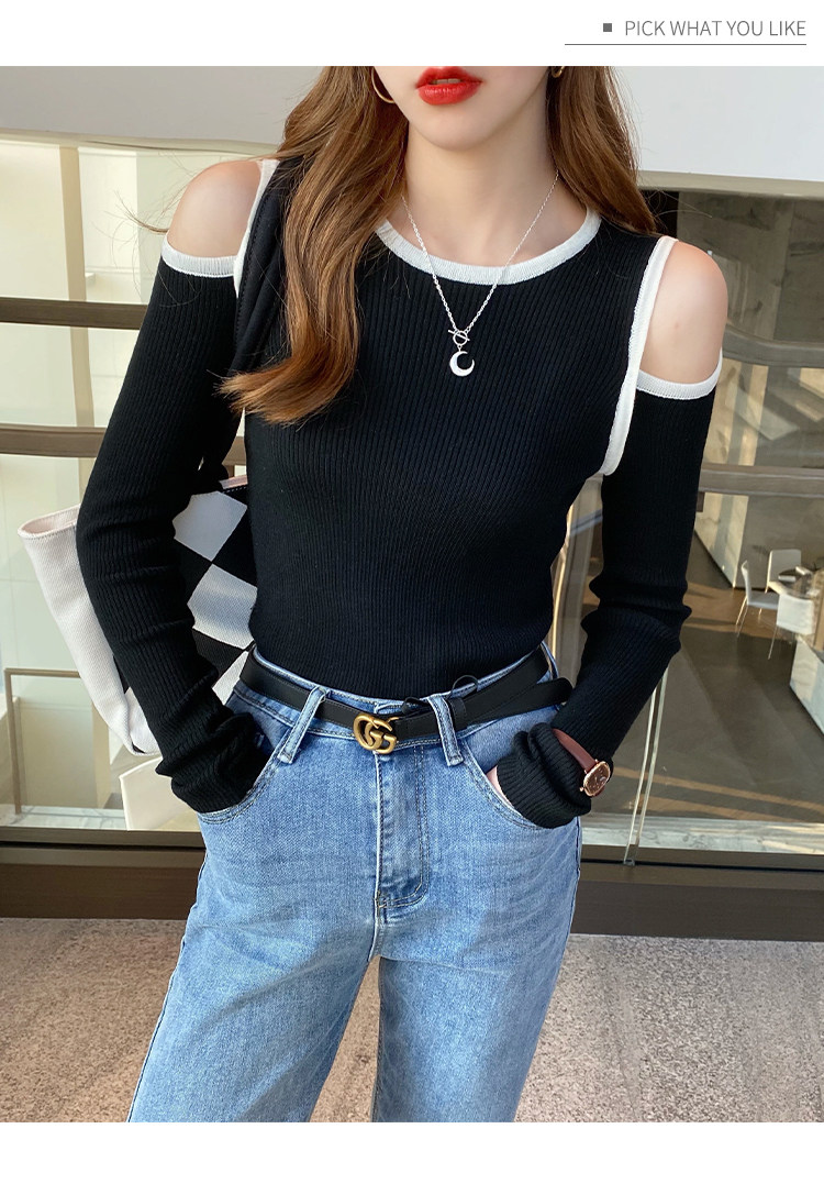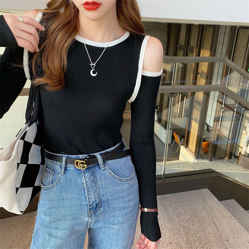 Трикотажный осенний дизайнерский базовый свитер, тренд сезона, коллекция 2021, облегающий крой