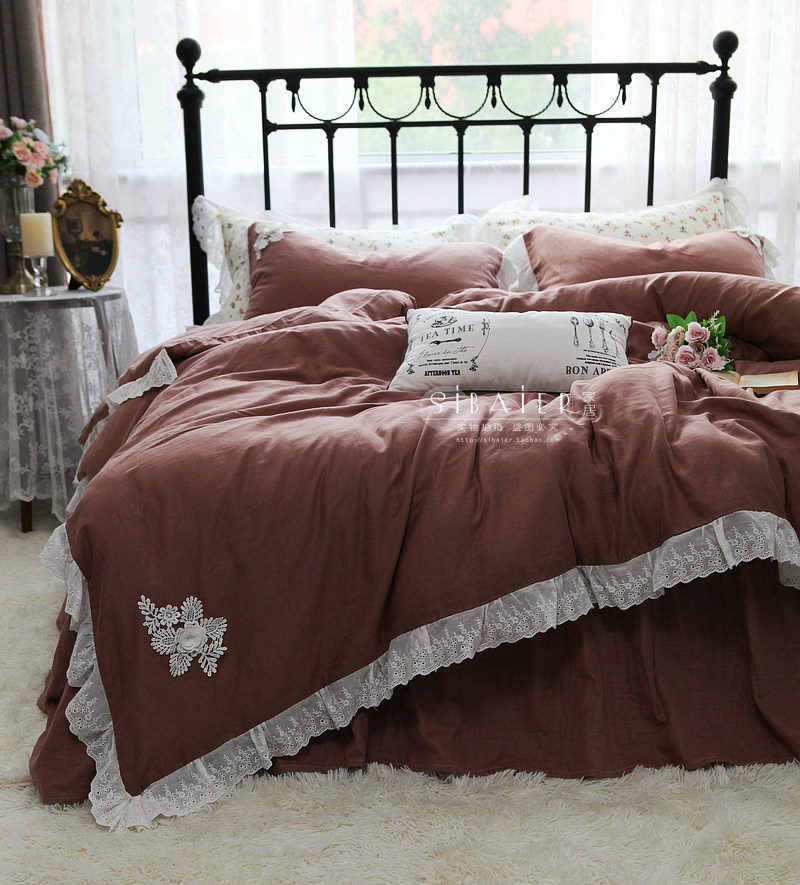 Корейское современное двухэтажное хлопковое покрывало, пододеяльник, комплект, европейский стиль, простой и элегантный дизайн, 4 предмета