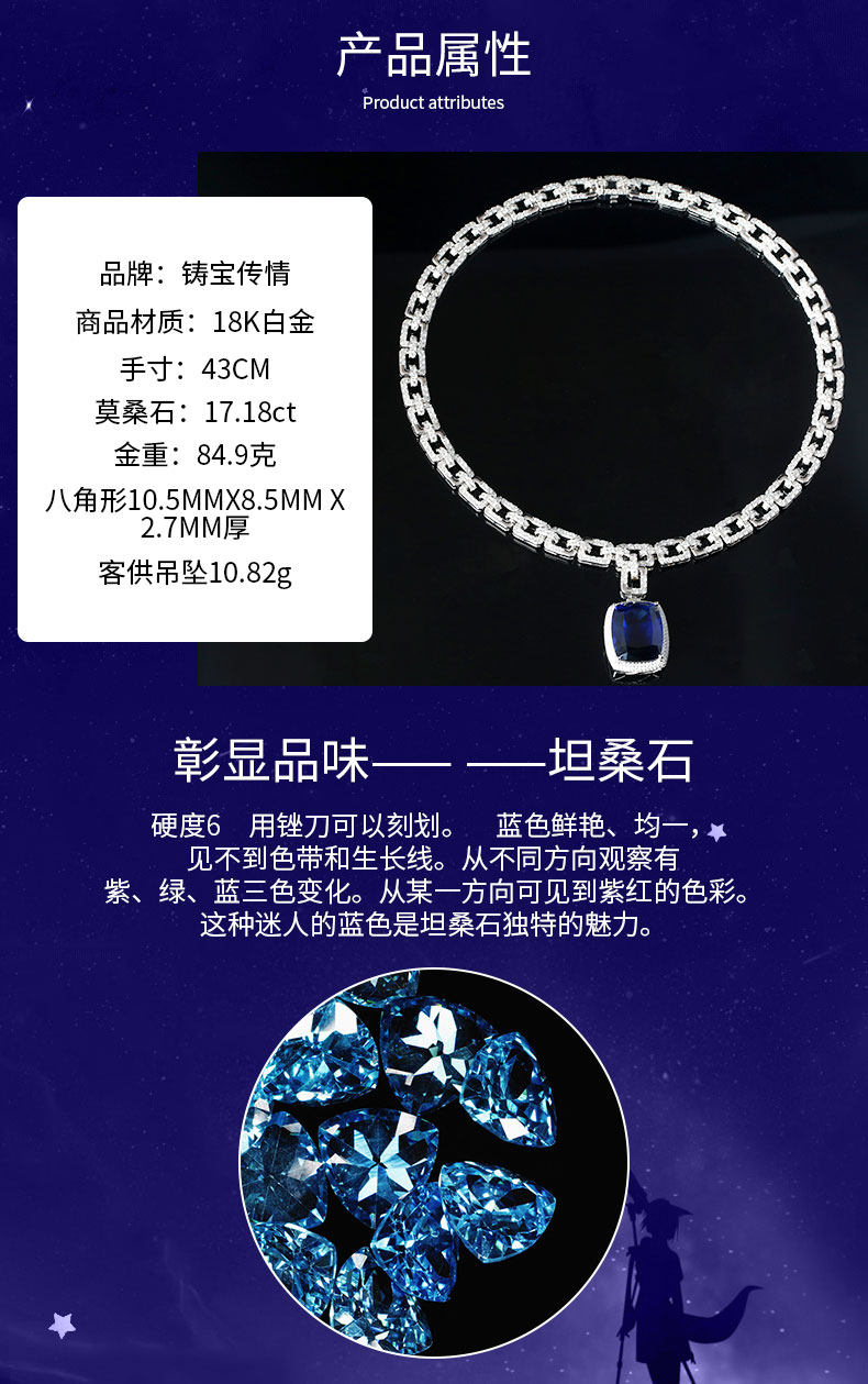 铸宝传情 Королевская сапфировая платиновая бриллиантовая подвеска, золото 750 пробы, легкий роскошный стиль, делается под заказ