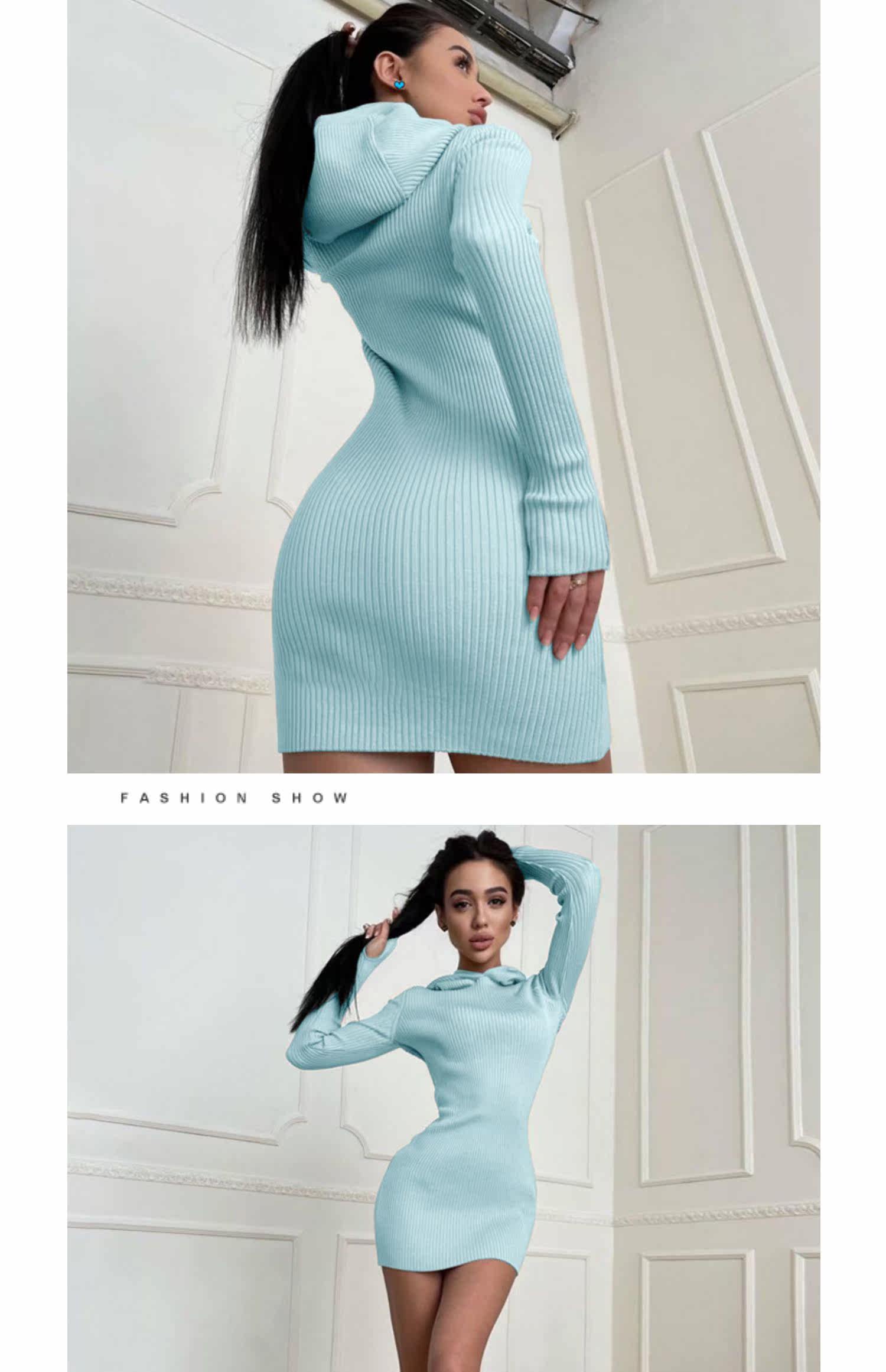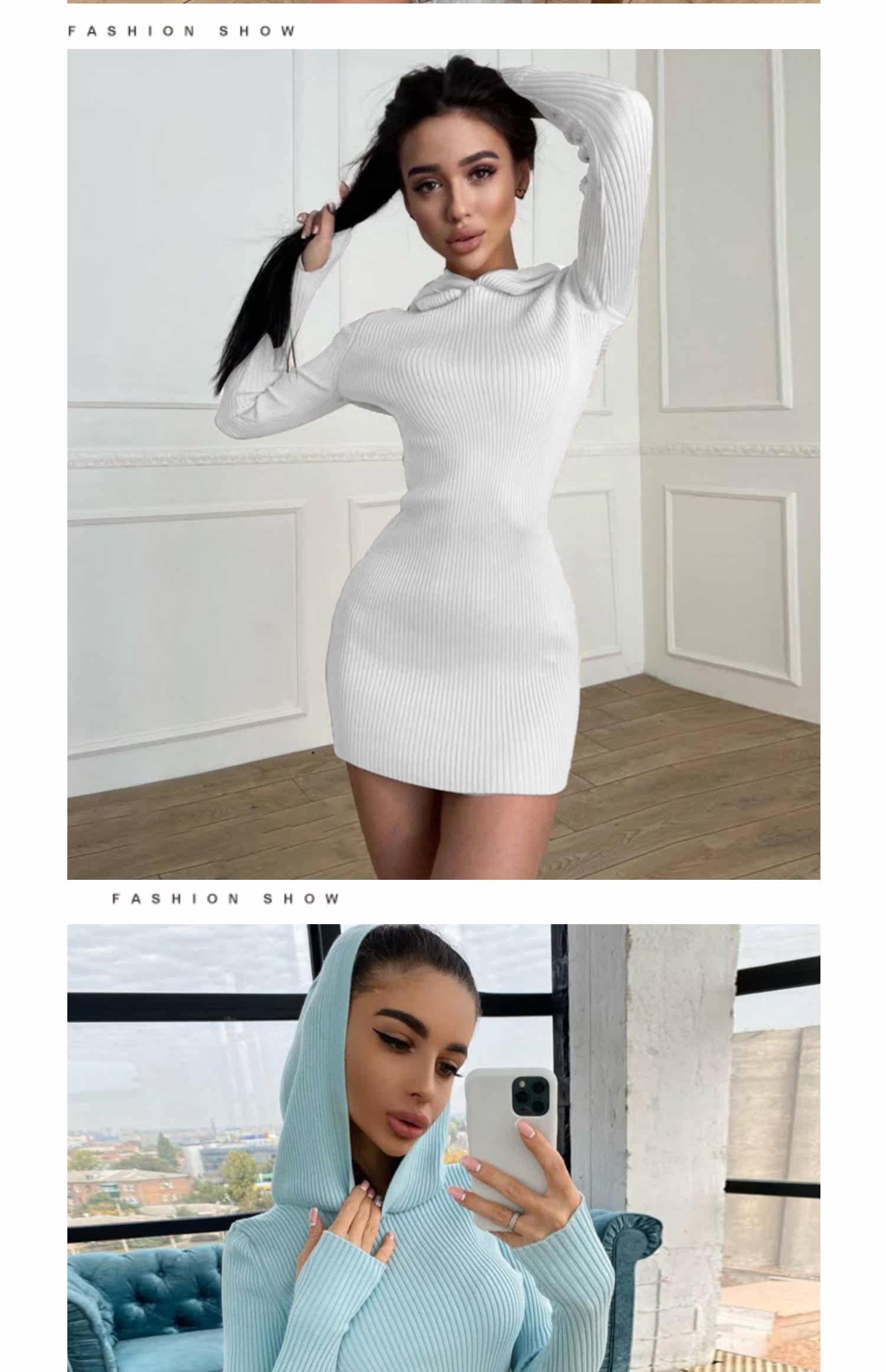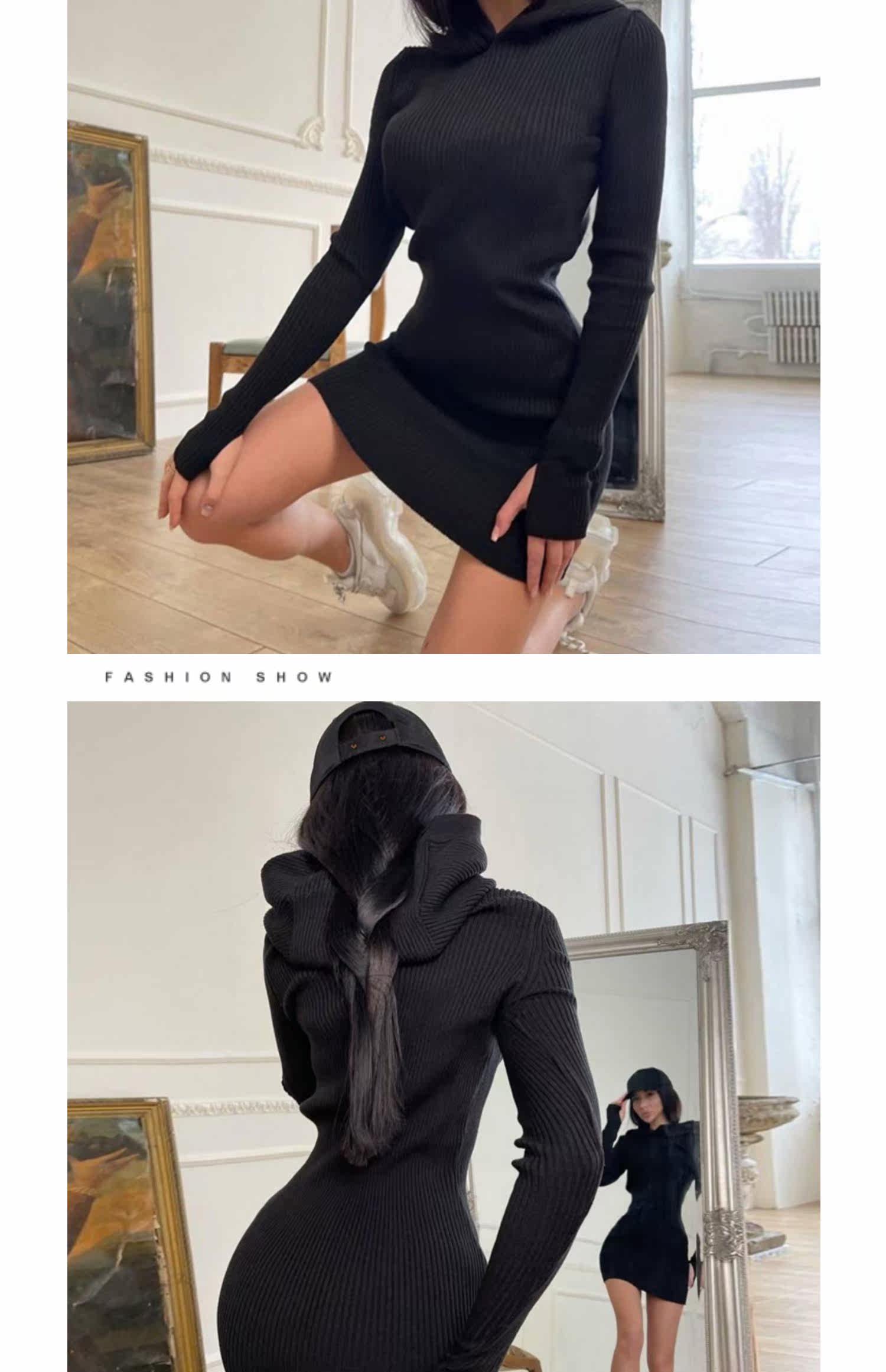 Сексуальная трикотажная демисезонная мини-юбка, лонгслив с капюшоном, платье, европейский стиль, в обтяжку, с акцентом на бедрах