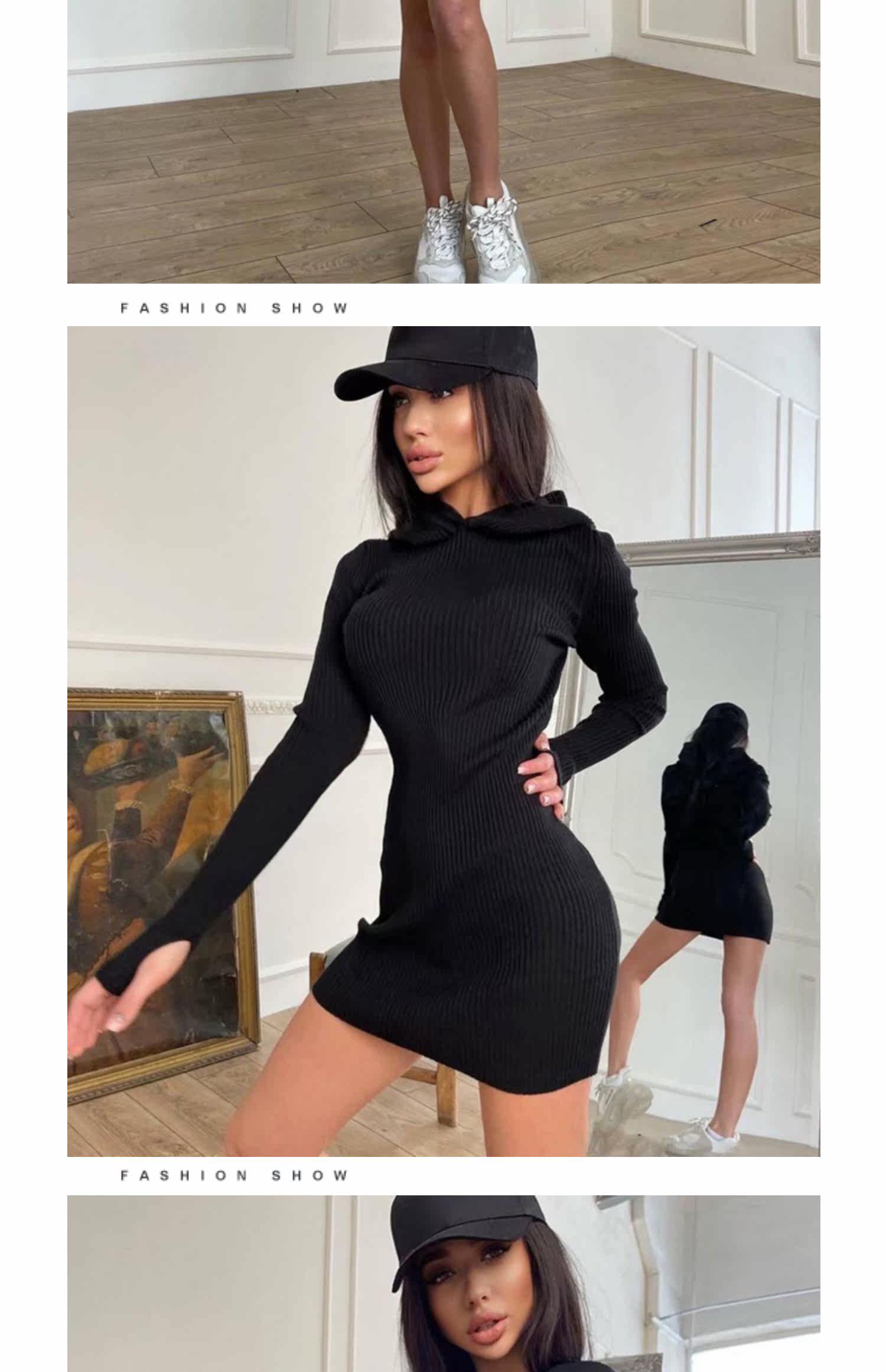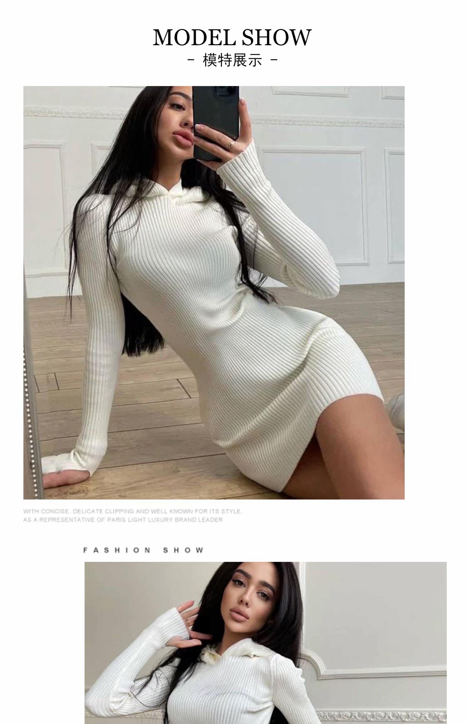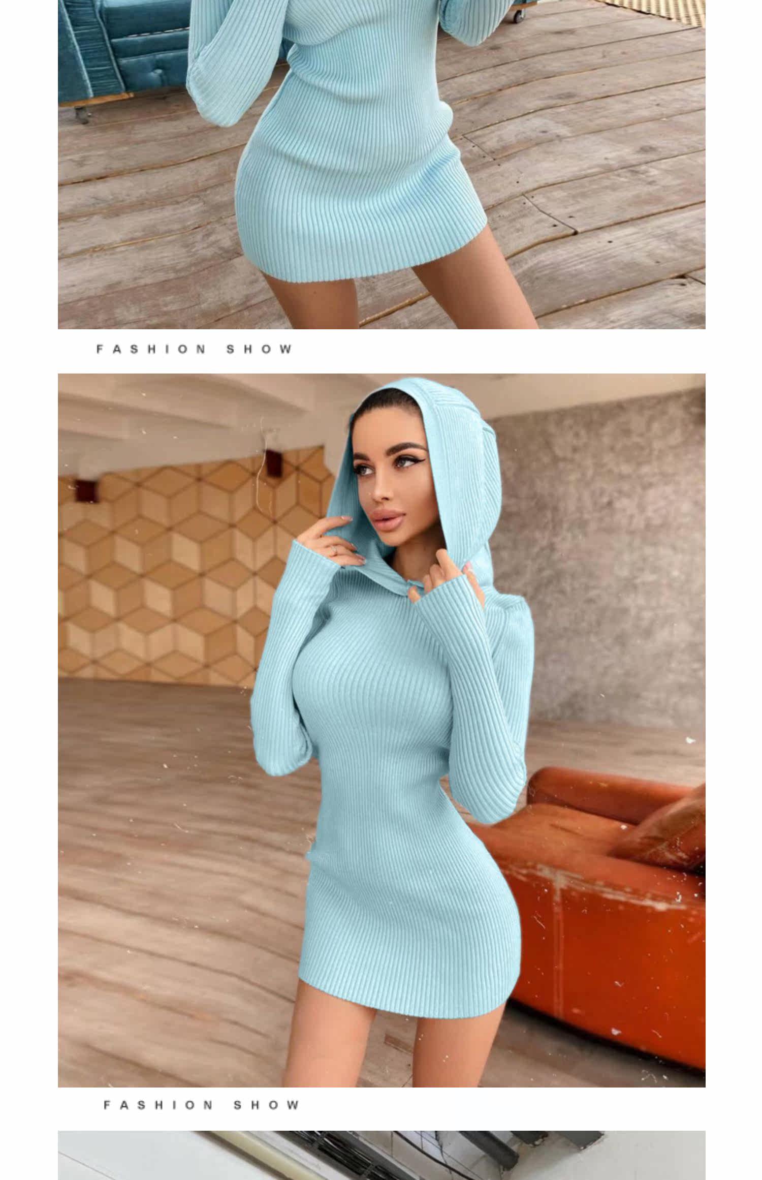 Сексуальная трикотажная демисезонная мини-юбка, лонгслив с капюшоном, платье, европейский стиль, в обтяжку, с акцентом на бедрах