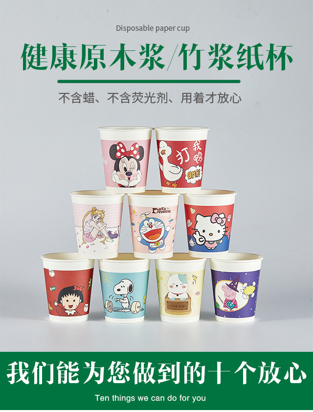 Одноразовая чашка бумажная чашка для водяной чашки Cartoon Citem Pattern Коммерческий офис домохозяйство 9 унций 250 мл утолщены