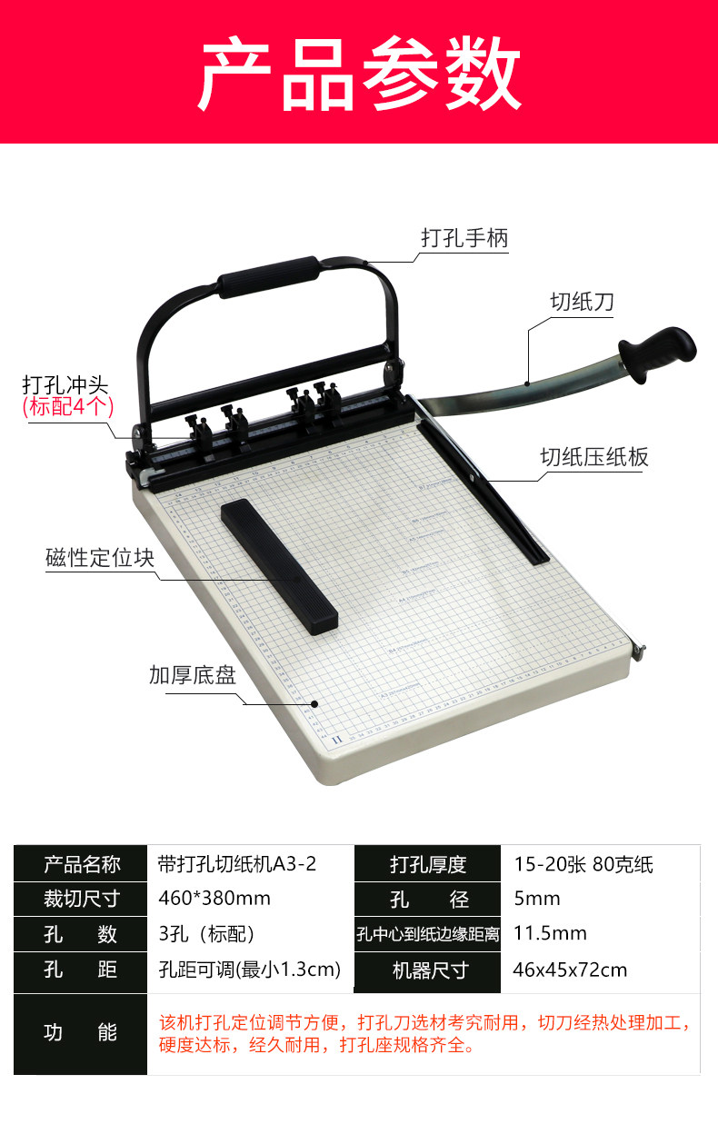 Hongwen A3-2 Четырех полюсного понедельника с бумажным ножом, офисным малым пуншом для привязки к файлам, привязывающему, переключающая машина Финансовый ваучер, перемешивание, открытие занавеса в прямом эфире