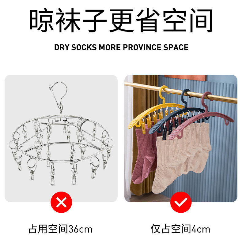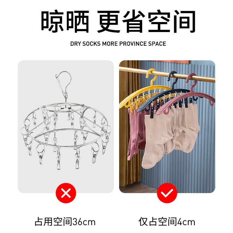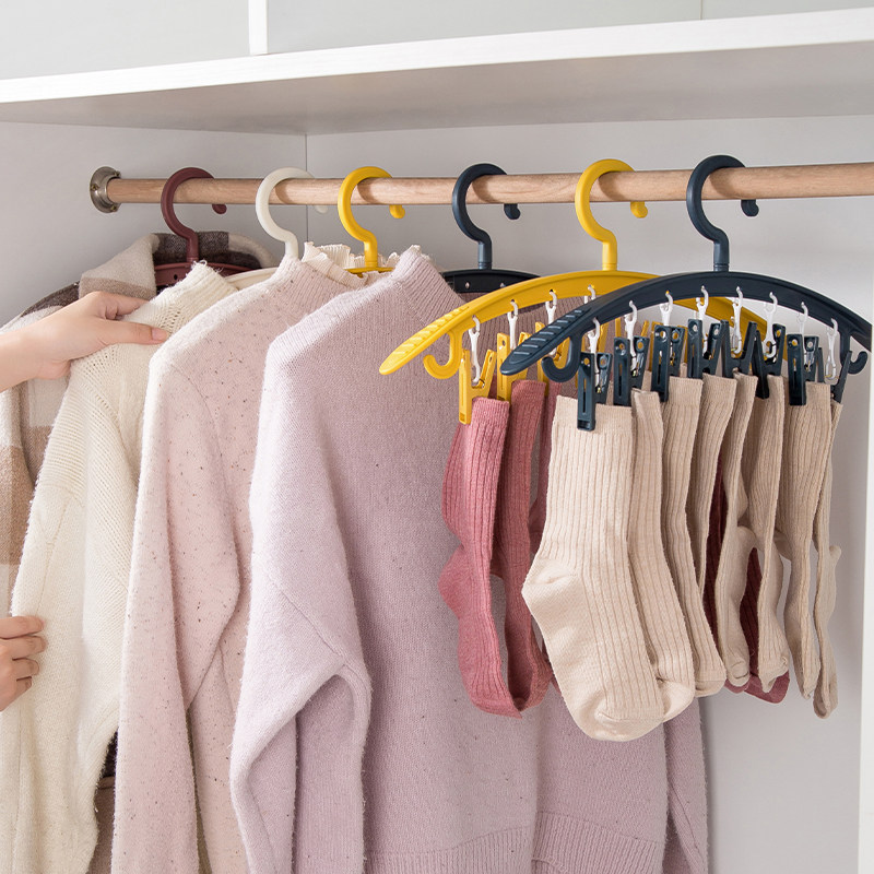 Multi -Clip носки, держащие сушильную стойку с активами носков и артефактов, подвешенных носков.