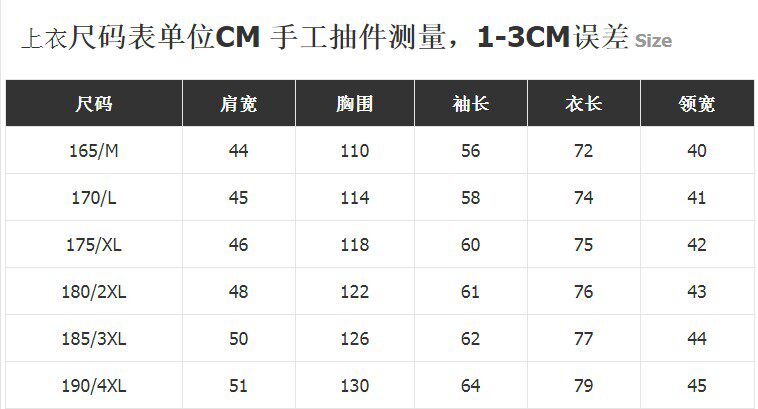 | Размер: | 160/S, 165/м (менее 125 кот), 170/л (125-140 Catties), 175/xl (140-155 Catties), 180/2xl (155-170 Catties), 185/3XL (170-185 котлих), 190/4xl (185-205 Catties), 195/5x/(205-225 Catties) |