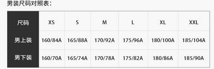 | Размер: | 165 (Азиатский код S, Европейский код XS), 170/92A (азиатский код M, европейский код S), 175/96A (Азиатский код L, Европейский код M), 180/100А (Азиатский код XL, Европейский код L), 185 (Азиатский код XXL, Европейский код XL) |