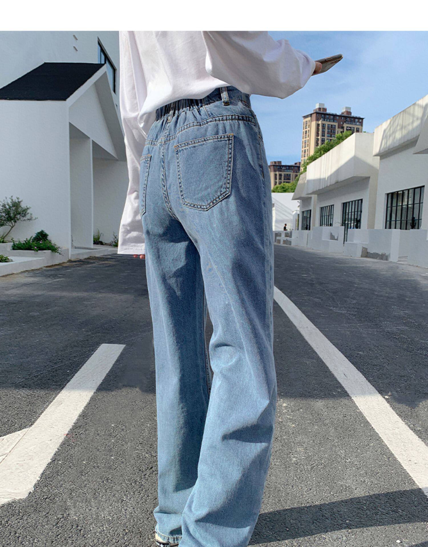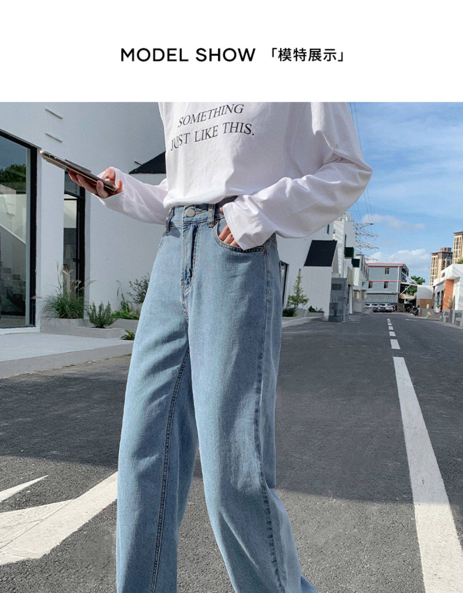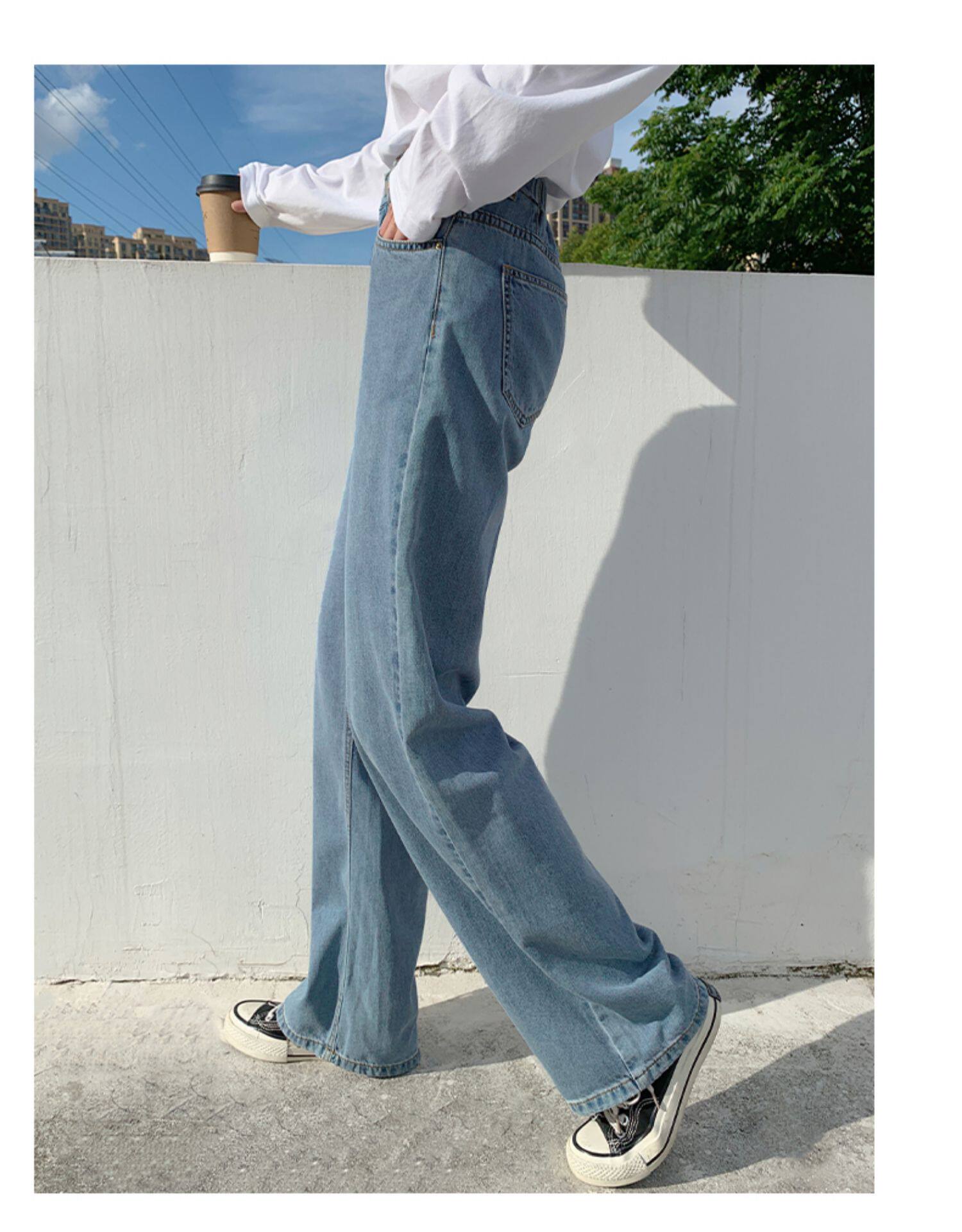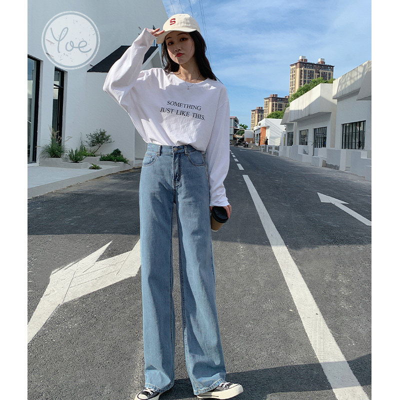 Джинсы, осенние приталенные трендовые брендовые штаны, свободный прямой крой, высокая талия, оверсайз, в корейском стиле