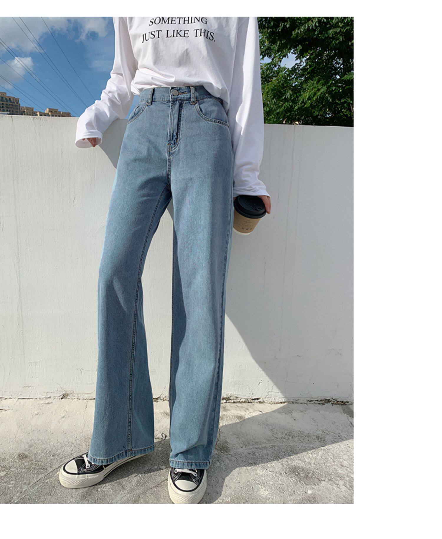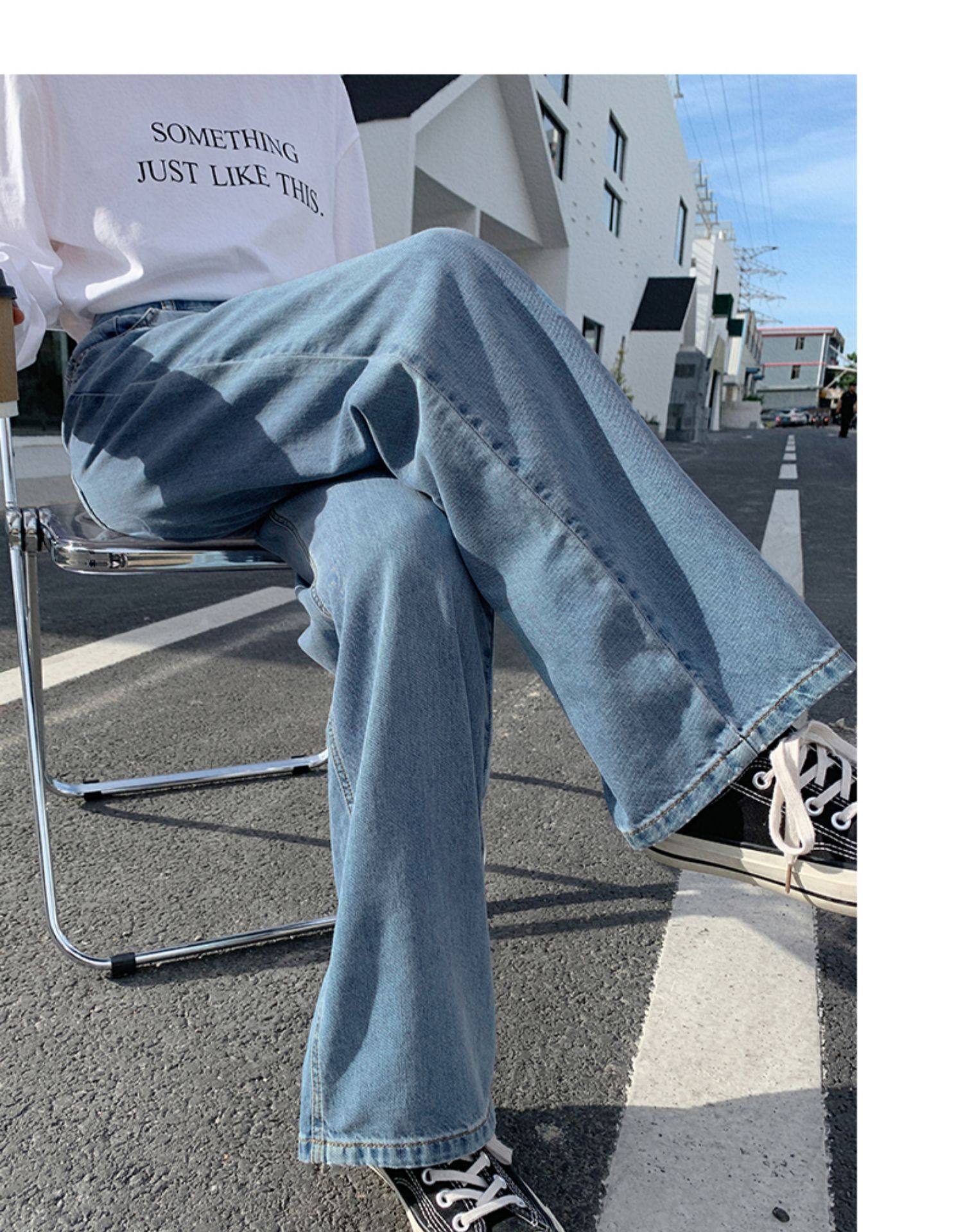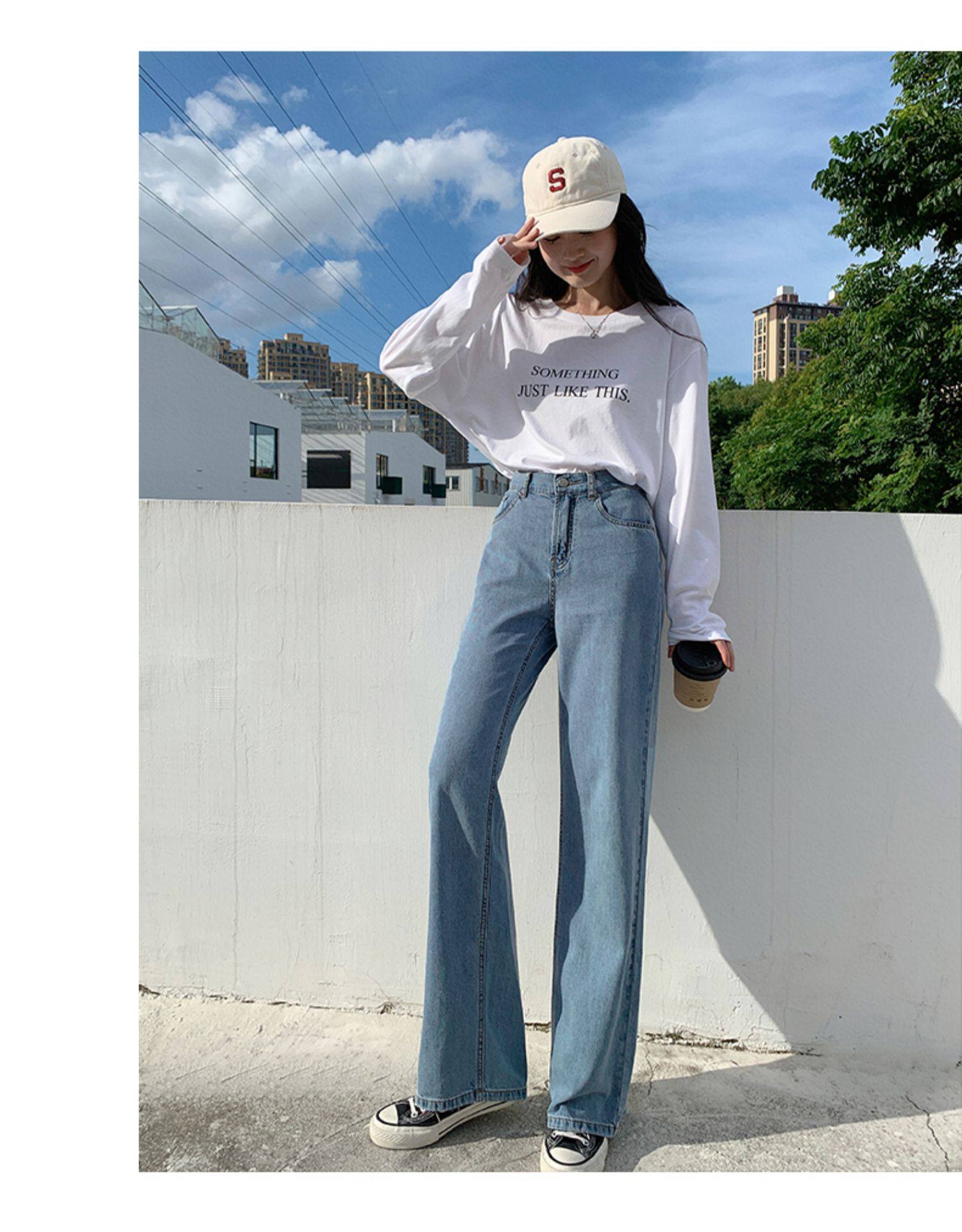 Джинсы, осенние приталенные трендовые брендовые штаны, свободный прямой крой, высокая талия, оверсайз, в корейском стиле