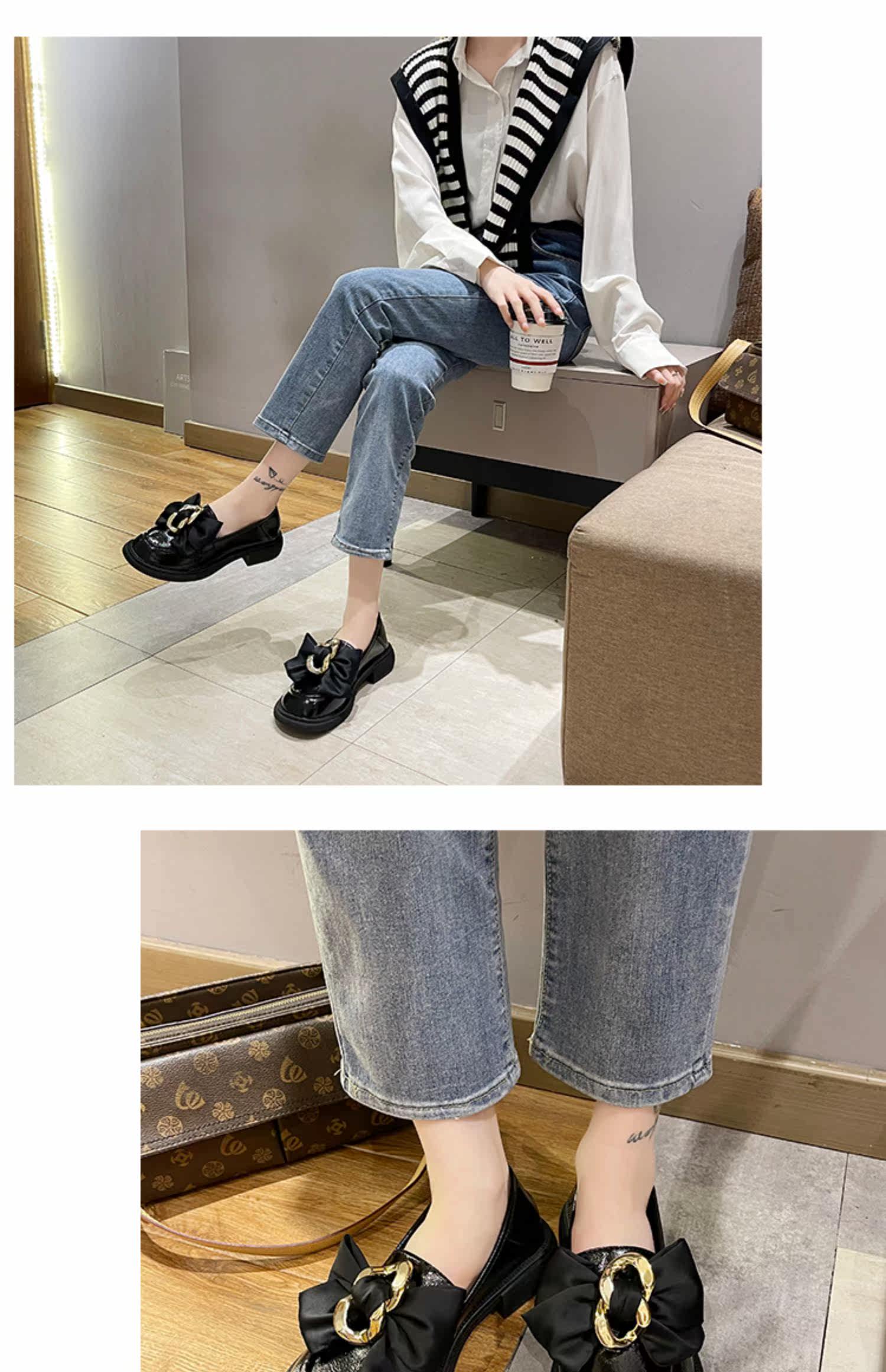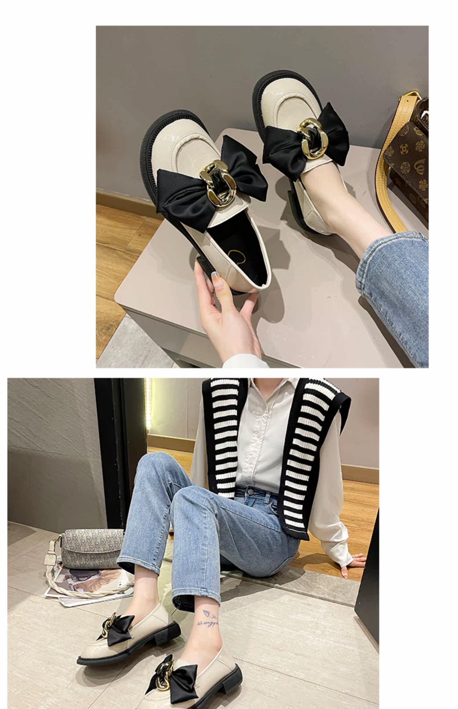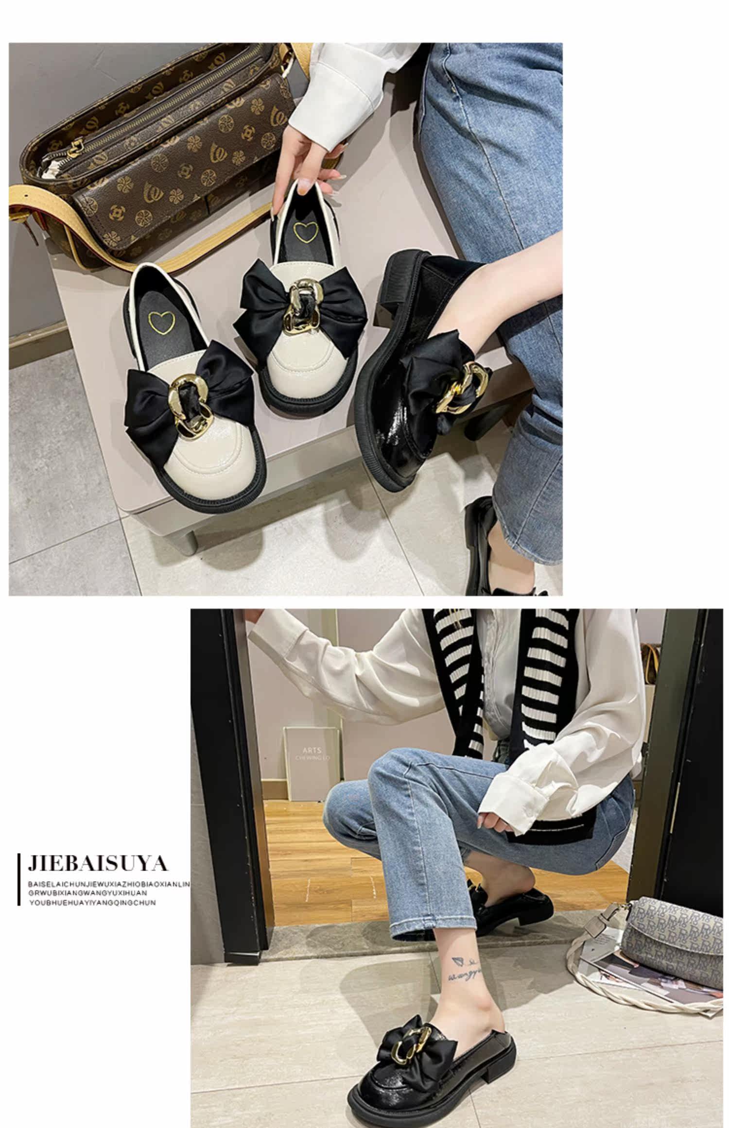 Металлические нескользящие лоферы с бантиком для кожаной обуви, обувь, коллекция 2021, осенние, тренд сезона, французский стиль