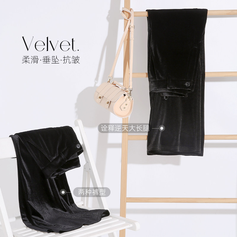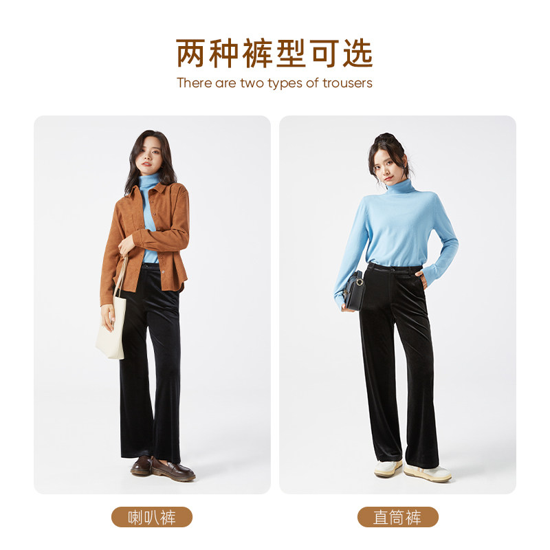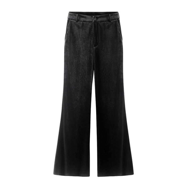 Бархатные демисезонные штаны-клёш, леггинсы, черные штаны для отдыха, высокая талия, свободный прямой крой, оверсайз