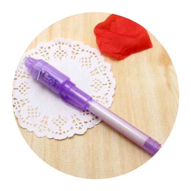 Вечером, щетка UV -невидимая флуоресцентная ручка светится в чернила