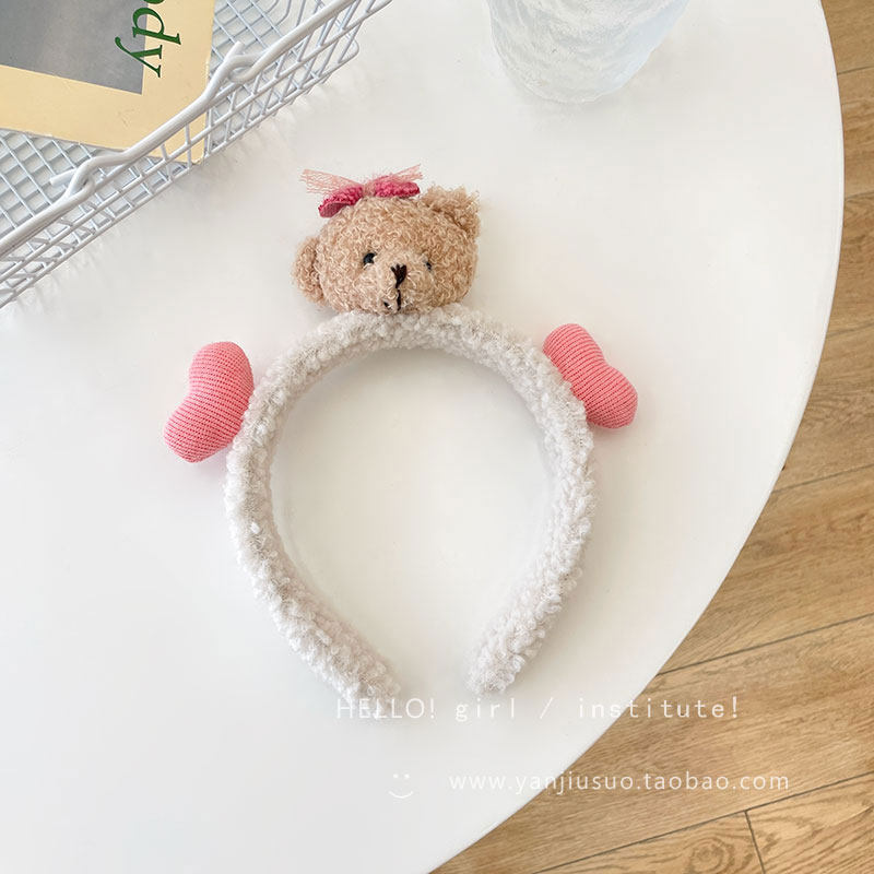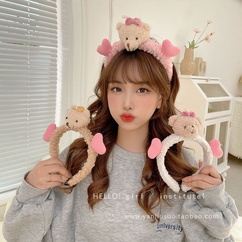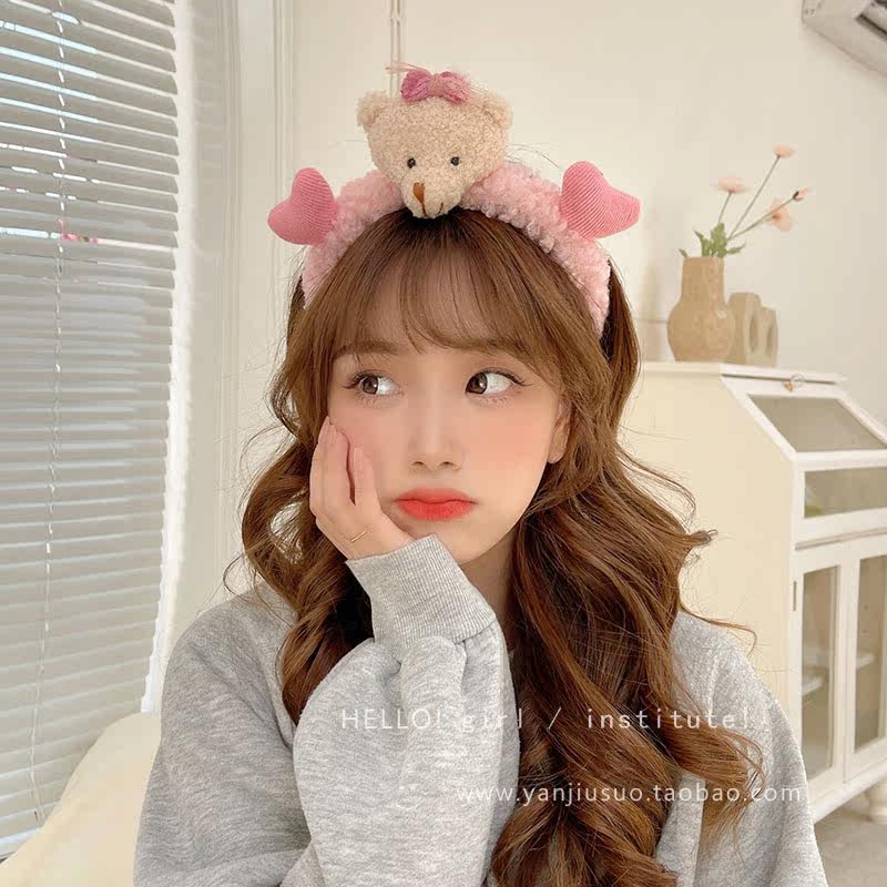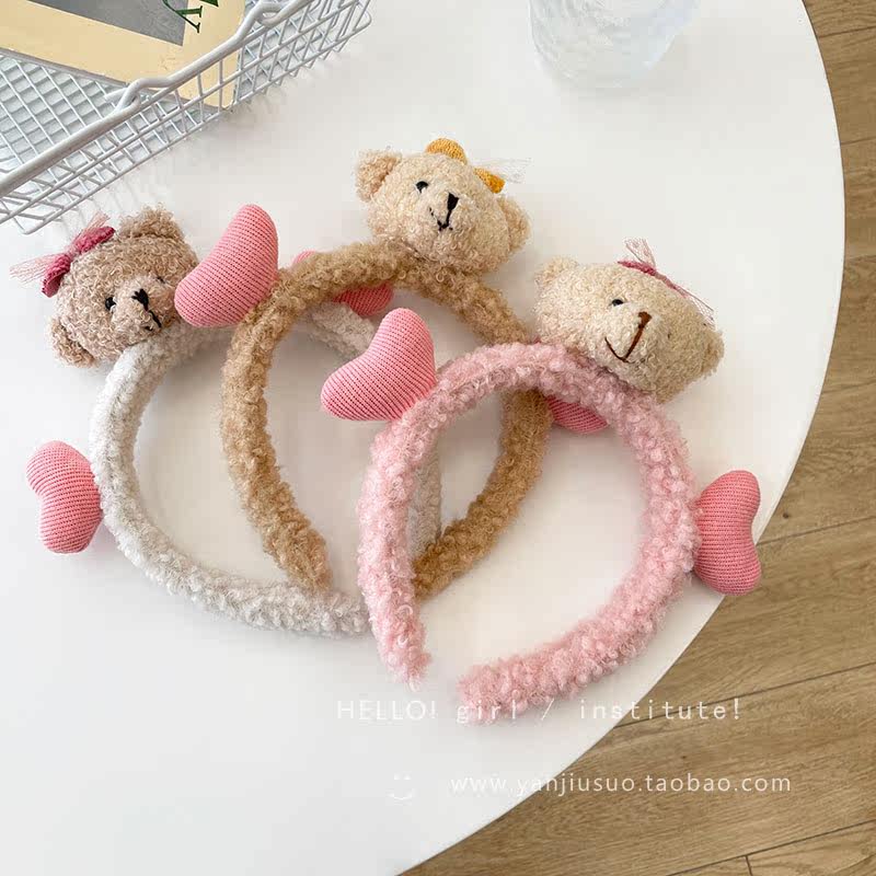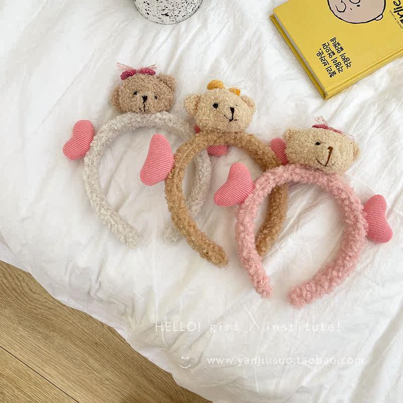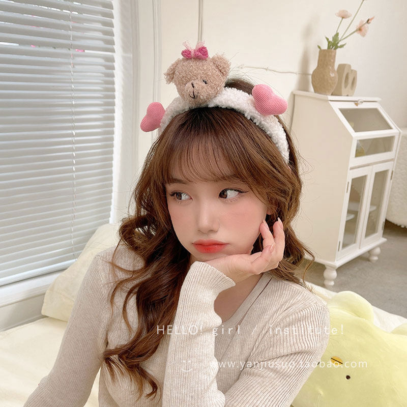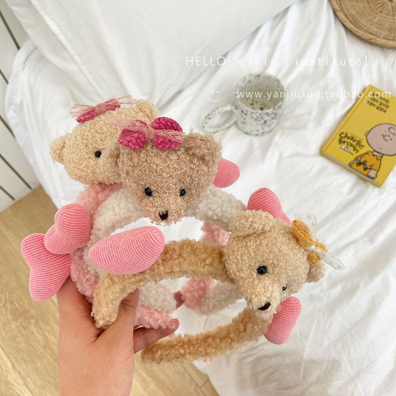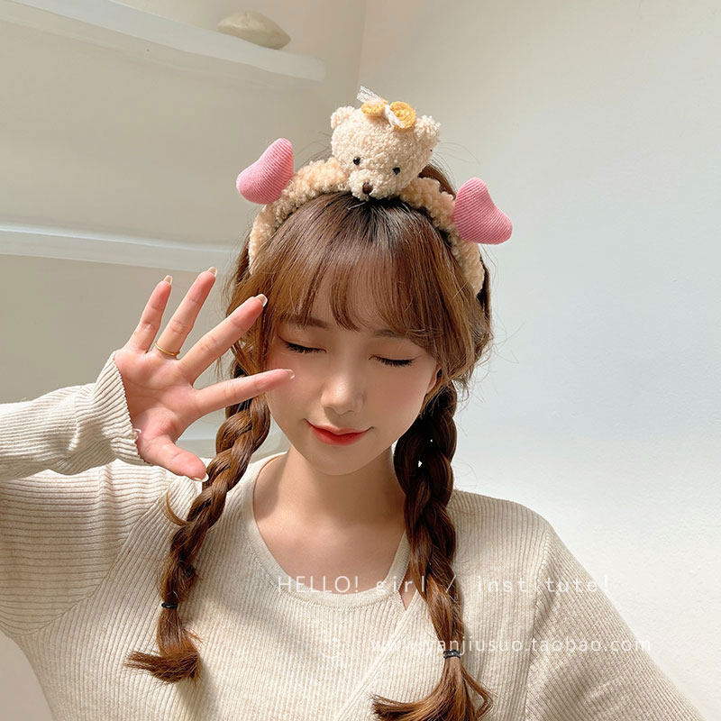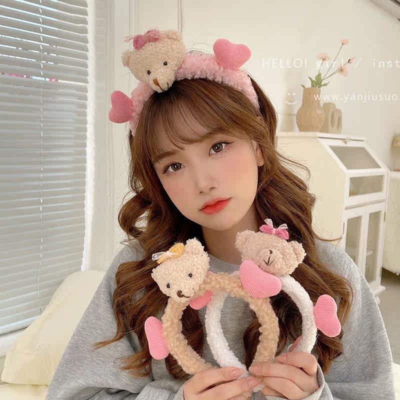 Милый трехмерный мультяшный плюшевый ободок, шпильки для волос, летний аксессуар для волос для умывания, с медвежатами, популярно в интернете