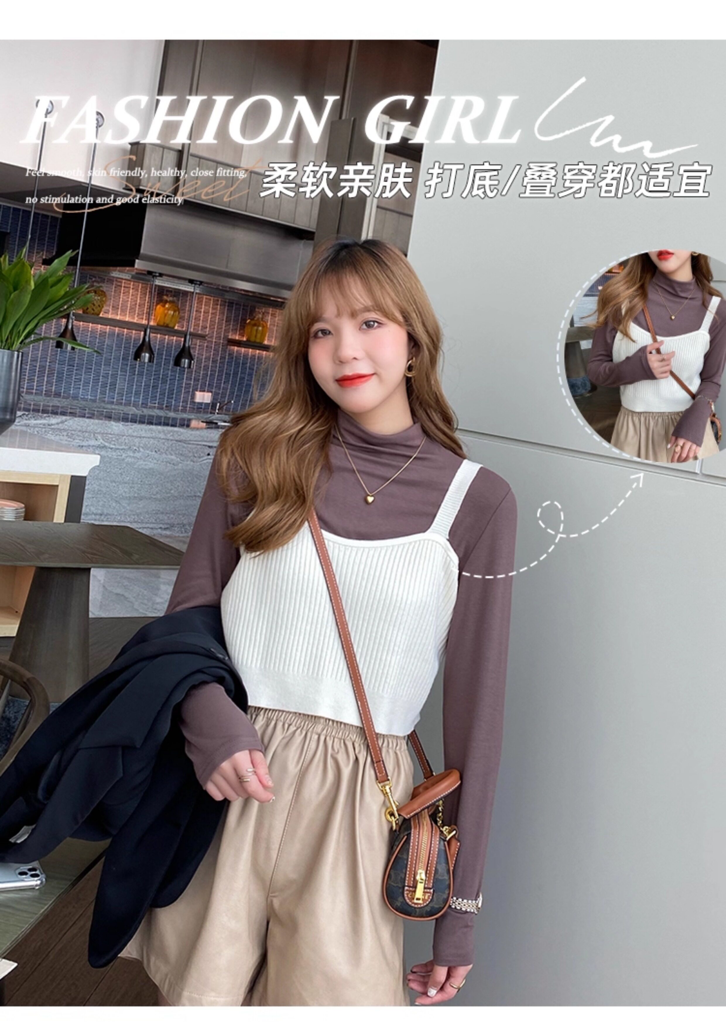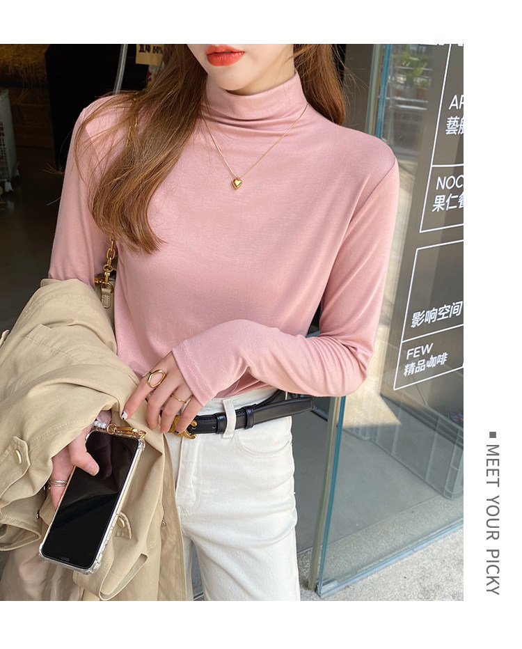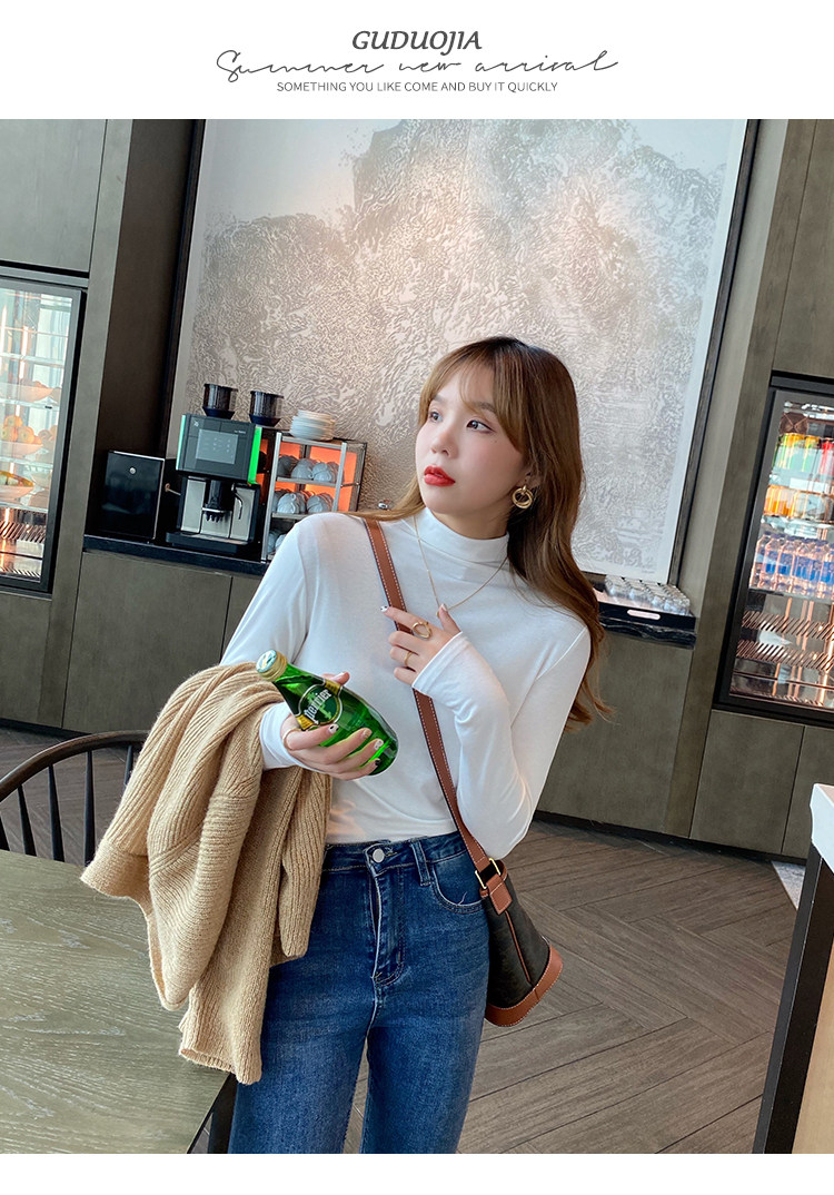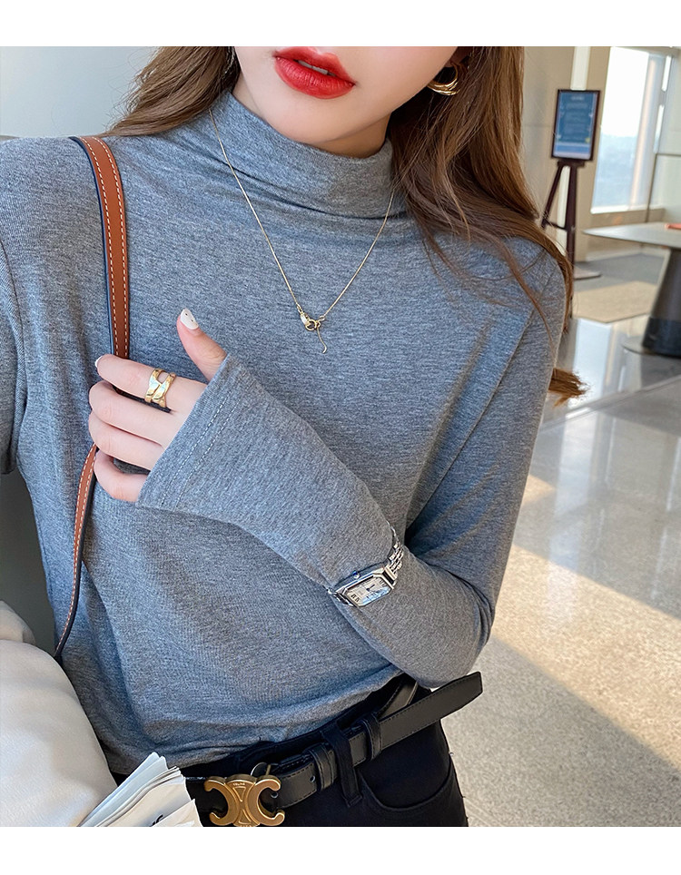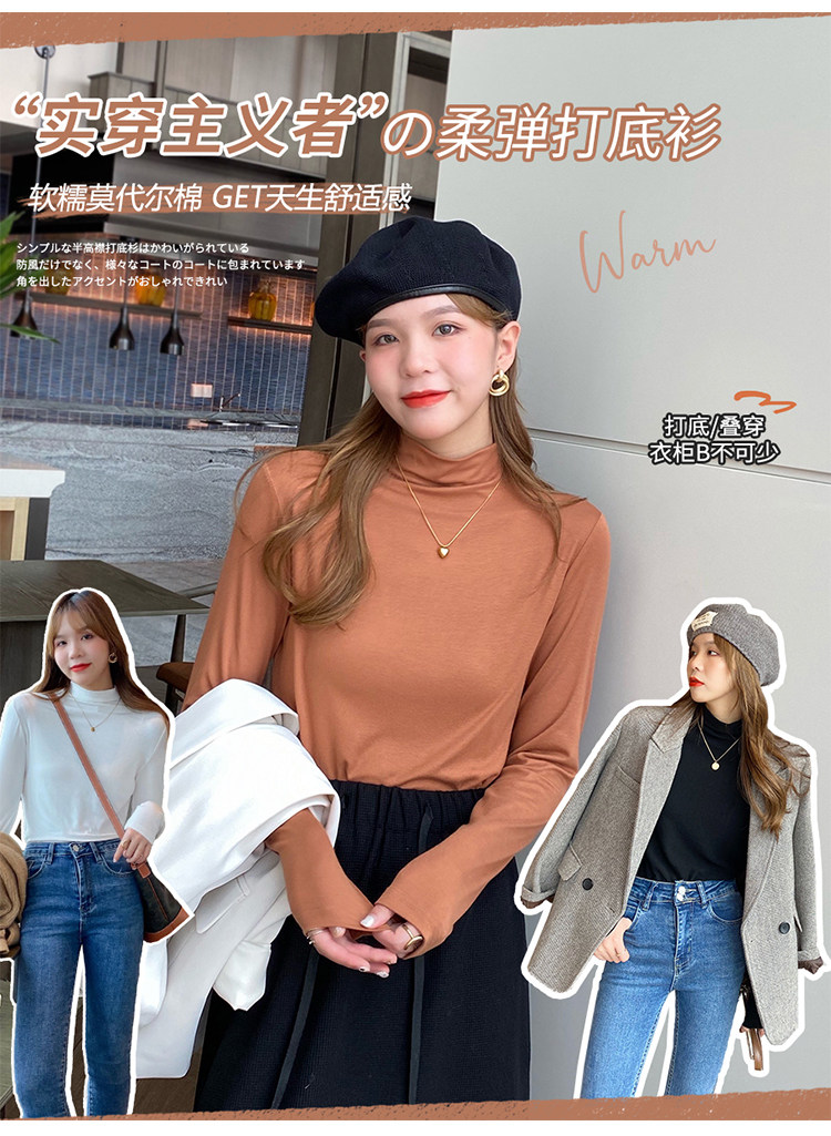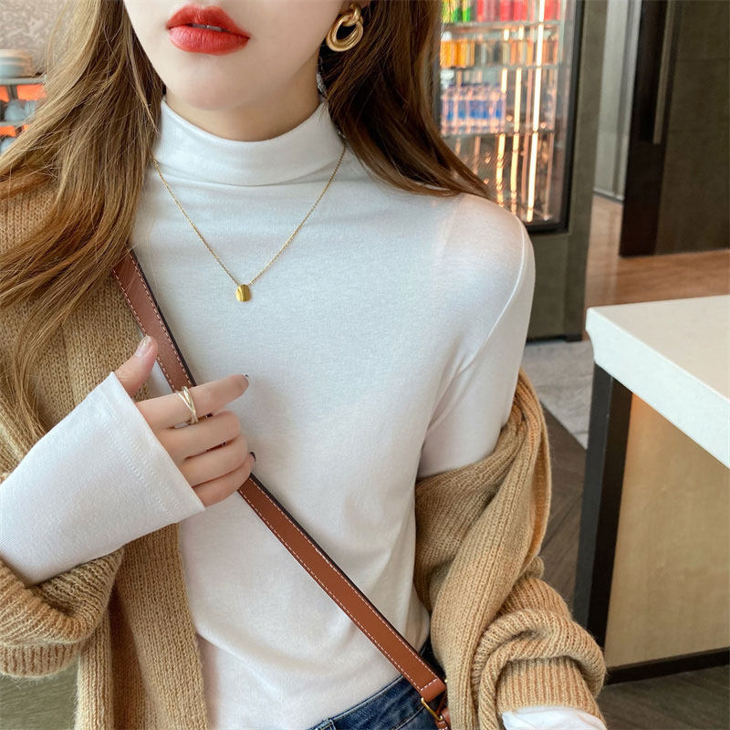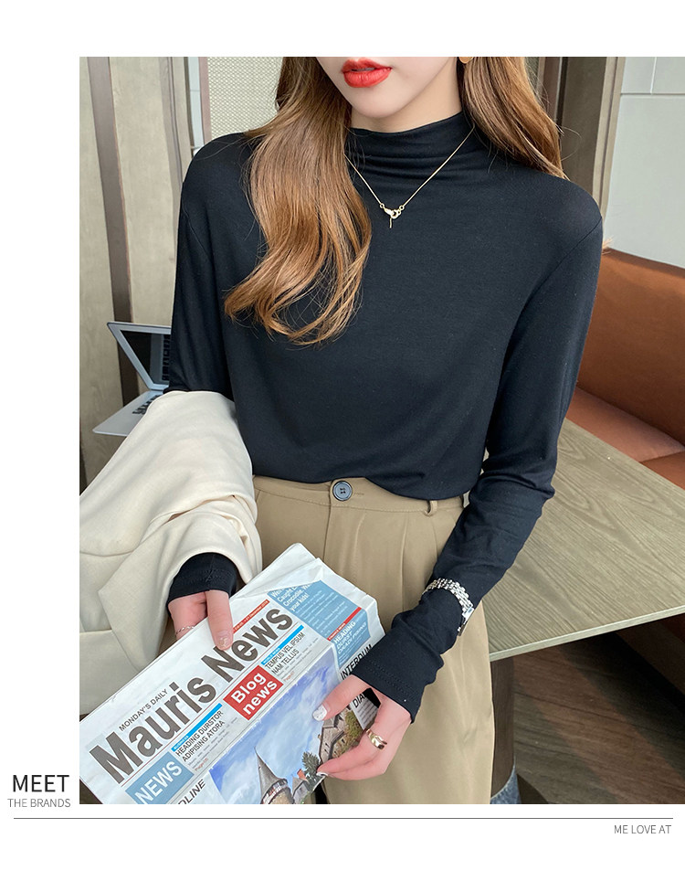 Рубашка снизу из модала для женщин, новинка 2025 года, осенне-зимняя модная и модная внутренняя полуводолазка, черный топ со средним воротником