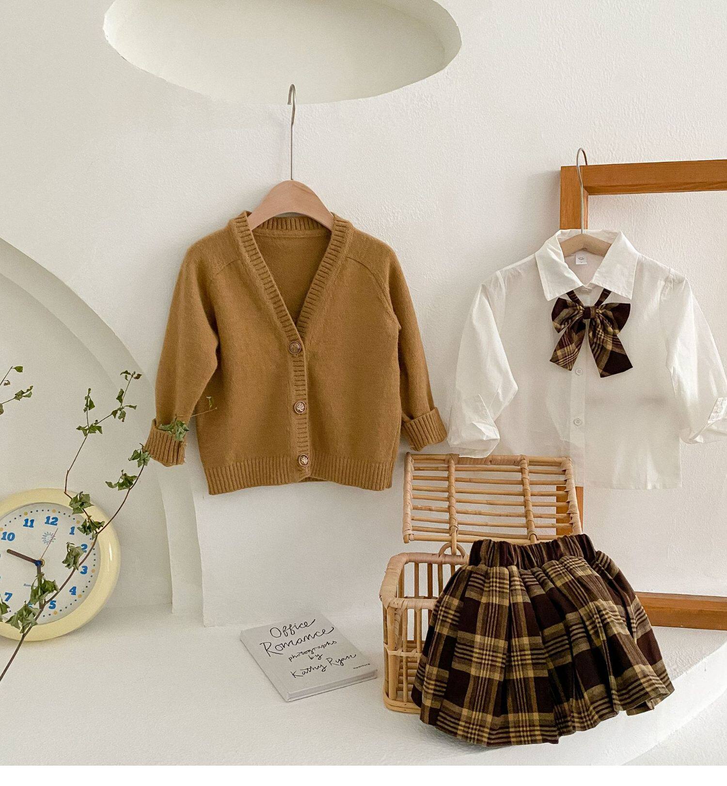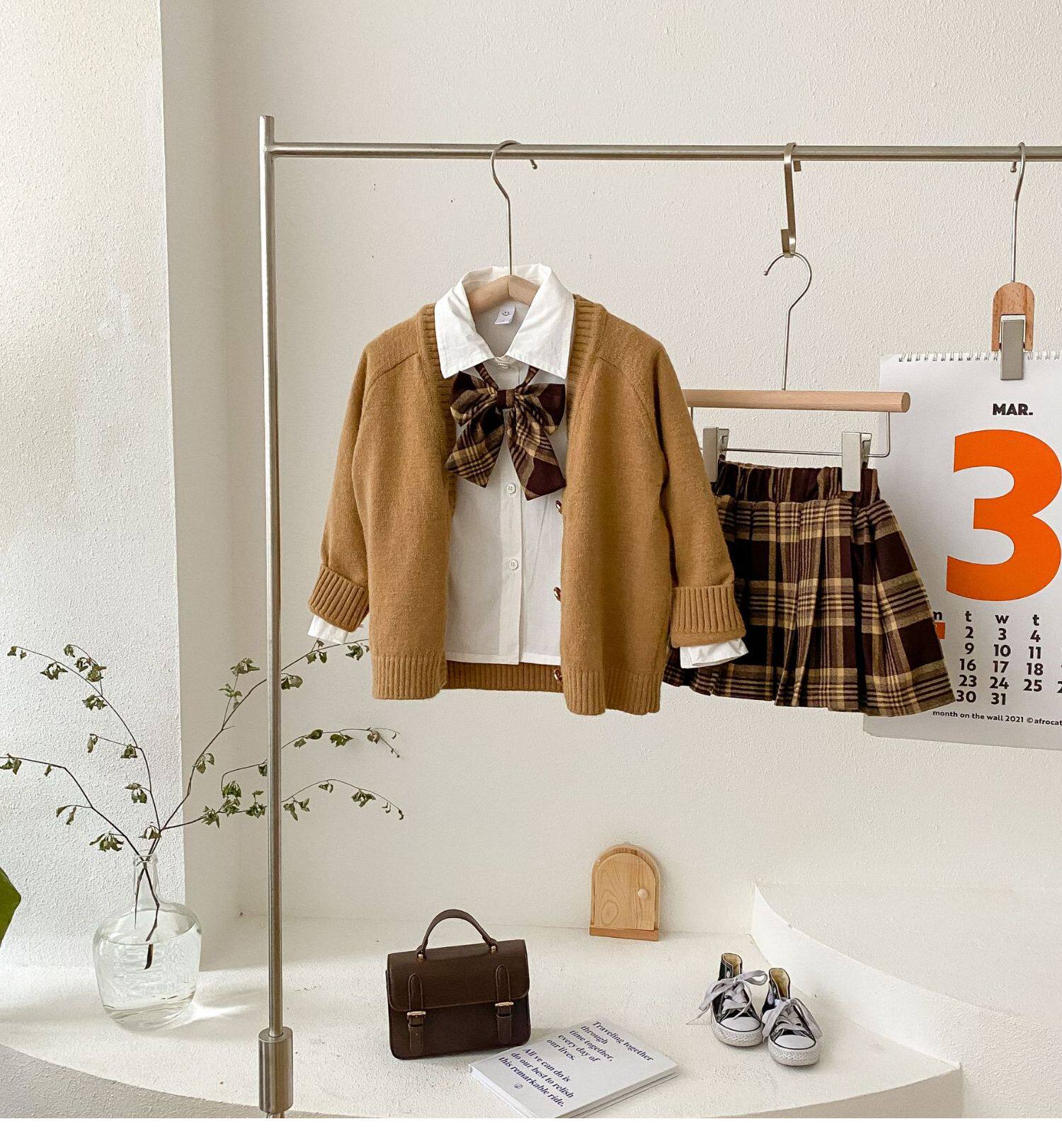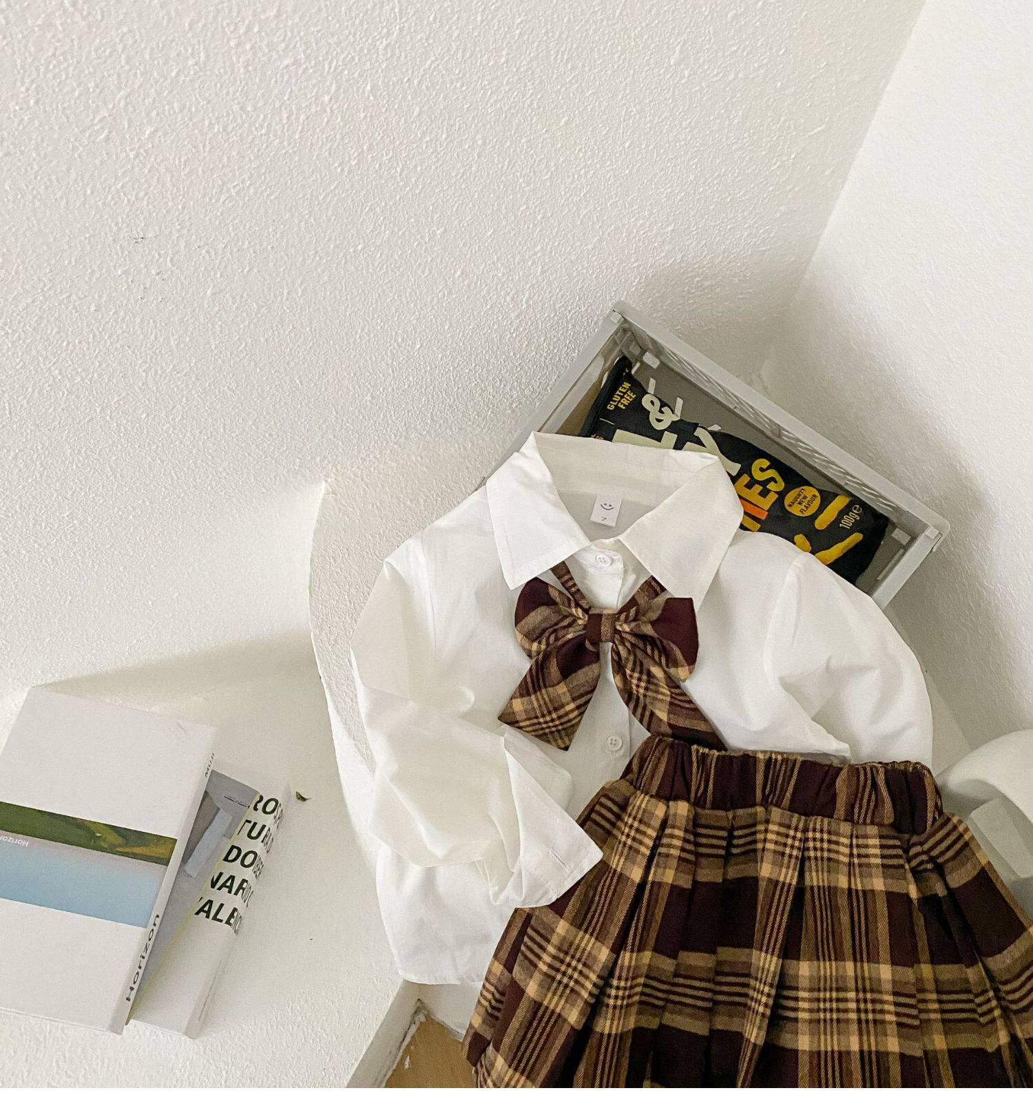 Весенний комплект, детская рубашка, студенческая юбка в складку, 2023, тренд сезона, детская одежда, 3 предмета