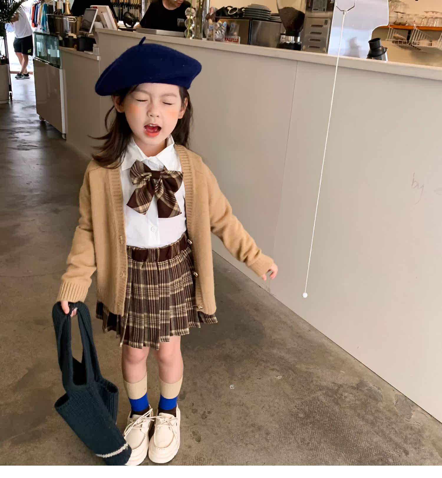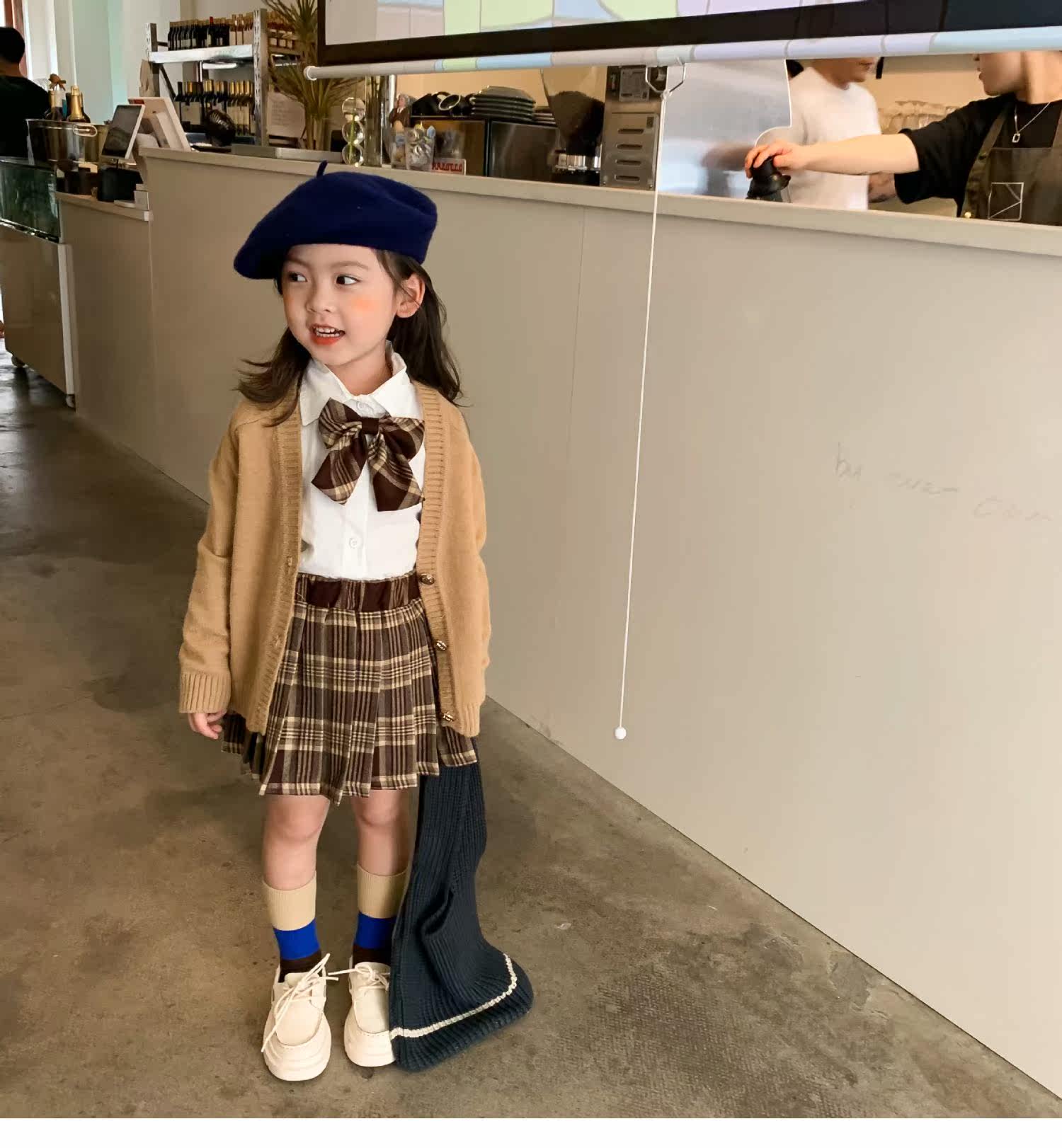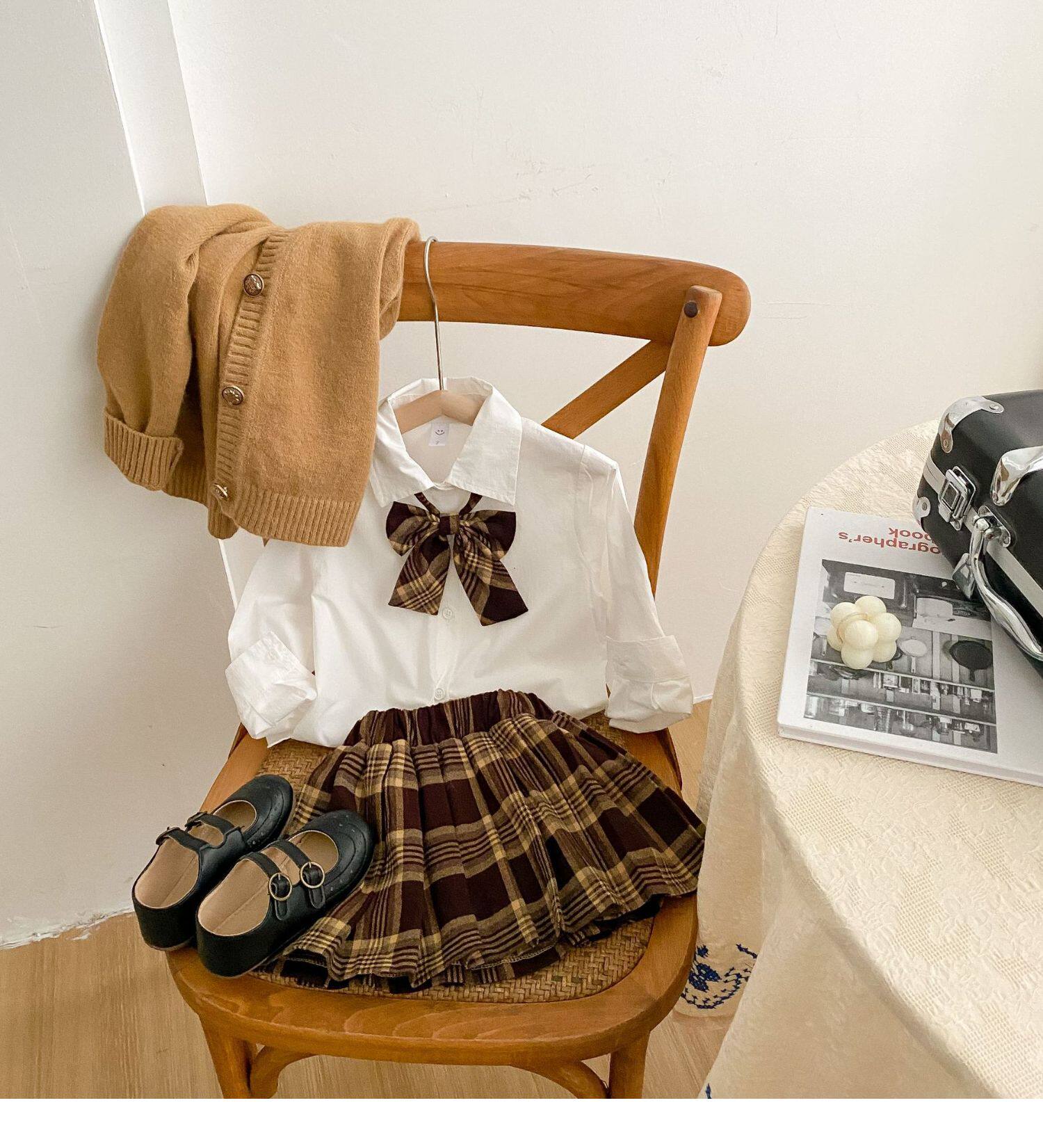 Весенний комплект, детская рубашка, студенческая юбка в складку, 2023, тренд сезона, детская одежда, 3 предмета