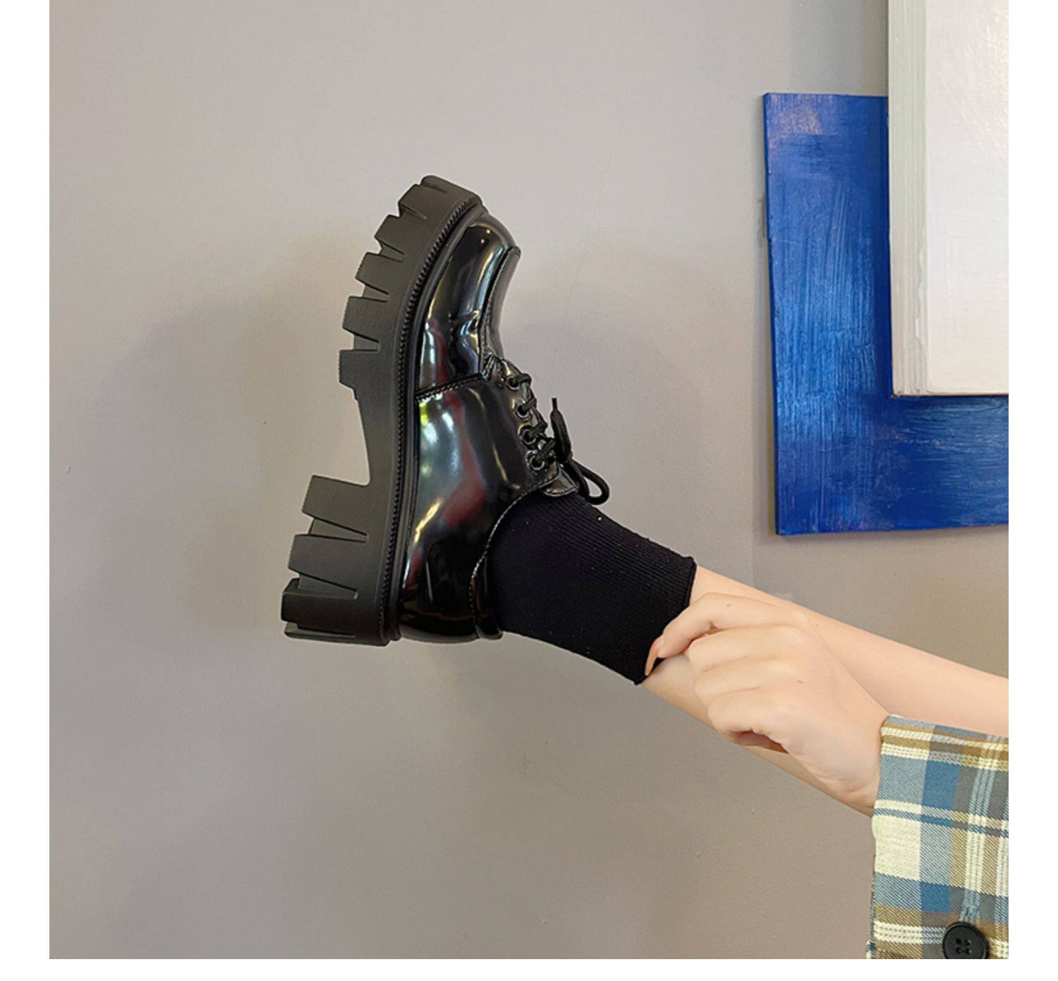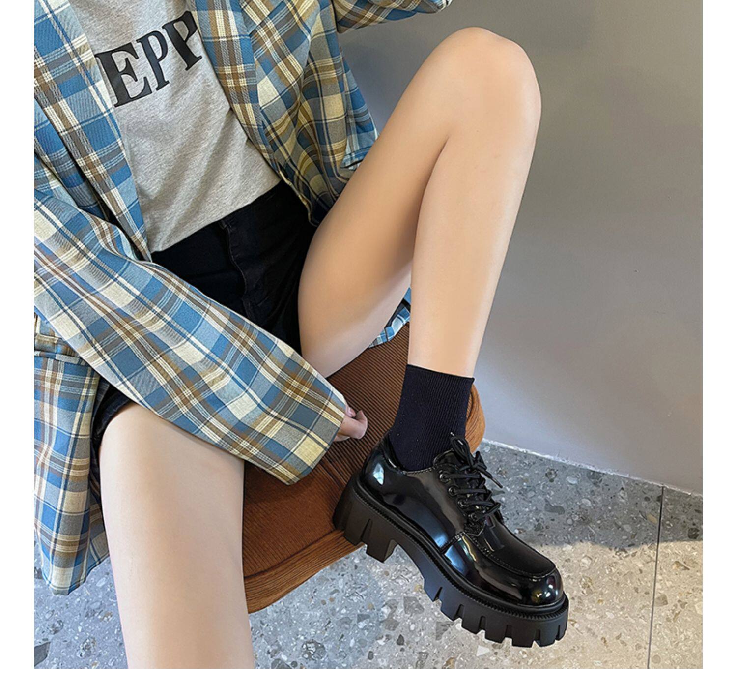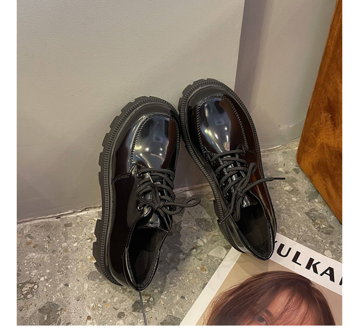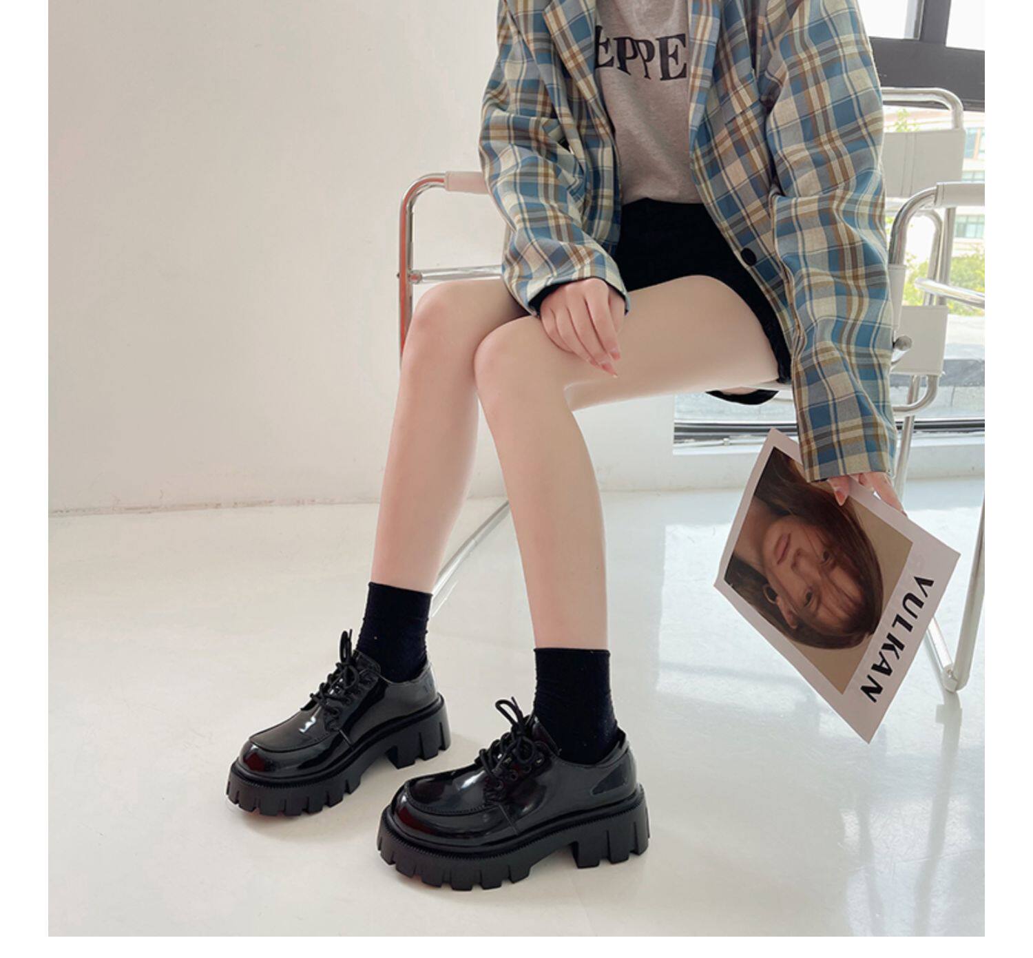 南在南方 Обувь в английском стиле для кожаной обуви, черные высокие лоферы на платформе, в британском стиле