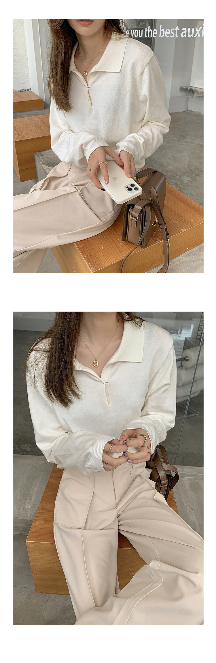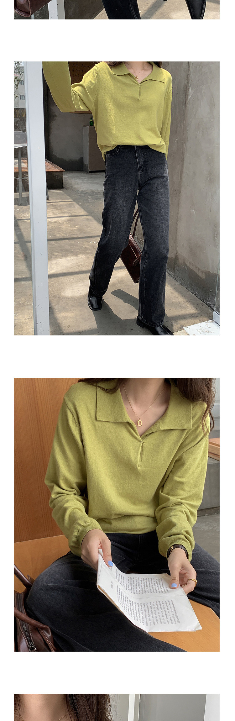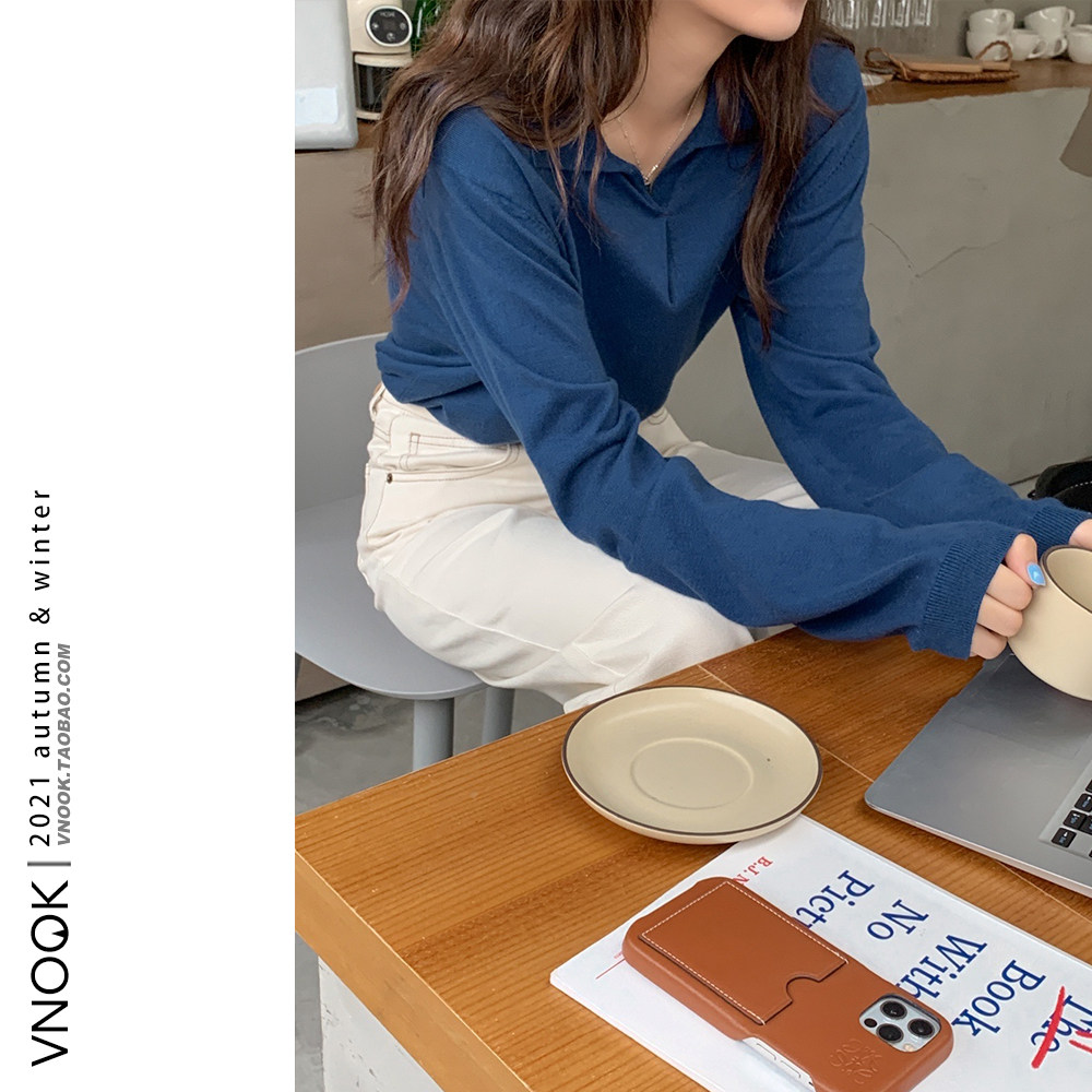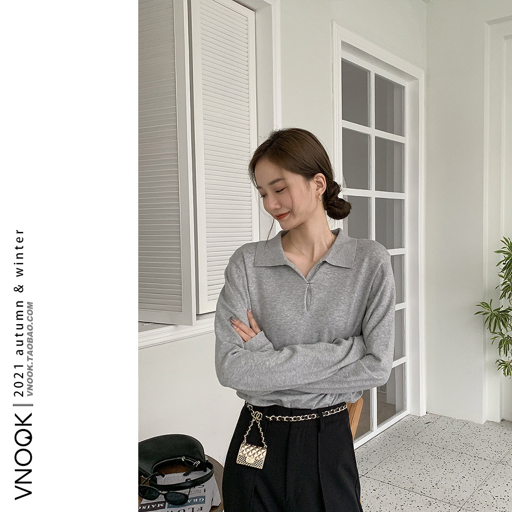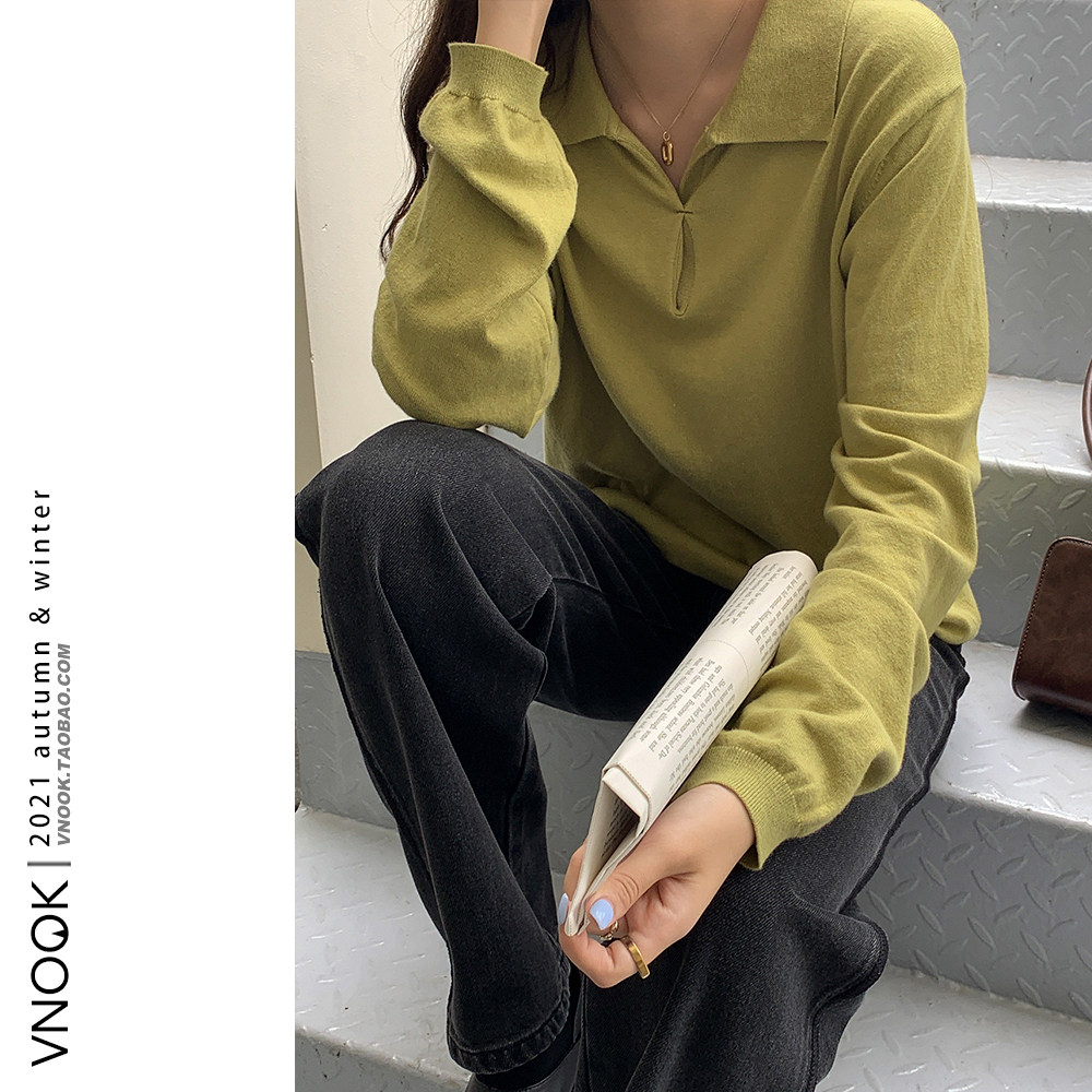 Осенний ретро трикотажный свитер, воротник поло, свободный крой