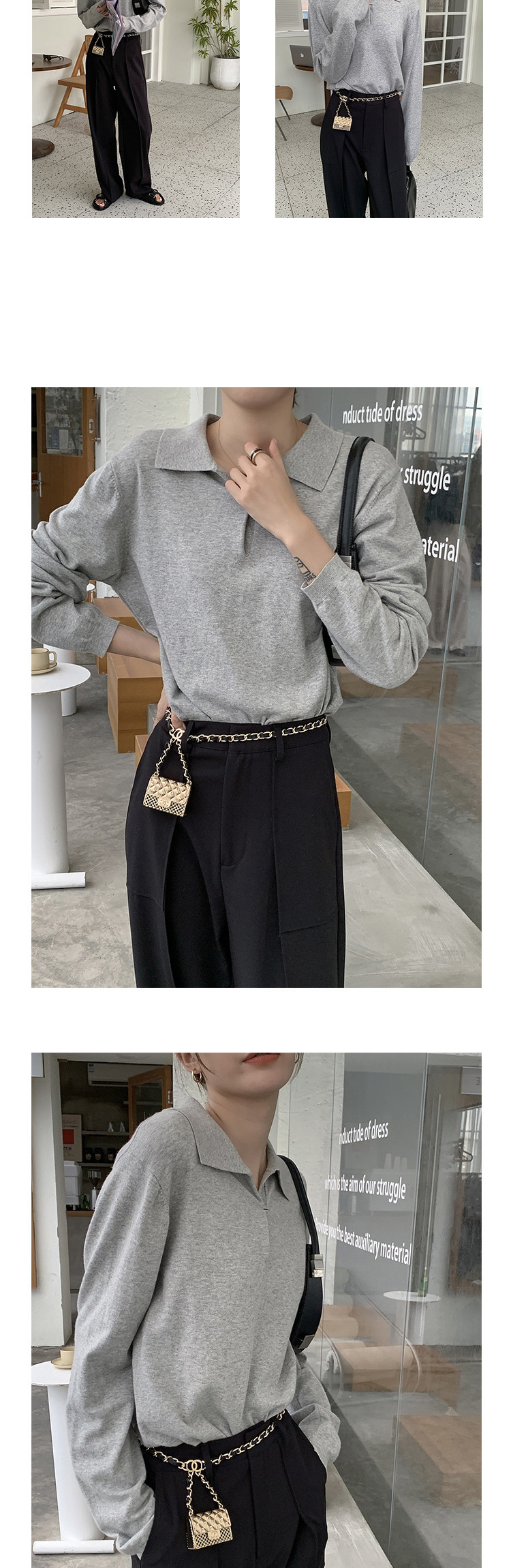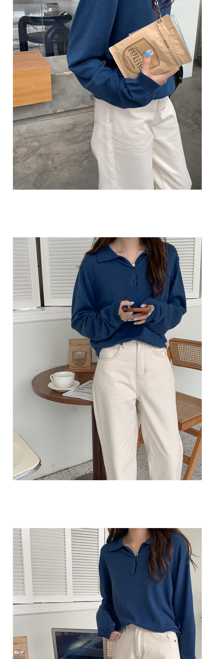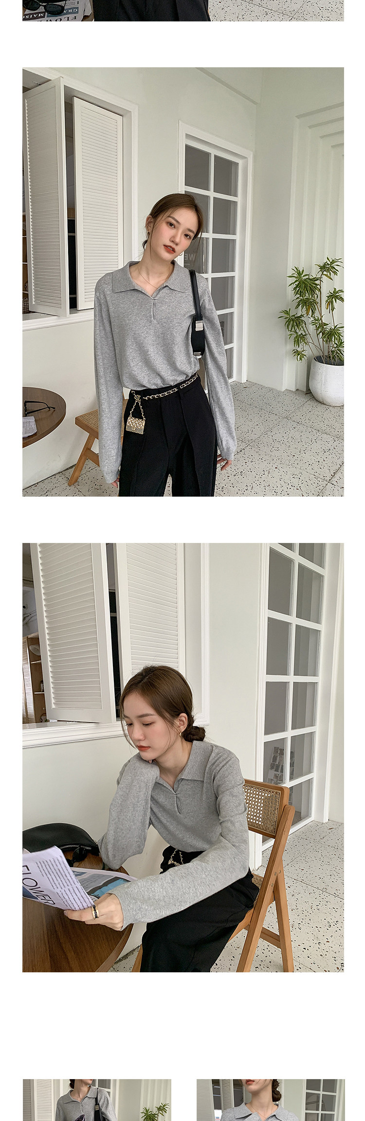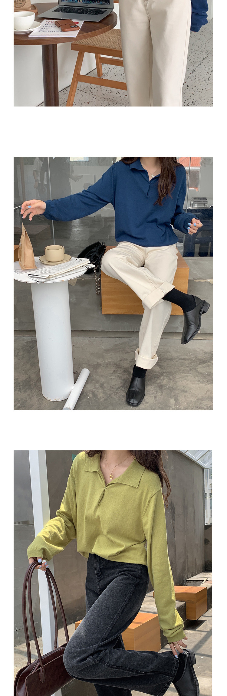 Осенний ретро трикотажный свитер, воротник поло, свободный крой