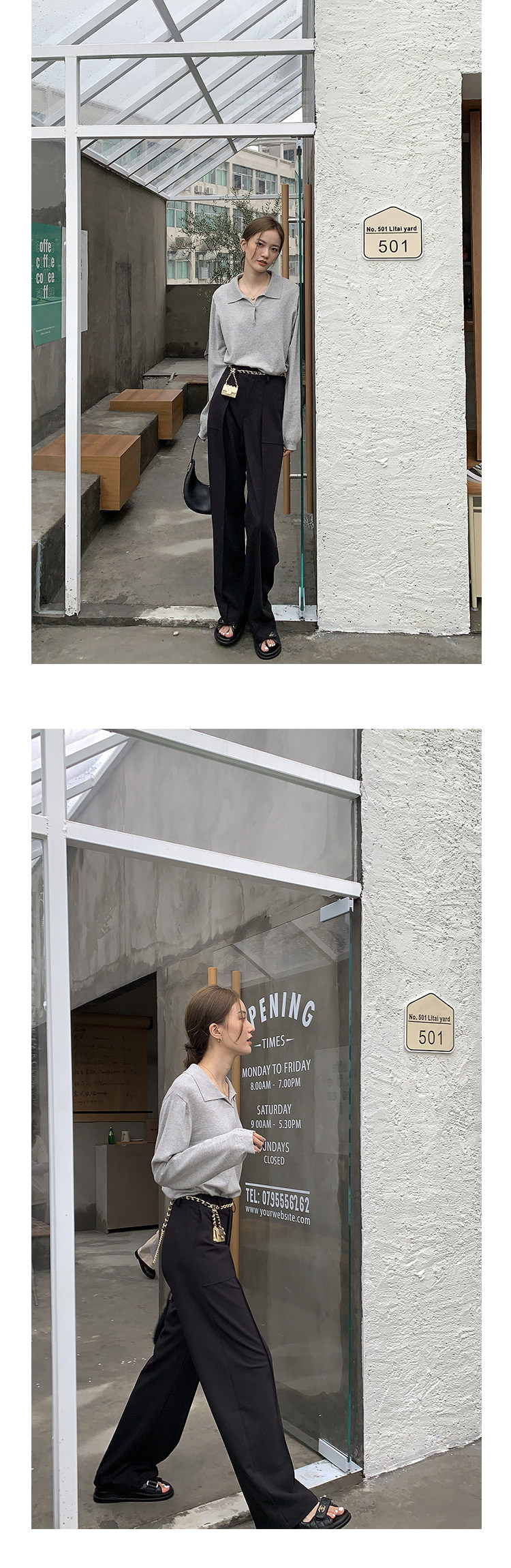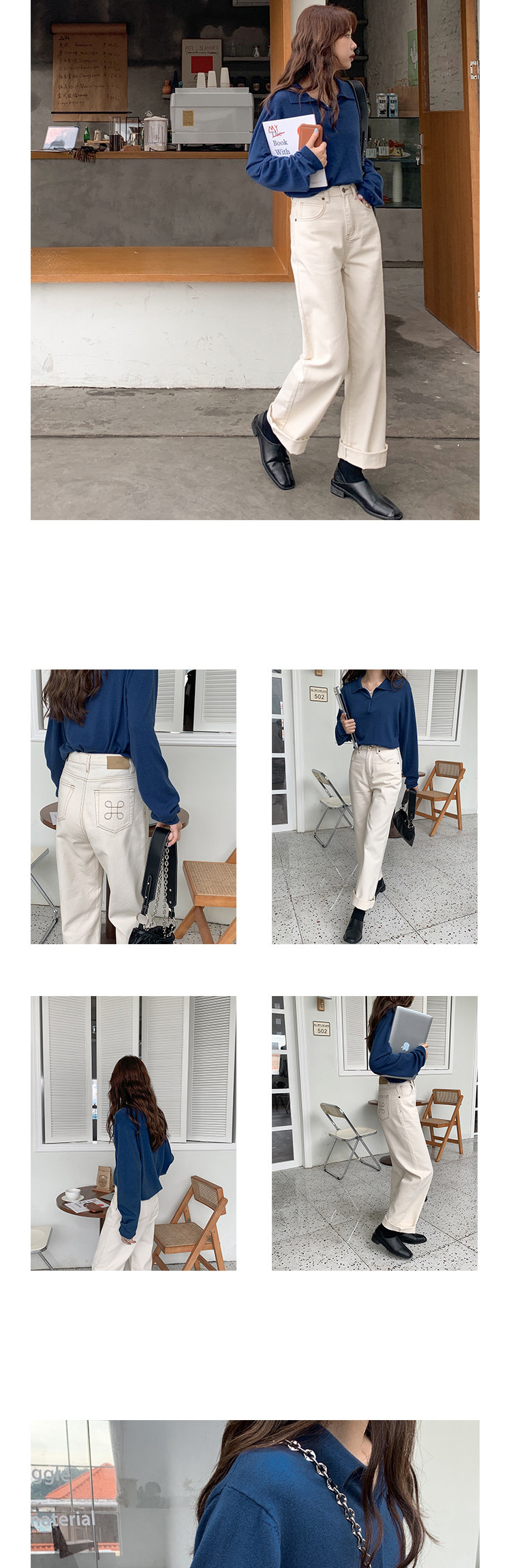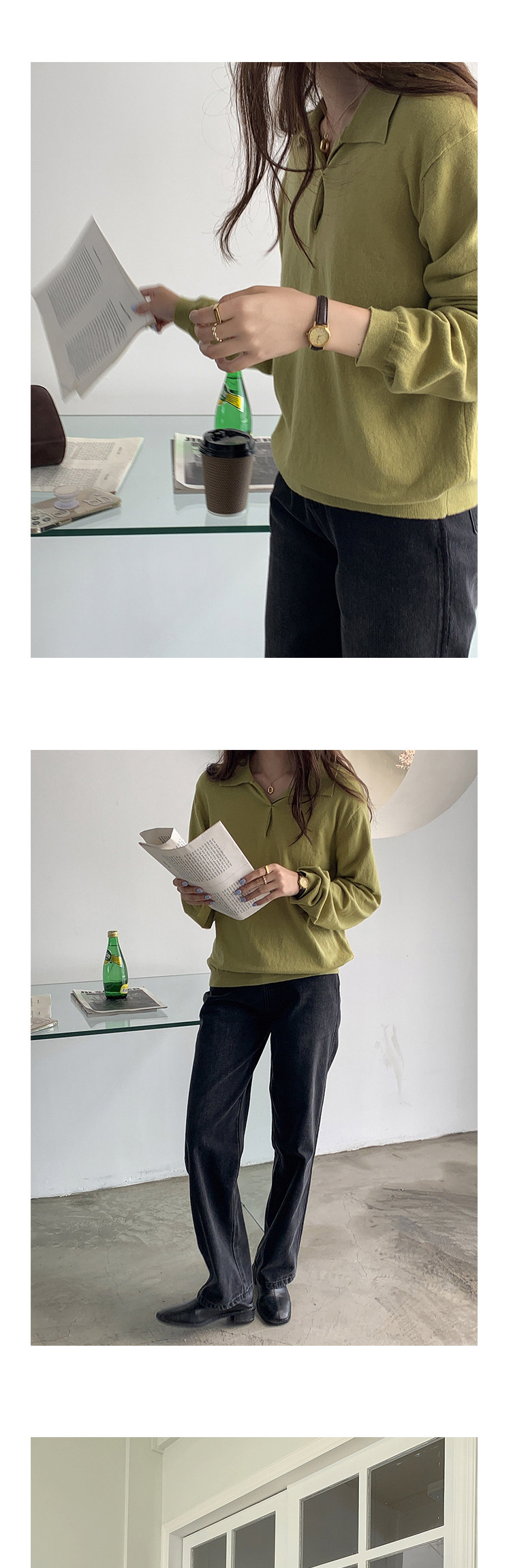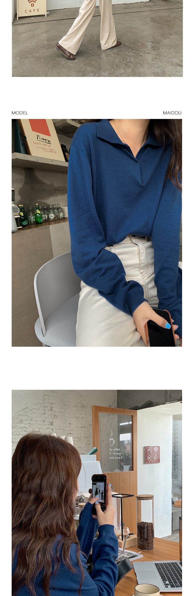 Осенний ретро трикотажный свитер, воротник поло, свободный крой