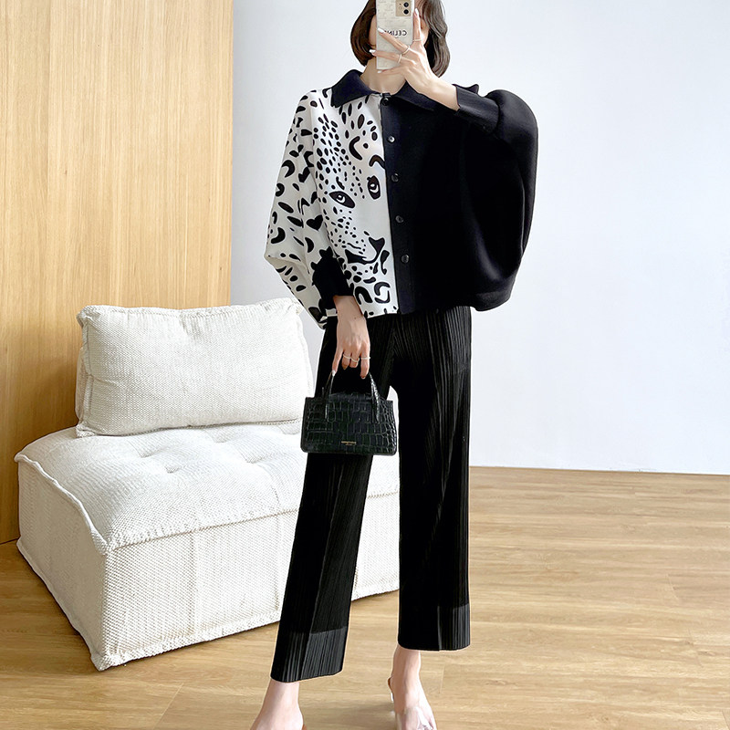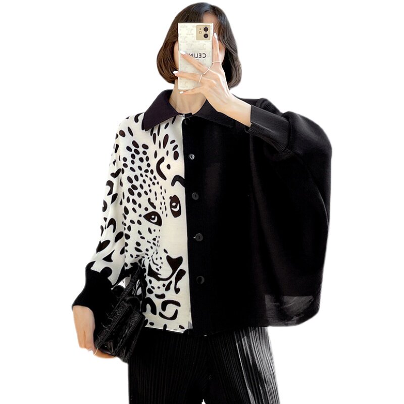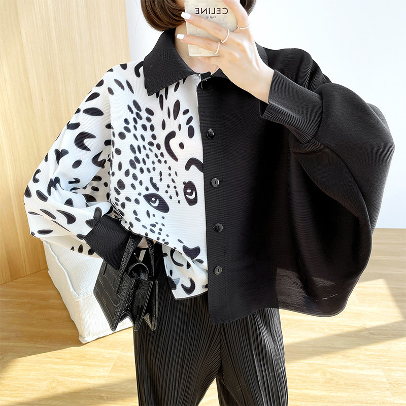 Clearance Miyake женское плиссированное пальто с рукавами «летучая мышь» черно-белого цвета с леопардовым принтом, свободный облегающий весенне-осенний короткий топ